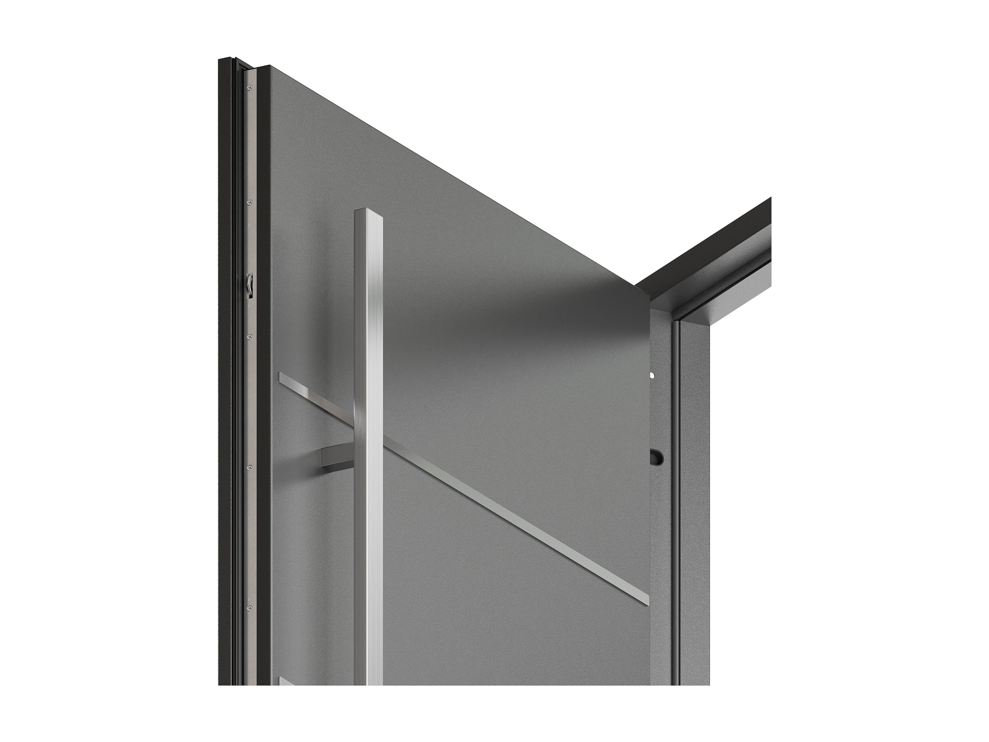 Porte d'entrée en acier pleine et inox H207 x L100 cm anthracite - poussant droit - LUSADA