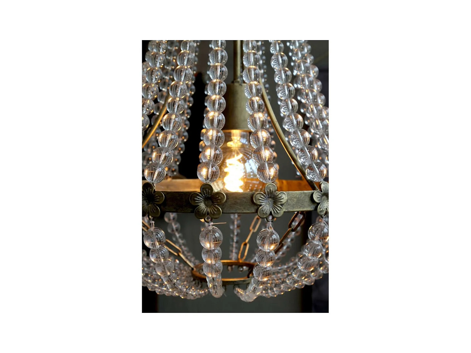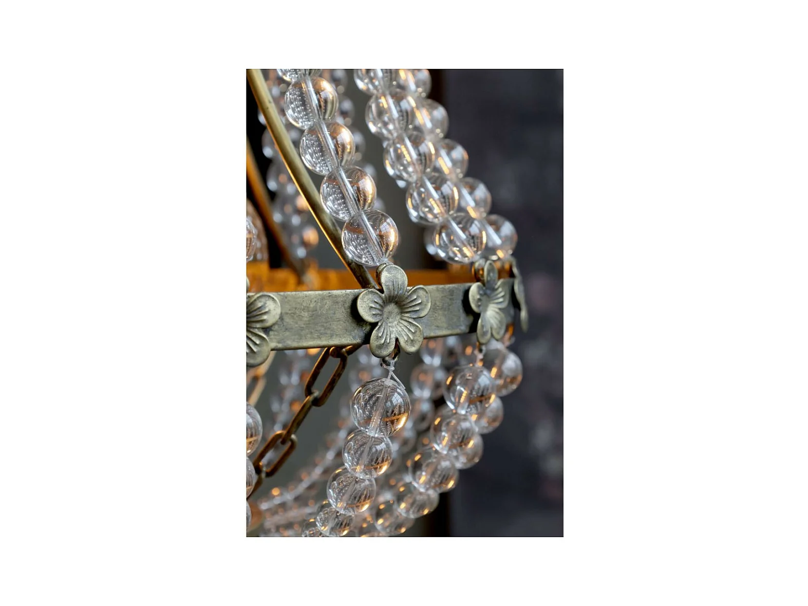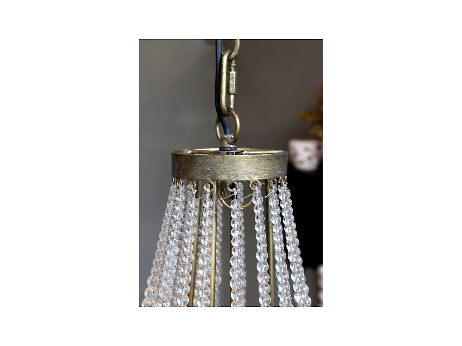 Lustre avec prisme en verre et fer laiton antique Ø.35.5 x Ht.60 cm