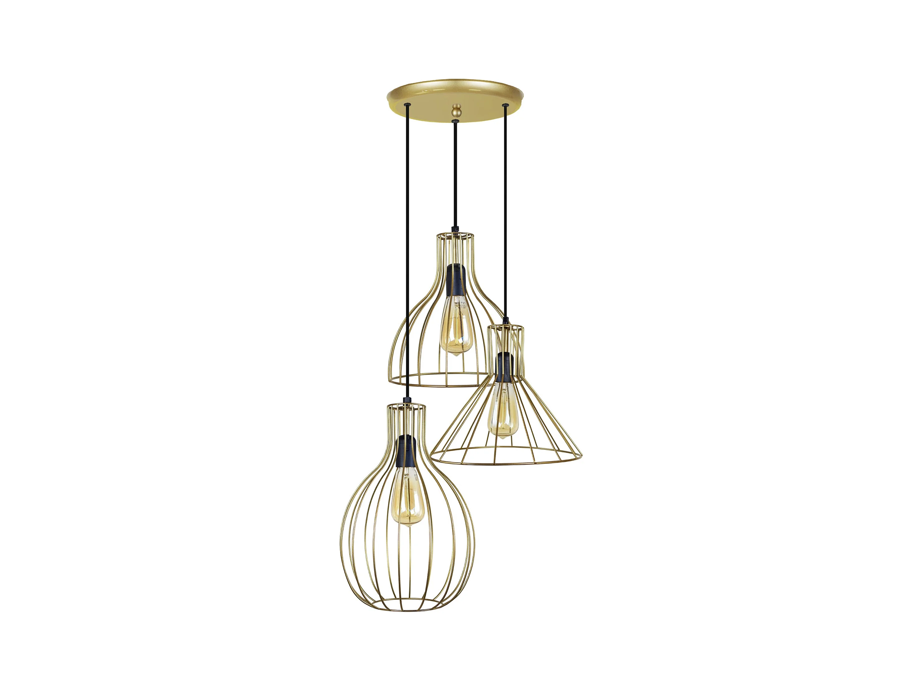 Lustre barre 3 pendels melon filaire doré 95 cm.