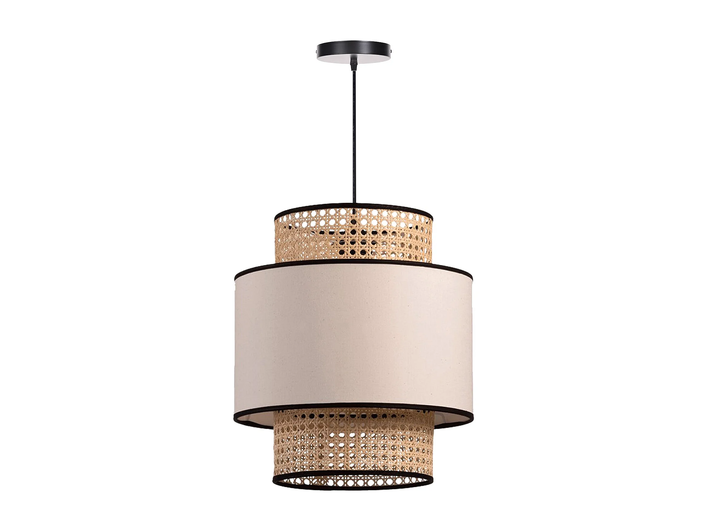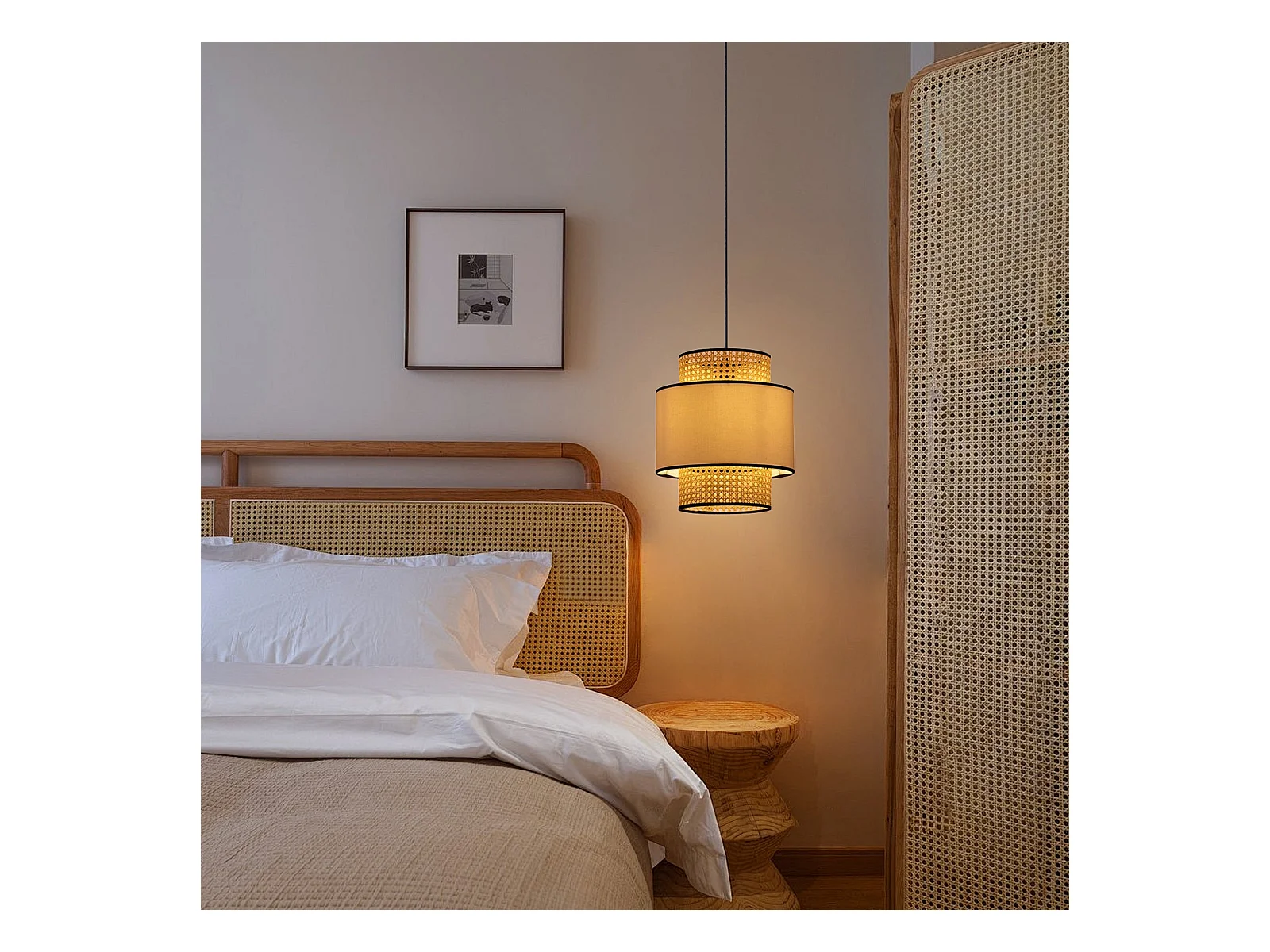 Lustre cylindrique en rotin et lin d30 cm x h40 cm