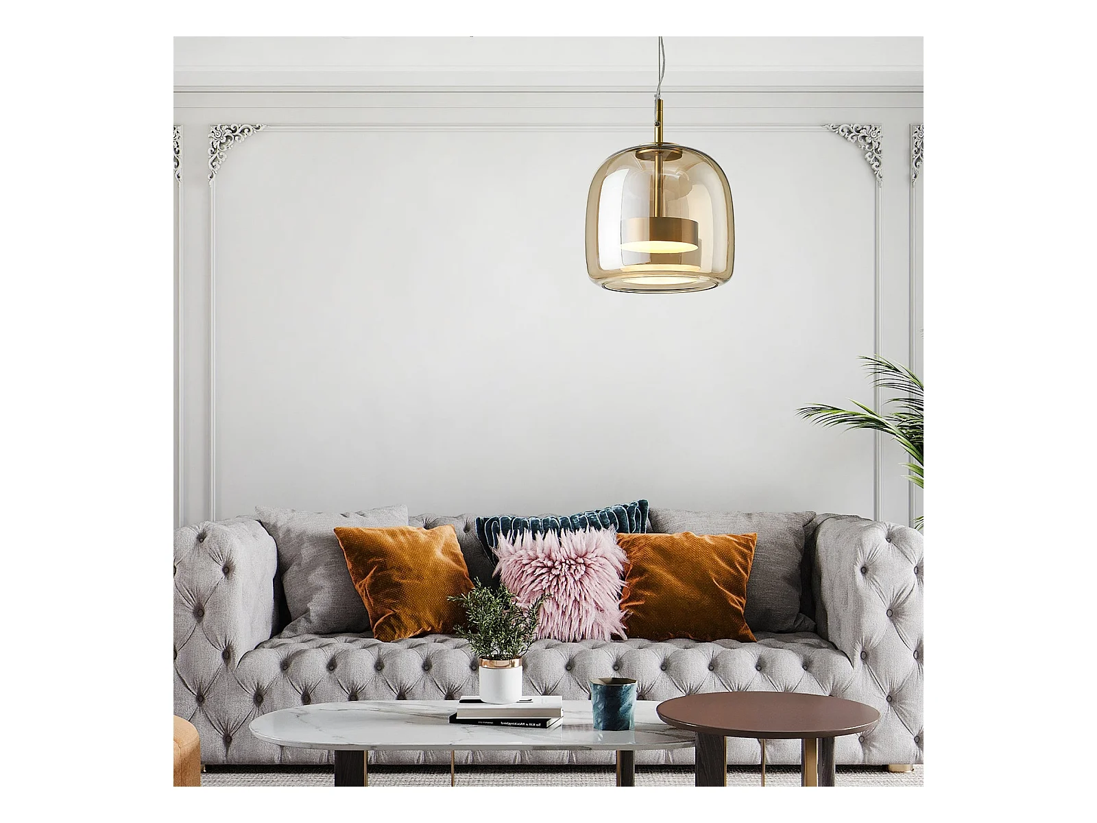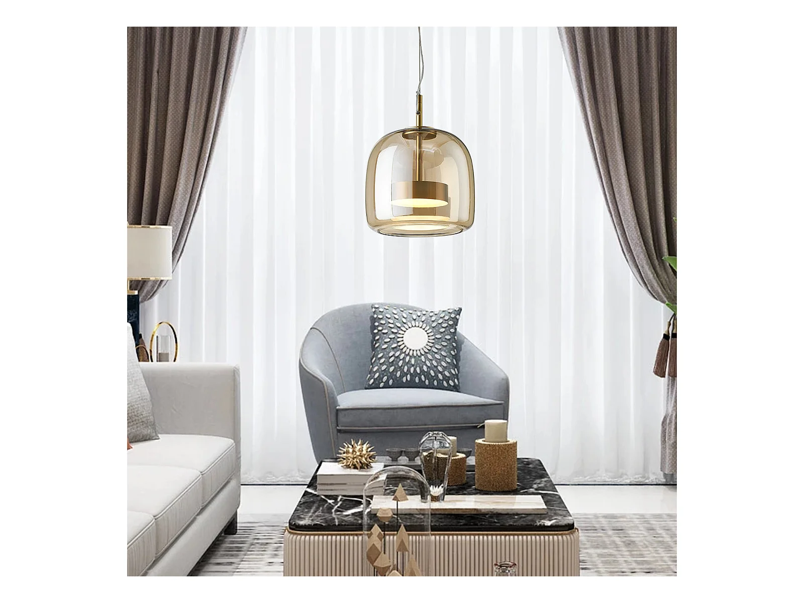 Lustre de plafond suspendu en verre, approprié pour le salon et la chambre à coucher, doré, d26cm x h23.5cm