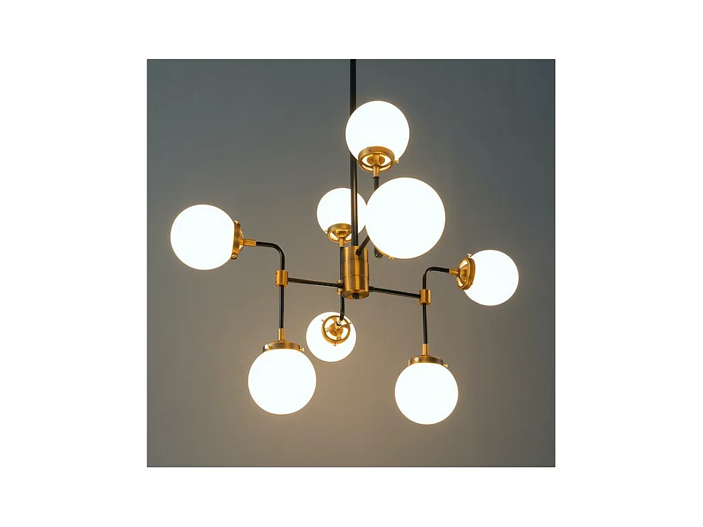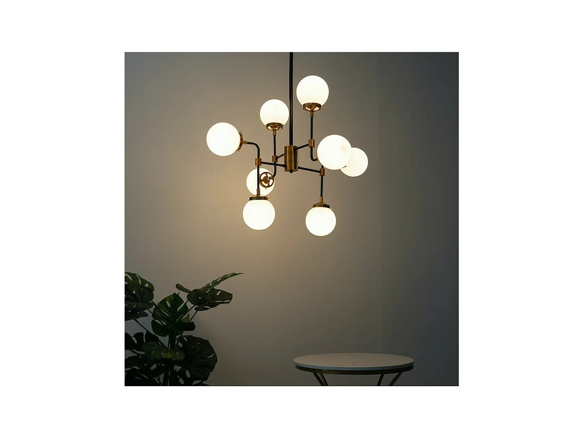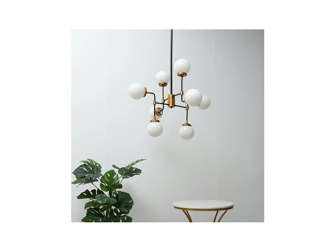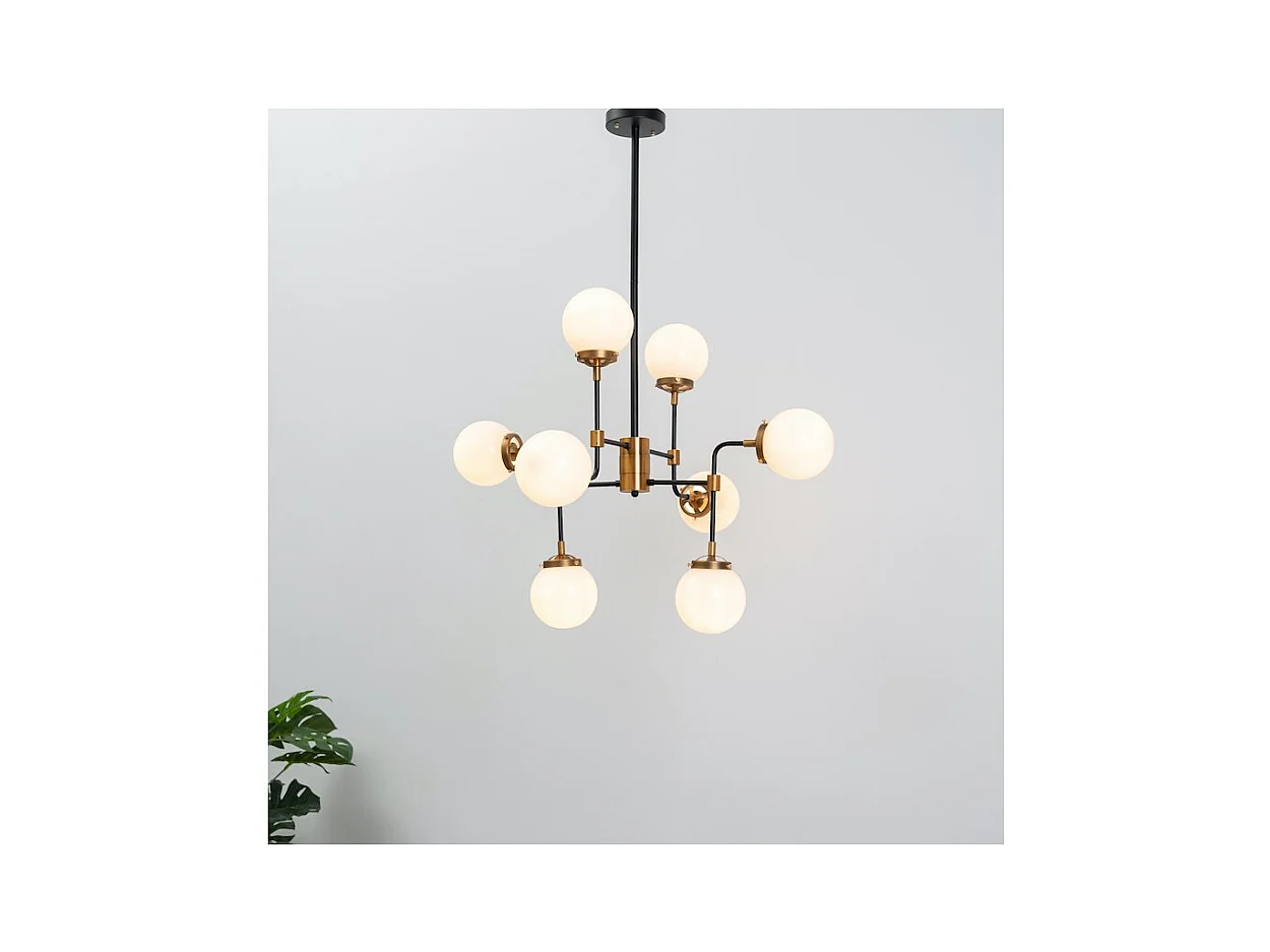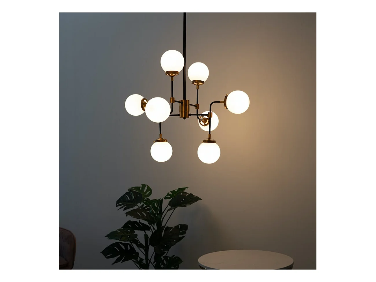 Lustre Industriel Doré à 8 Bras - Verre Blanc Laiteux Zenith