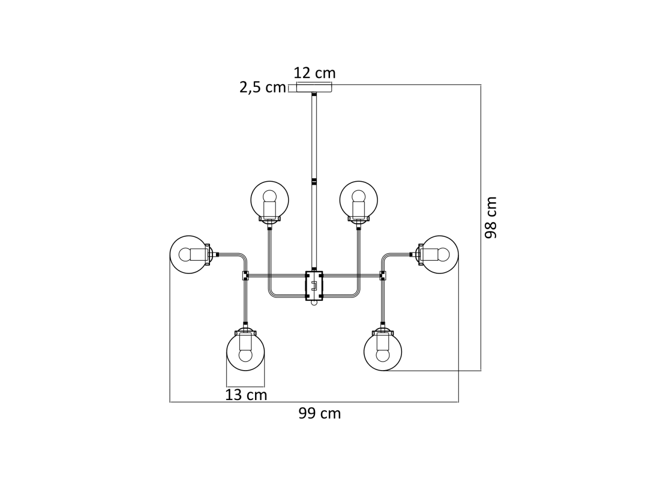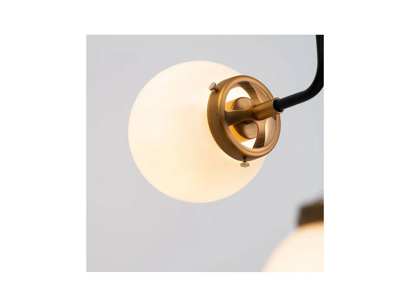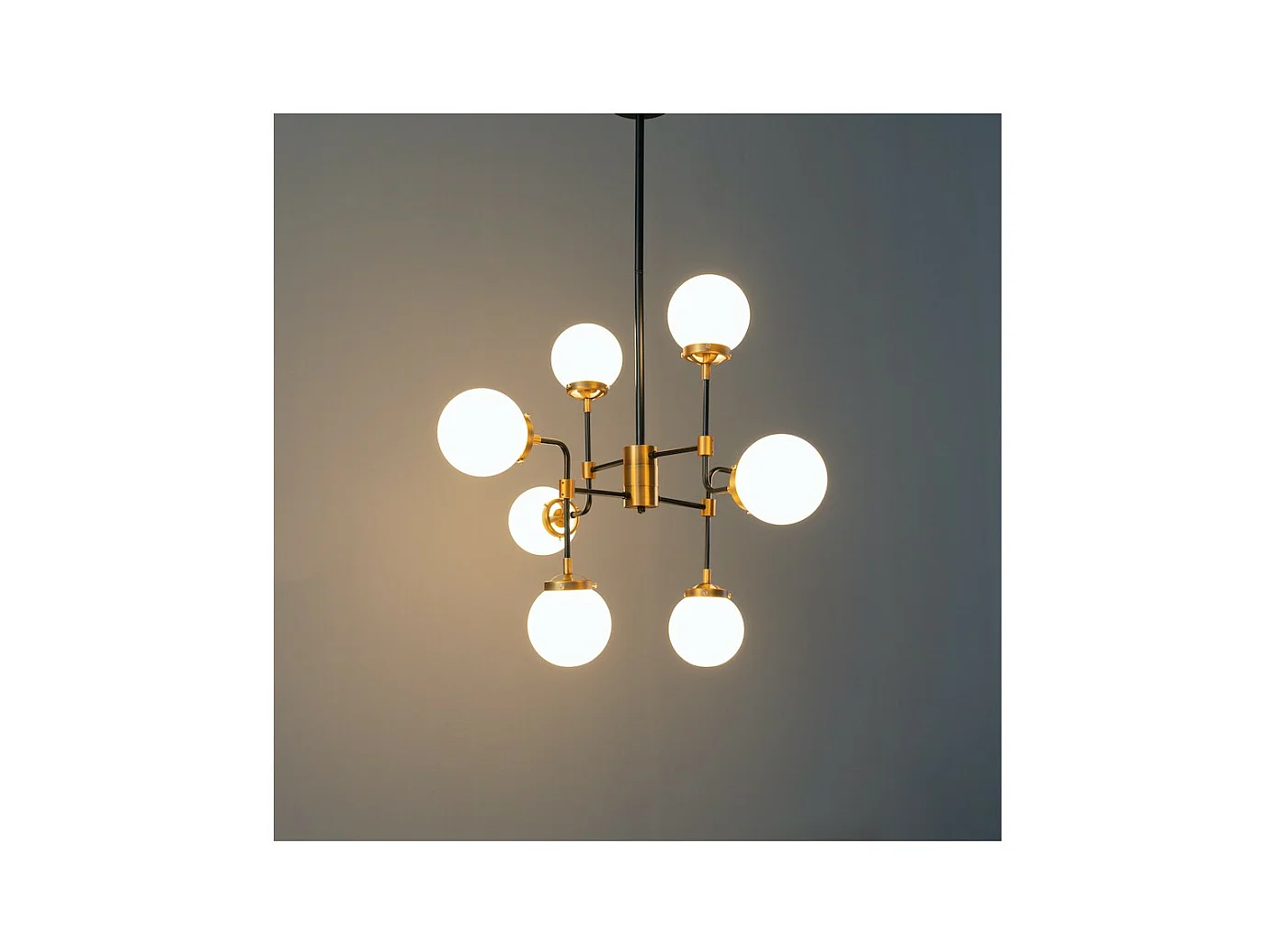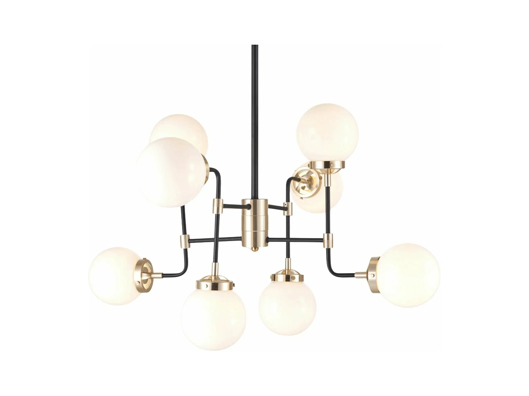 Lustre Industriel Doré à 8 Bras - Verre Blanc Laiteux Zenith