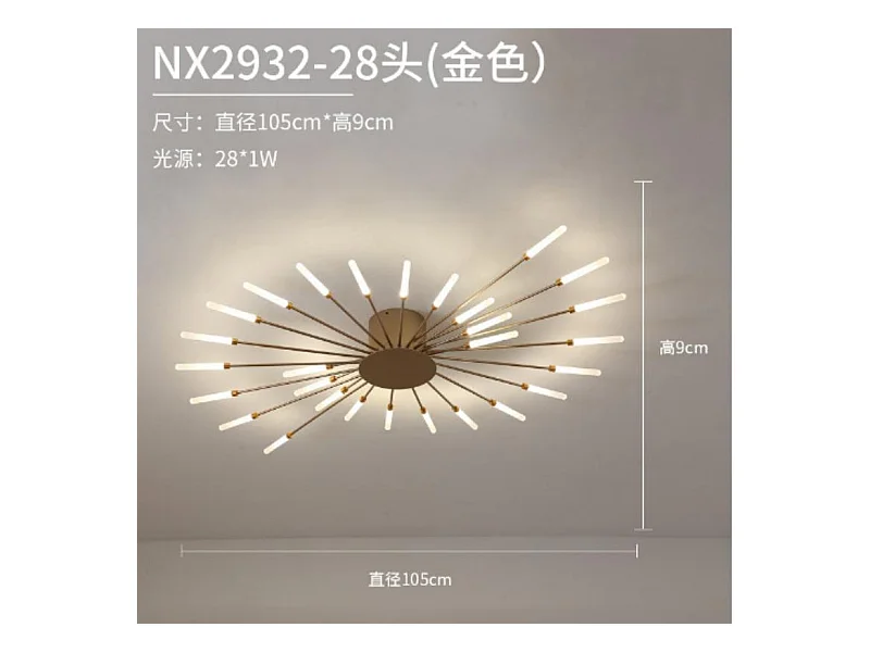 Lustre LED feux d'artifice doré 28W 28 têtes de lampe 105cm de diamètre lumière neutre pour salon/chambre/cuisine