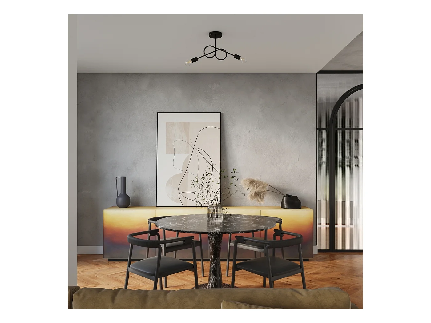 Lustre Loop Minimaliste En Acier - 2 Sources Lumineuses - L.57 X H.25,5 Cm - Noir