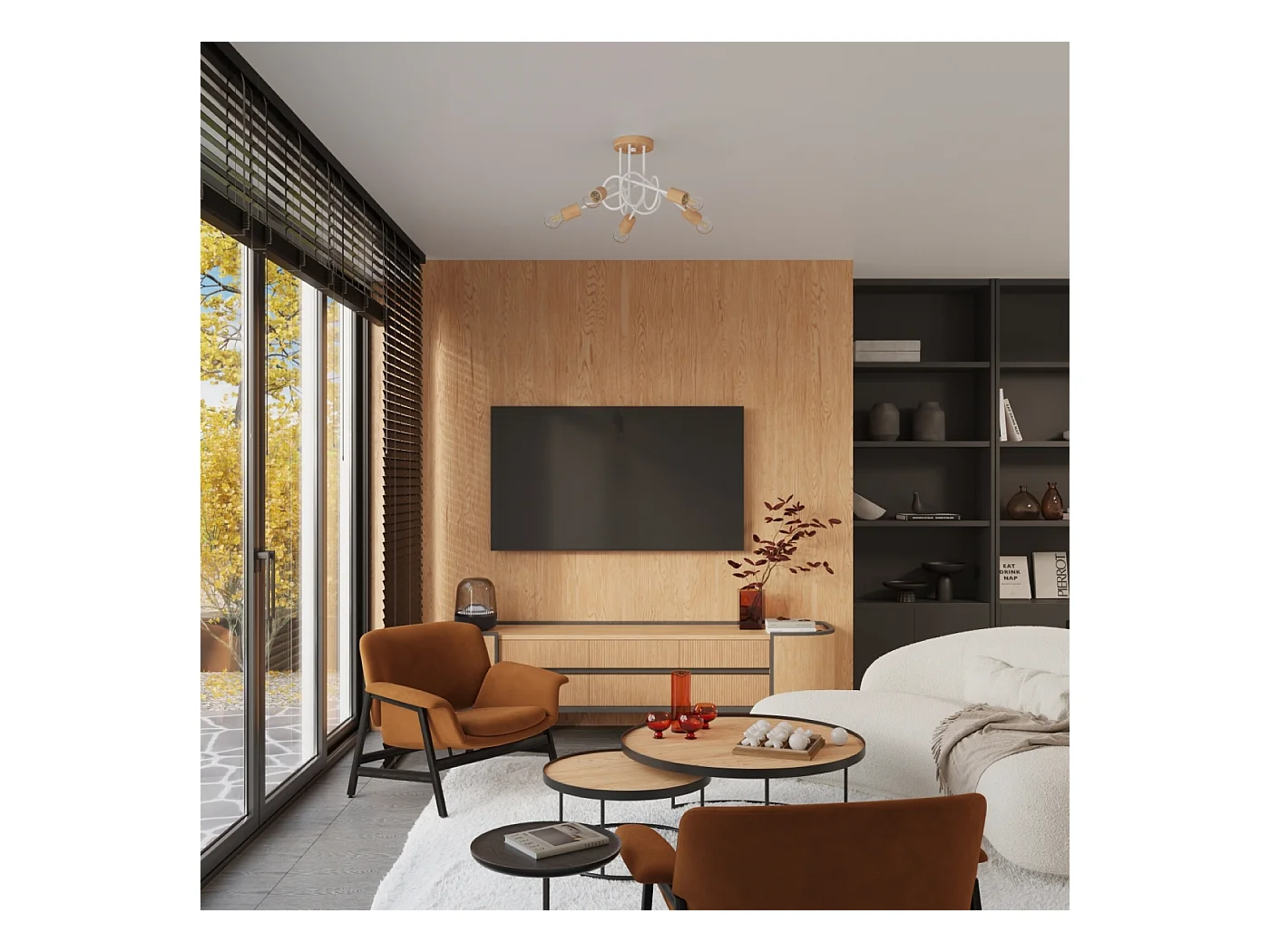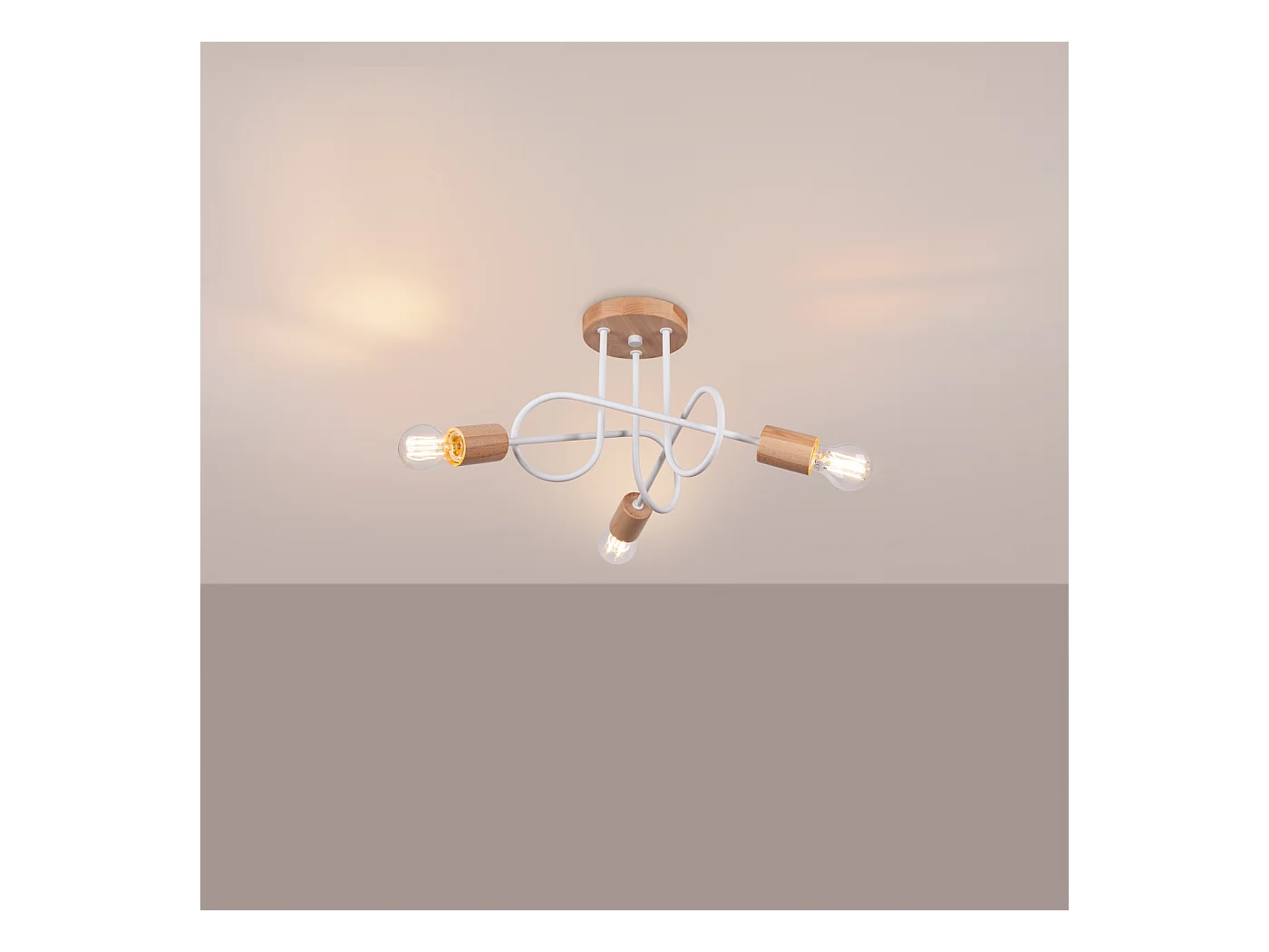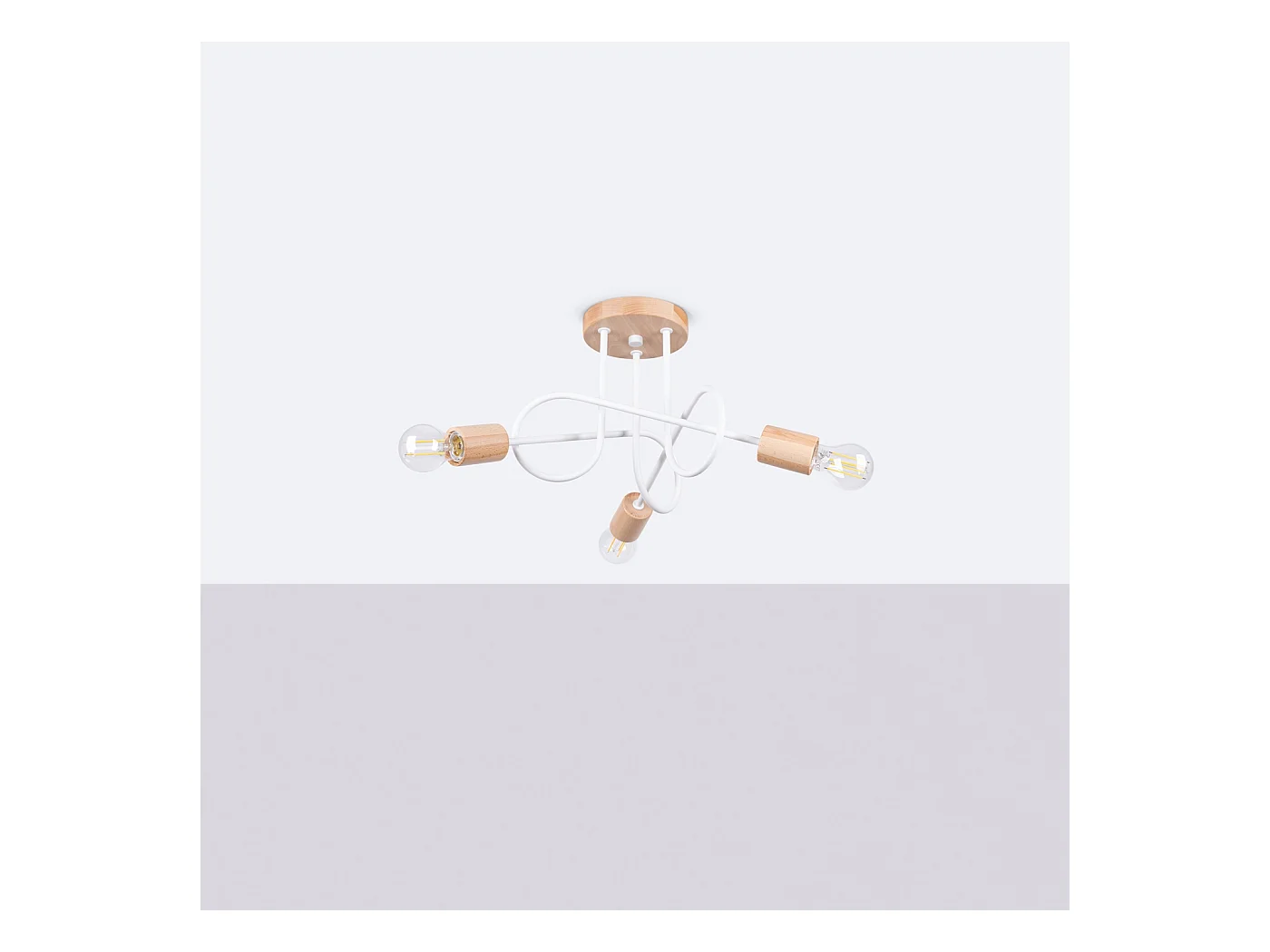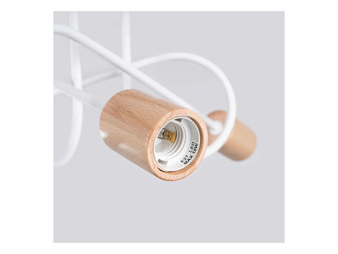 Lustre Sparkon minimaliste en acier/bois - 3 sources lumineuses 3000K - L.14 x H.26 cm - blanc/bois naturel