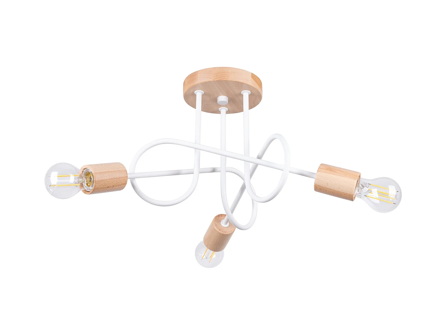 Lustre Sparkon minimaliste en acier/bois - 3 sources lumineuses 3000K - L.14 x H.26 cm - blanc/bois naturel