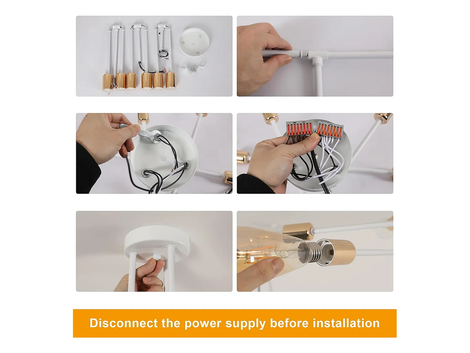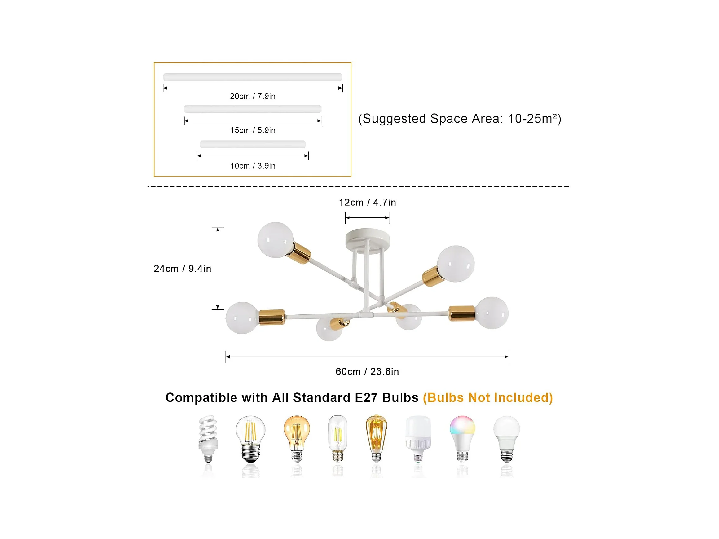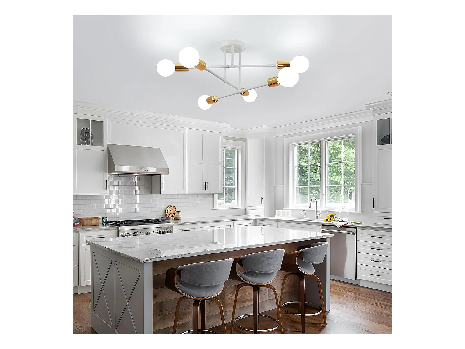 Lustre vintage 6 lumières E27 60cm, style moderne, pour salon, salle à manger, cuisine, blanc et doré, puissance maximale 60W (ampoule non incluse)