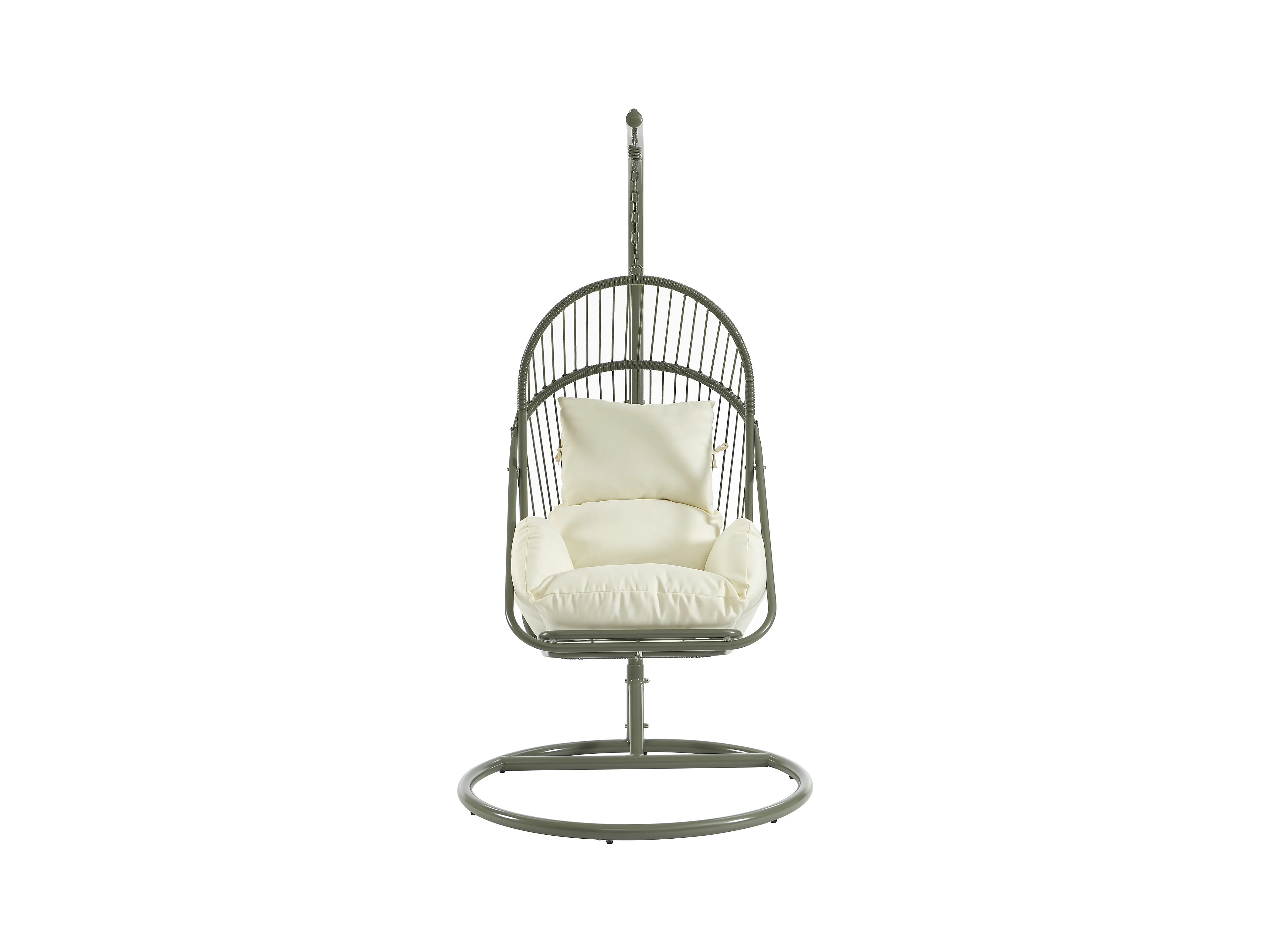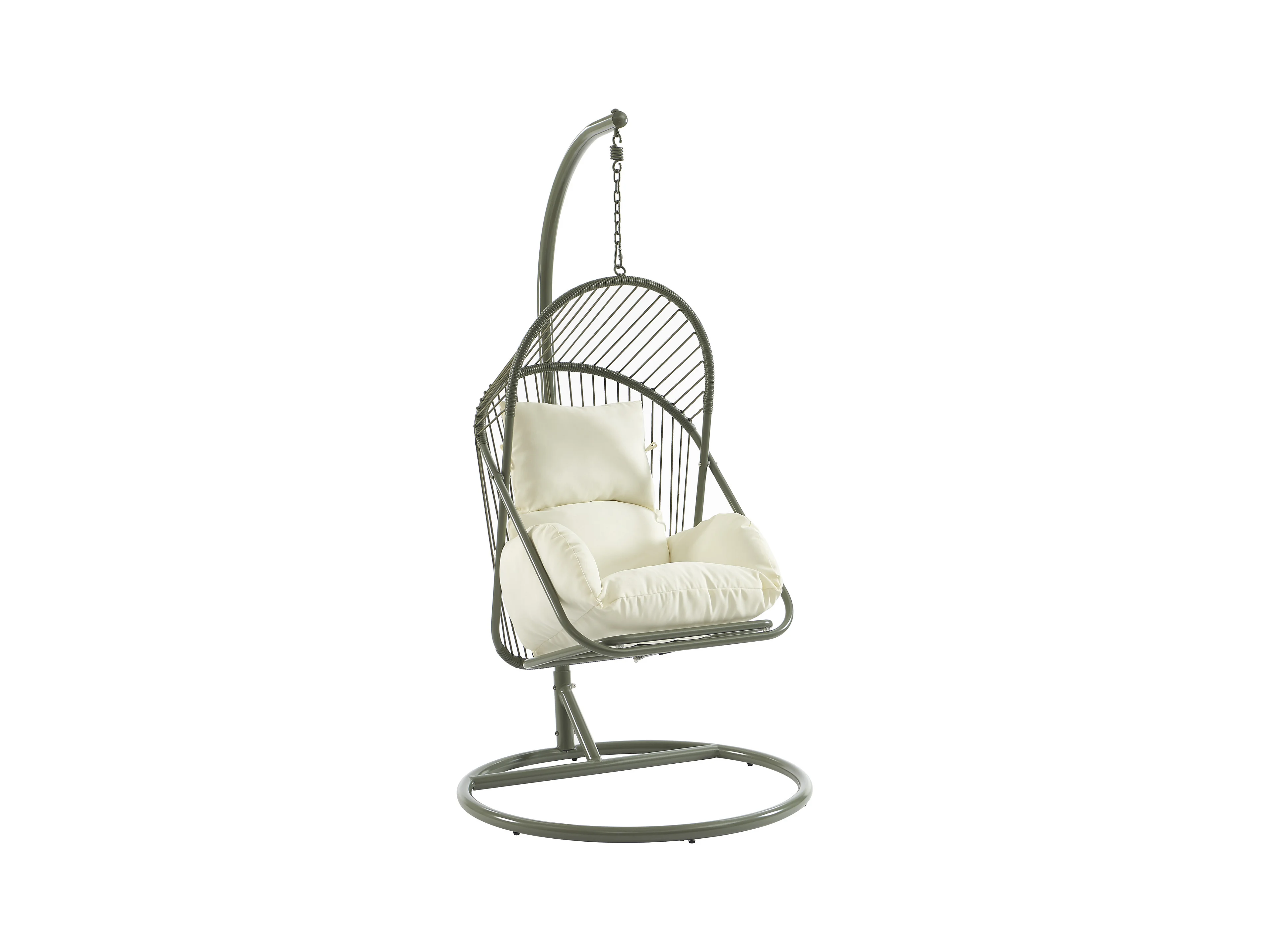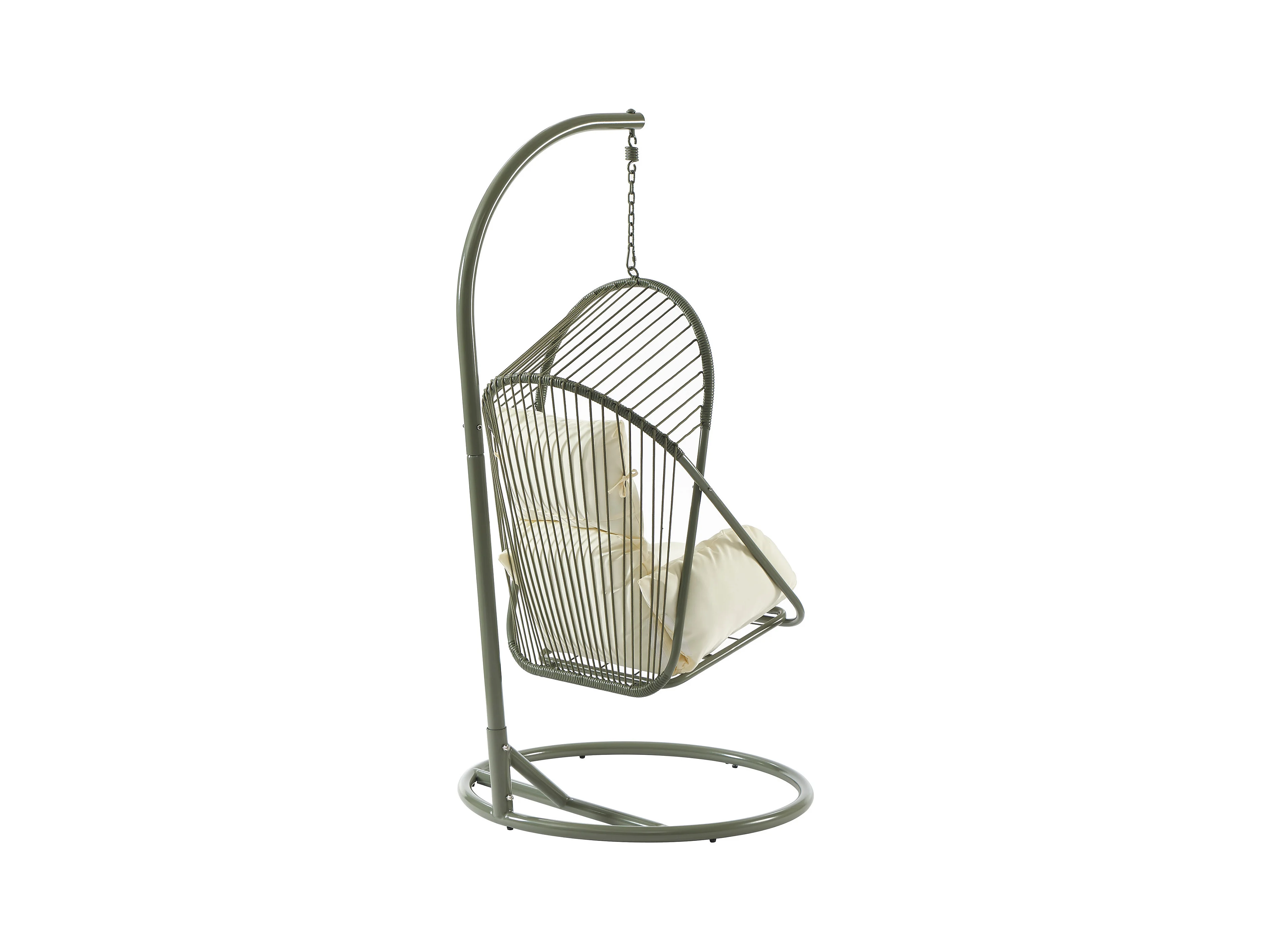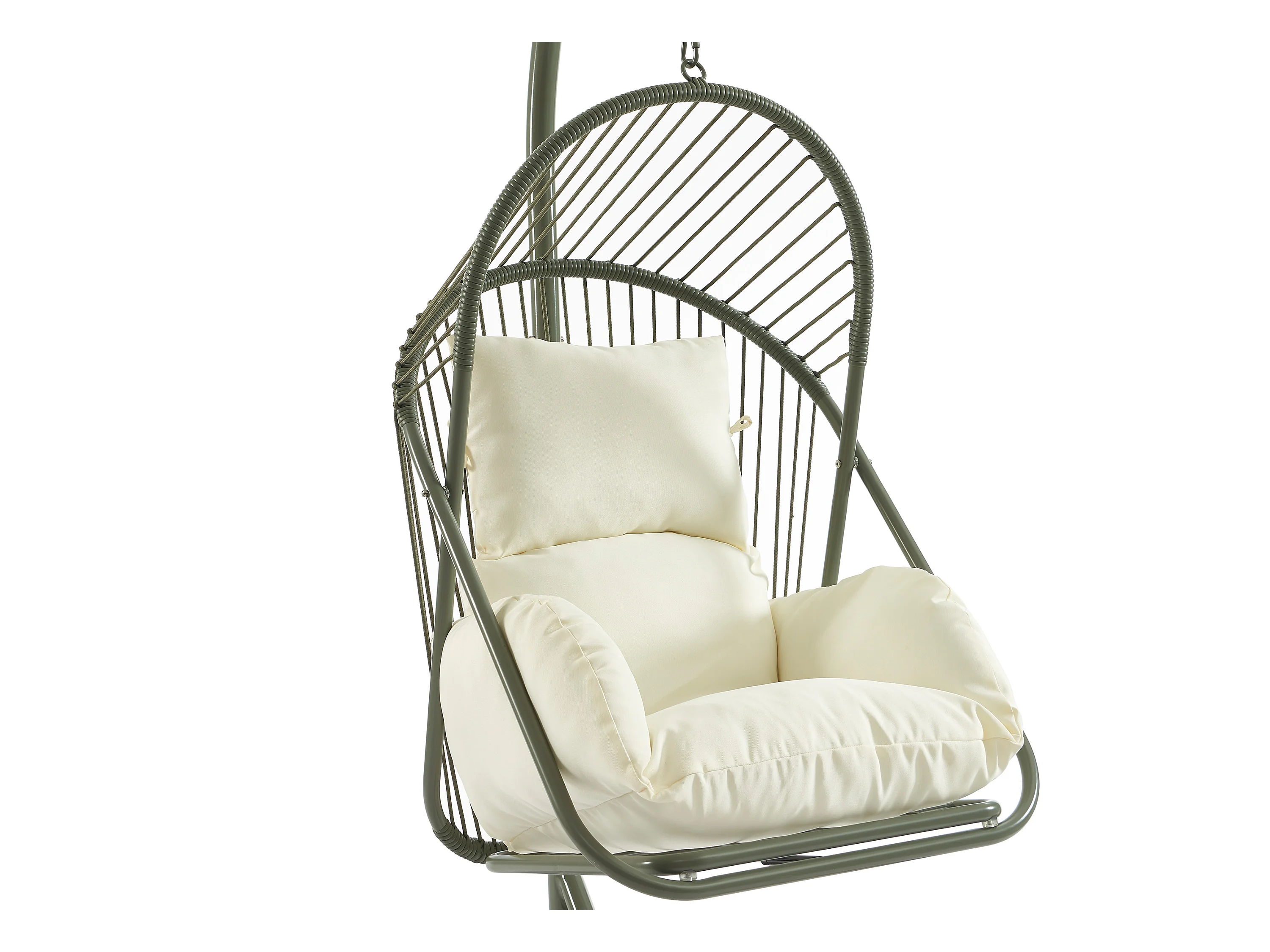 Fauteuil suspendu en résine tressée - Vert avec coussins blancs - LUTUS de MYLIA