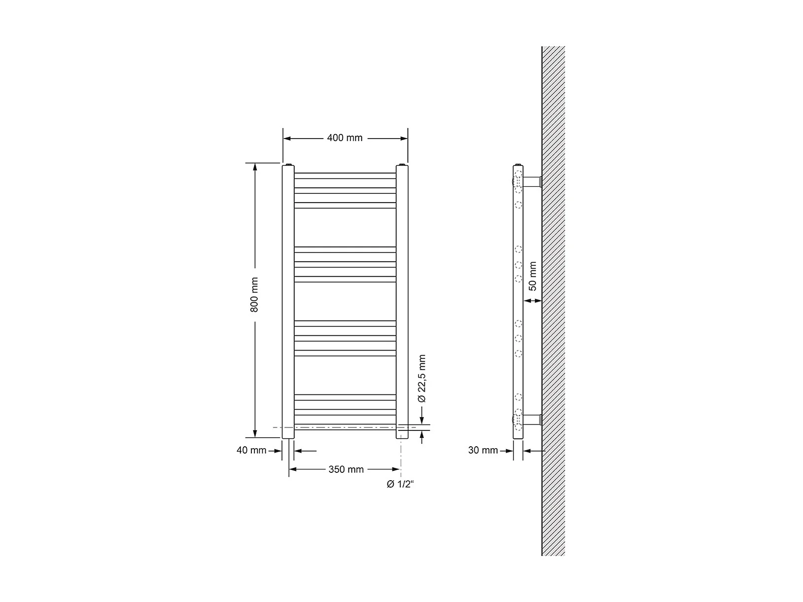 LuxeBath Radiateur électrique pour salle de bain Sahara 400x800 mm Anthracite Raccord latéral droit & résistance 300W