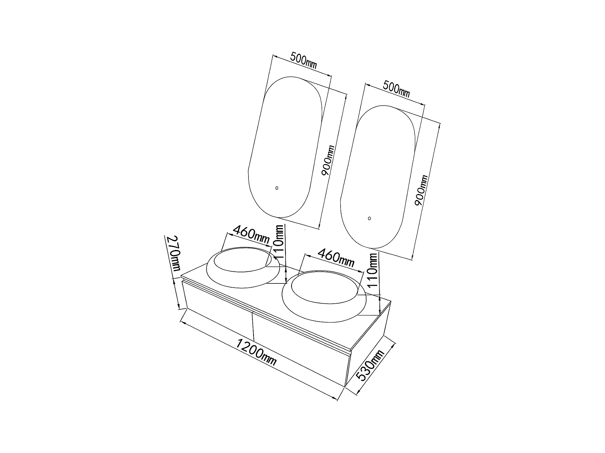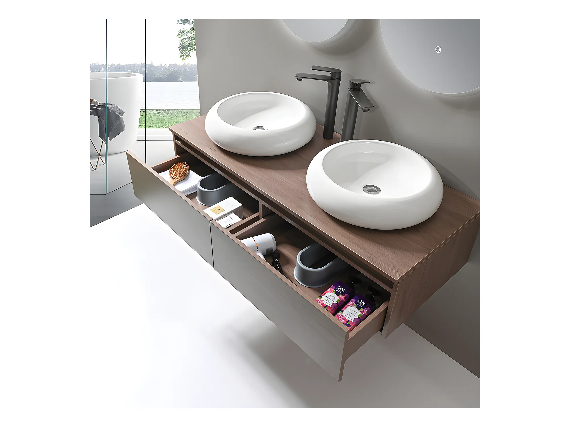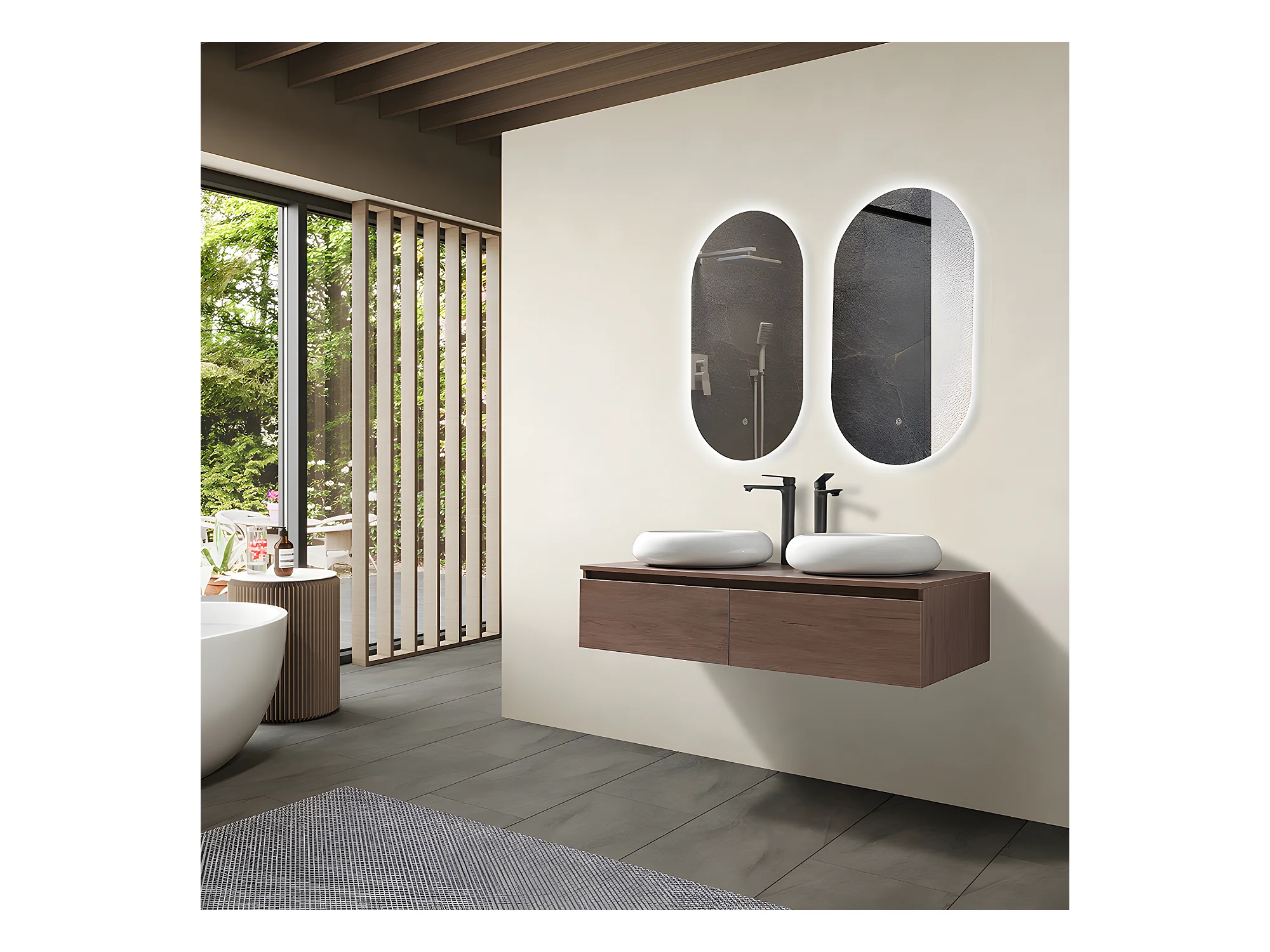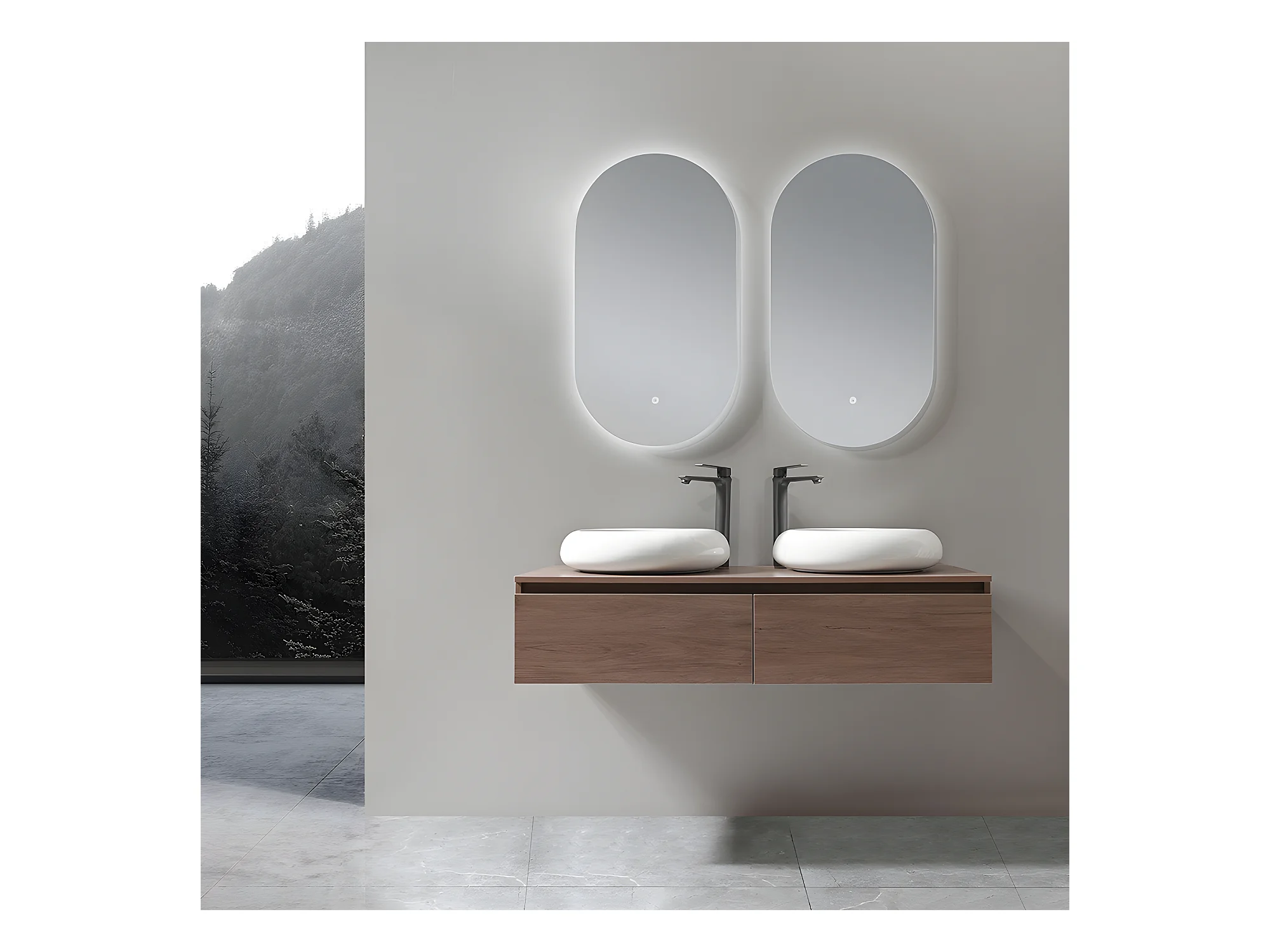 LuxuryBain - Meuble de salle de bain double vasque 120cm bois foncé avec miroir led