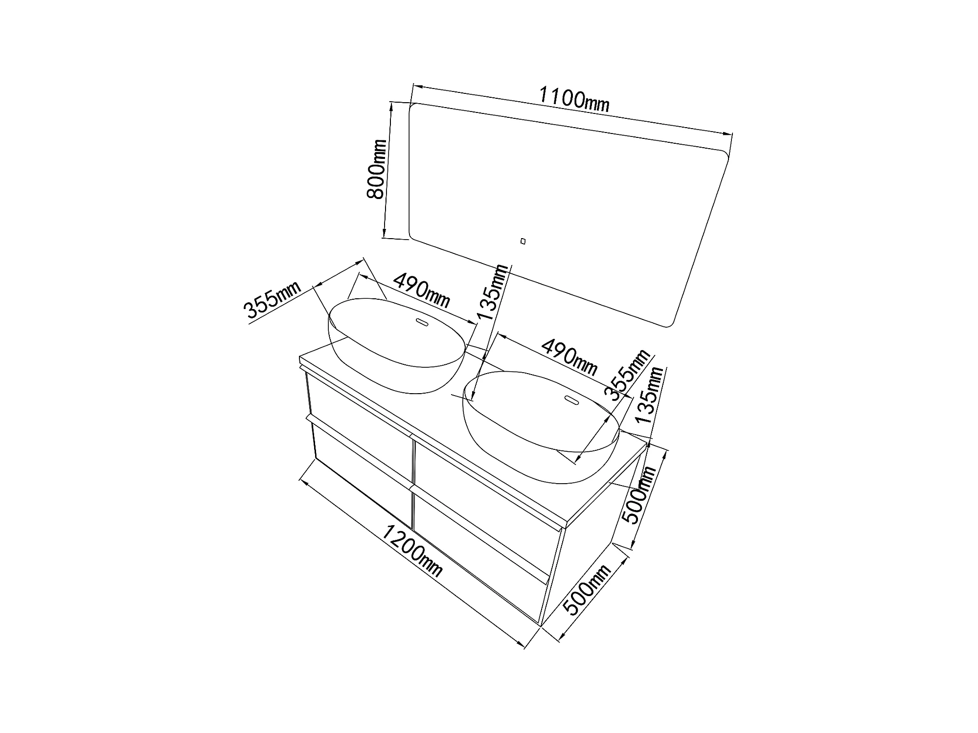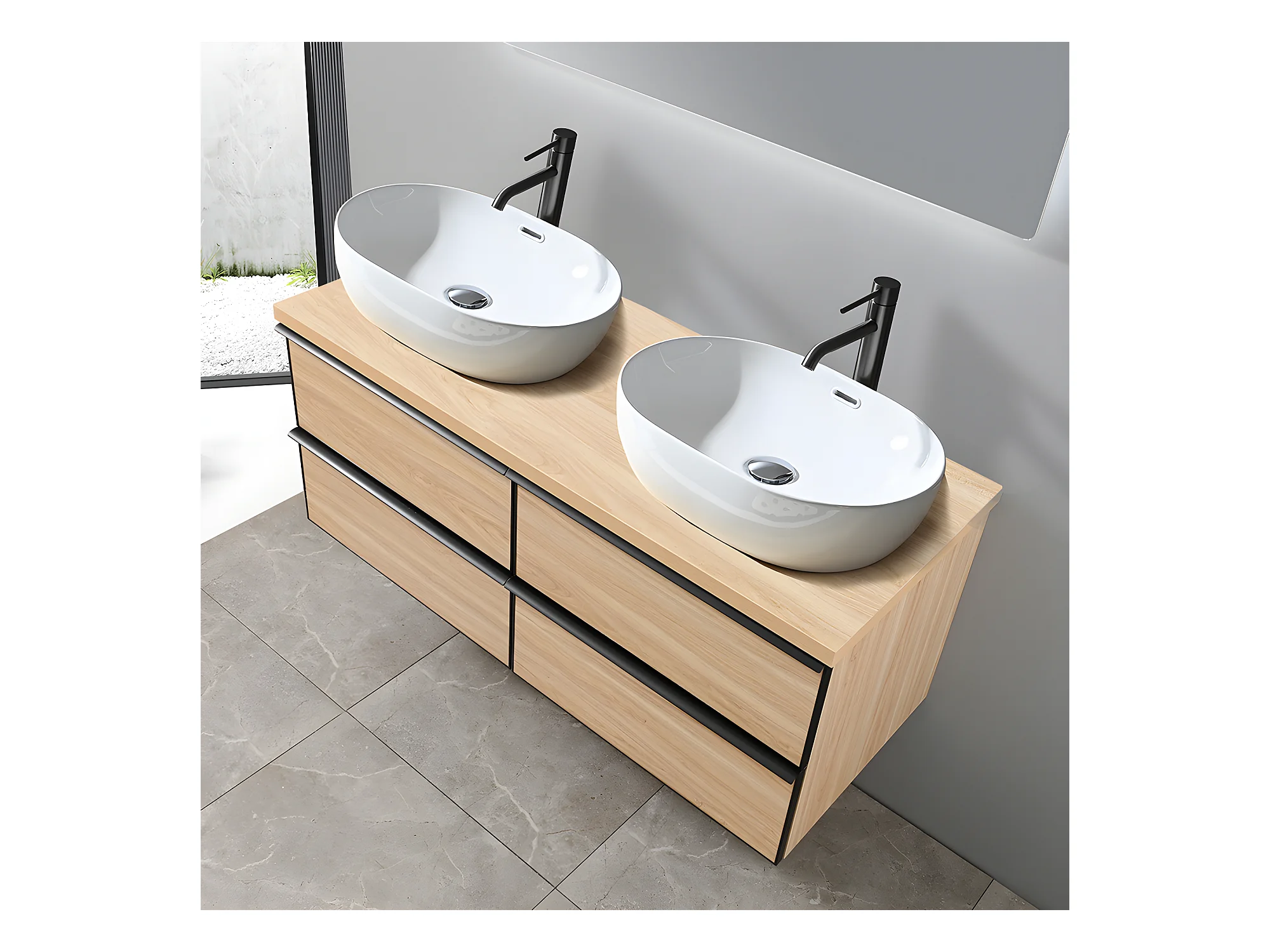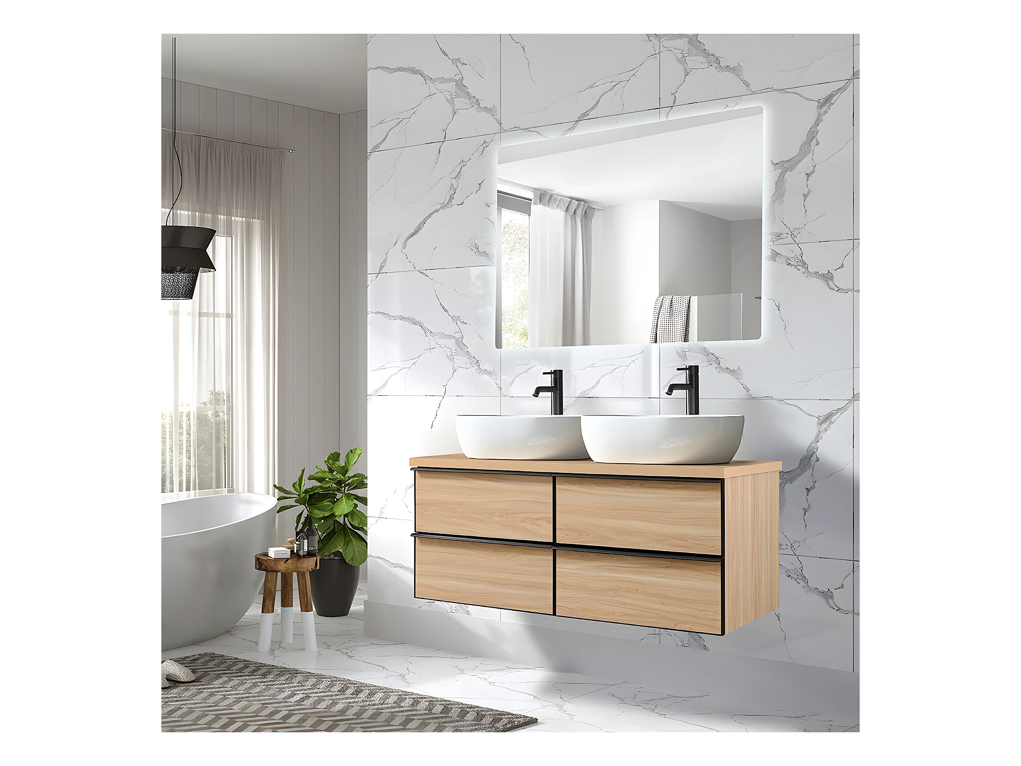 LuxuryBain - Meuble de salle de bain double vasque 120cm chêne clair avec miroir led