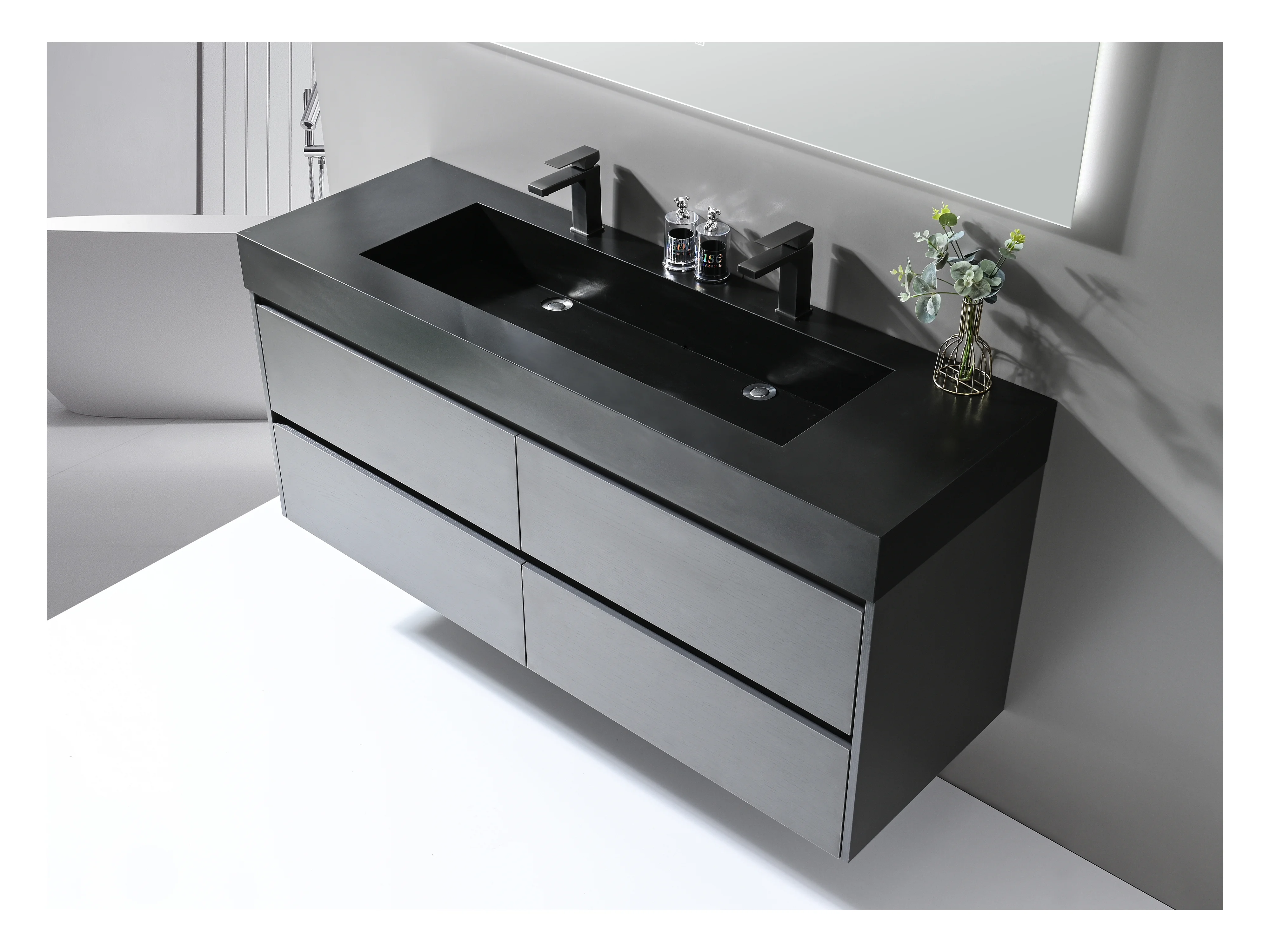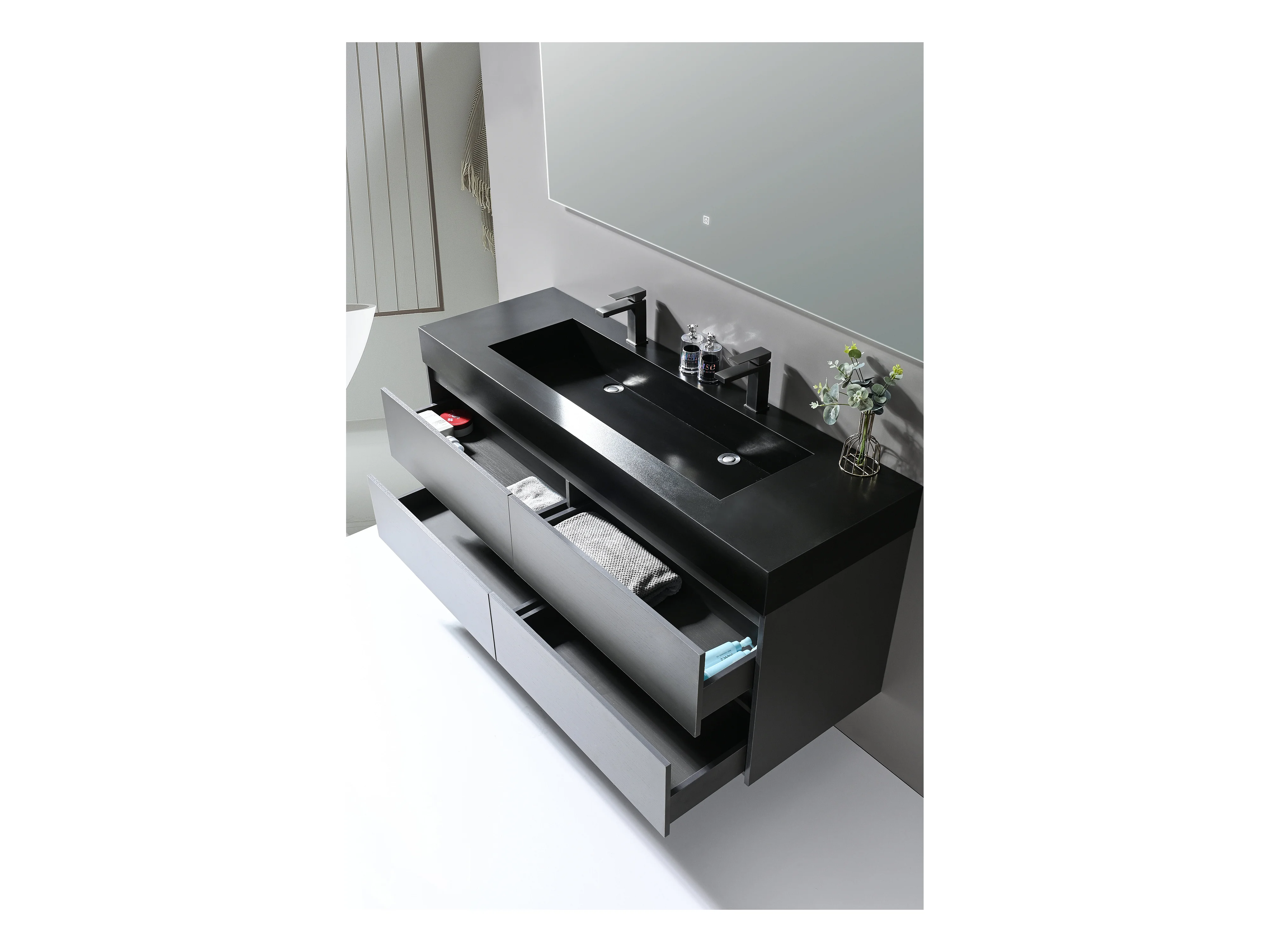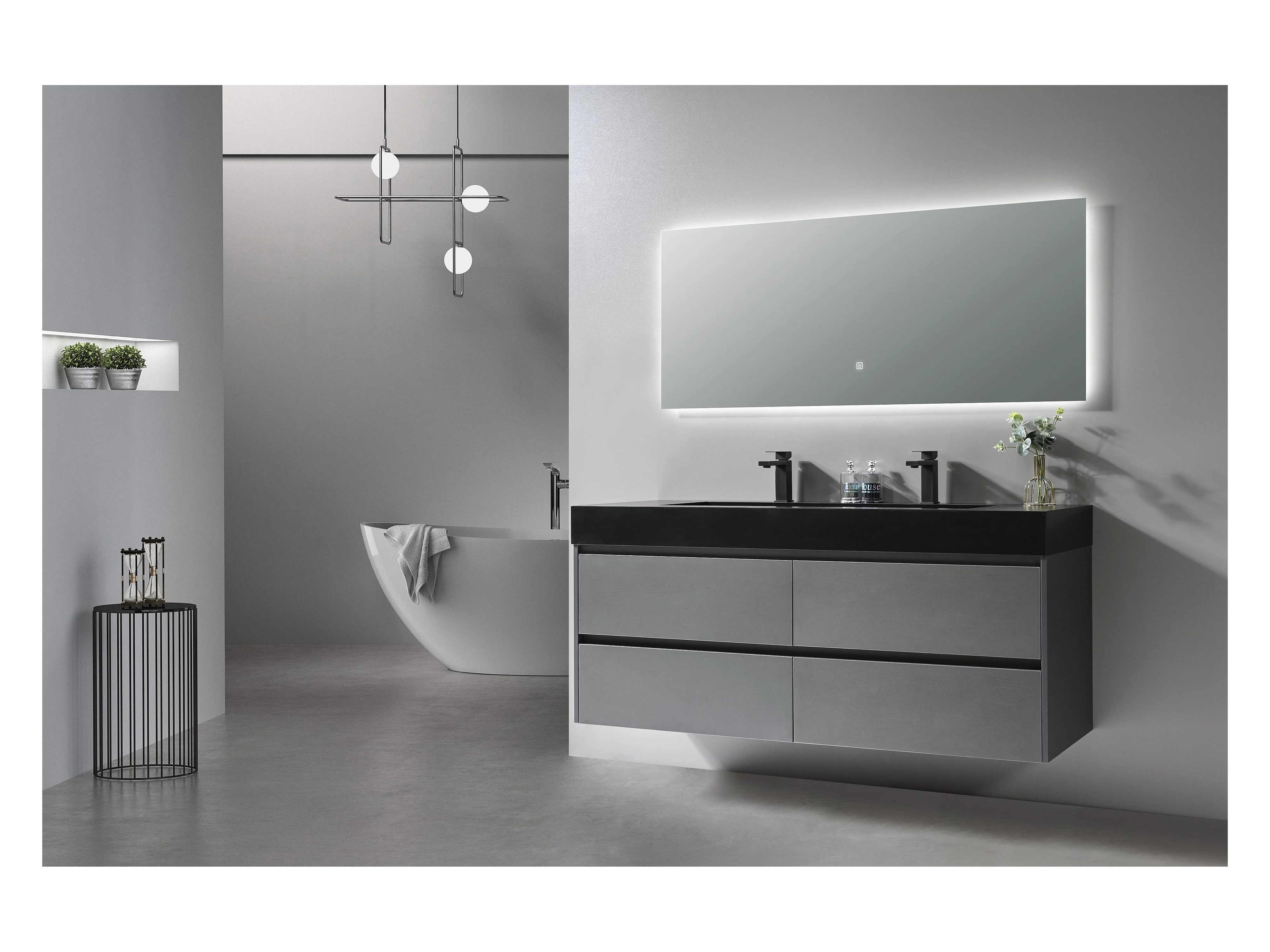 LuxuryBain- Meuble de salle de bain double vasque 140cm gris et noir avec miroir LED LB-8476S