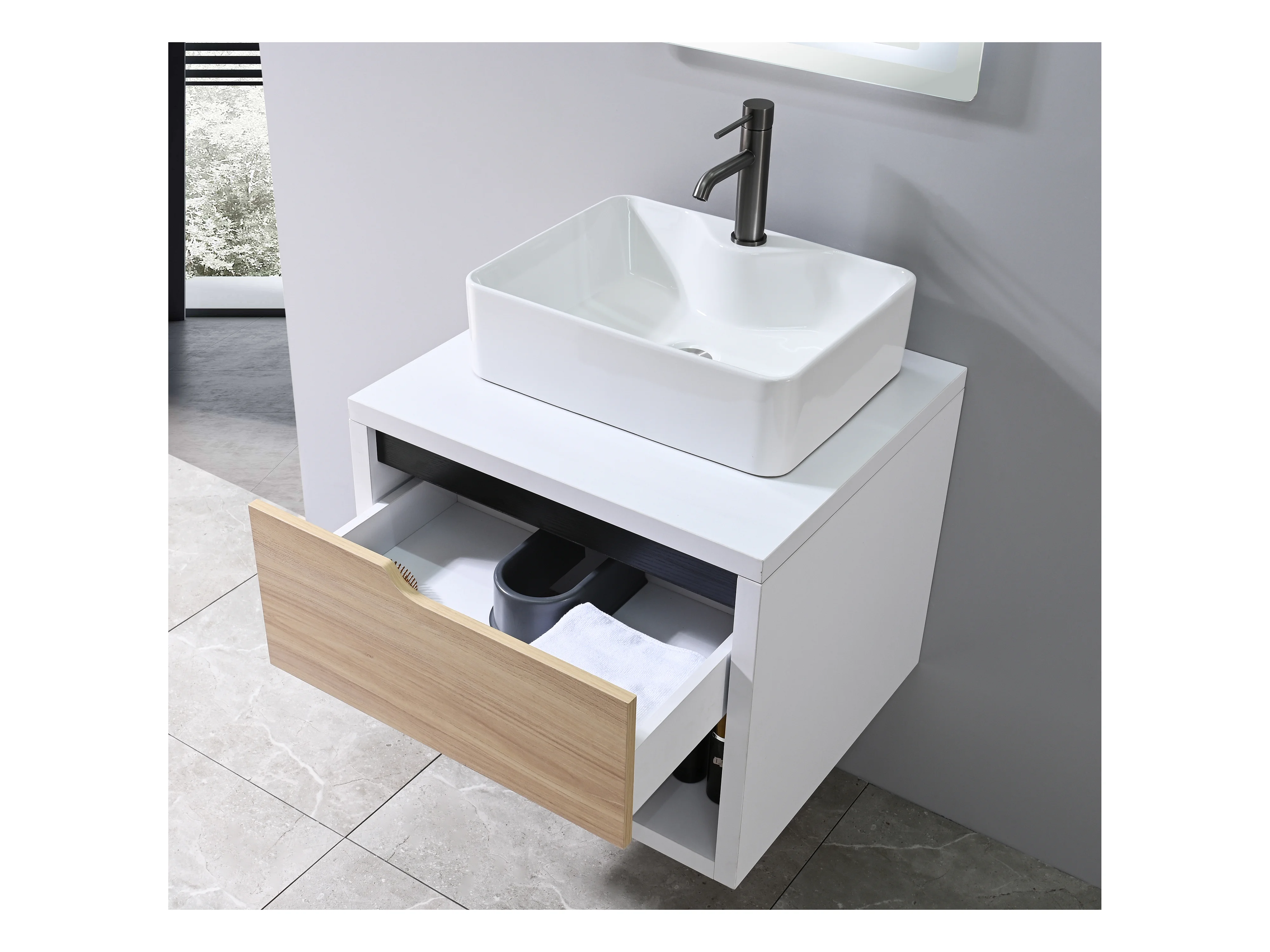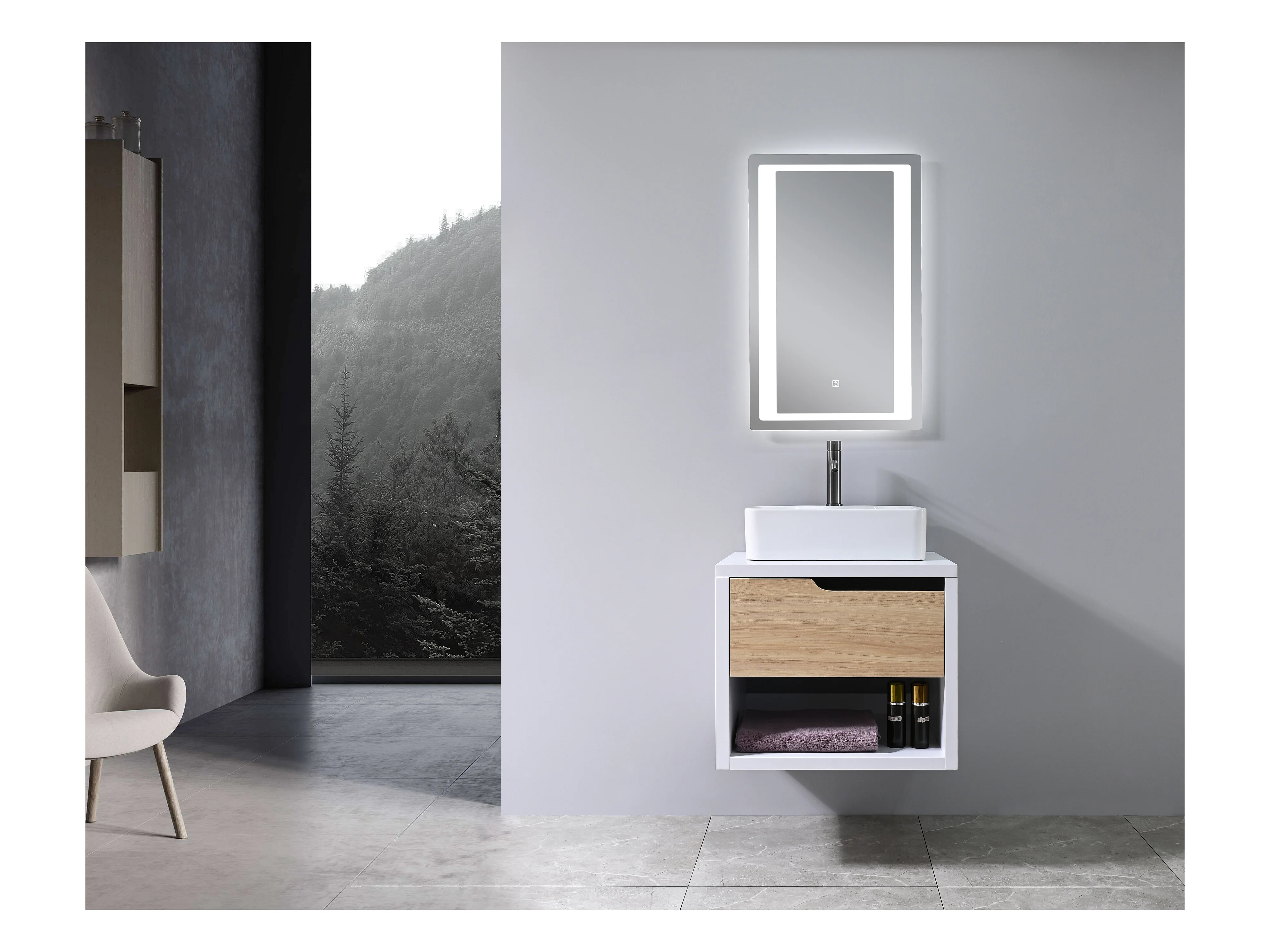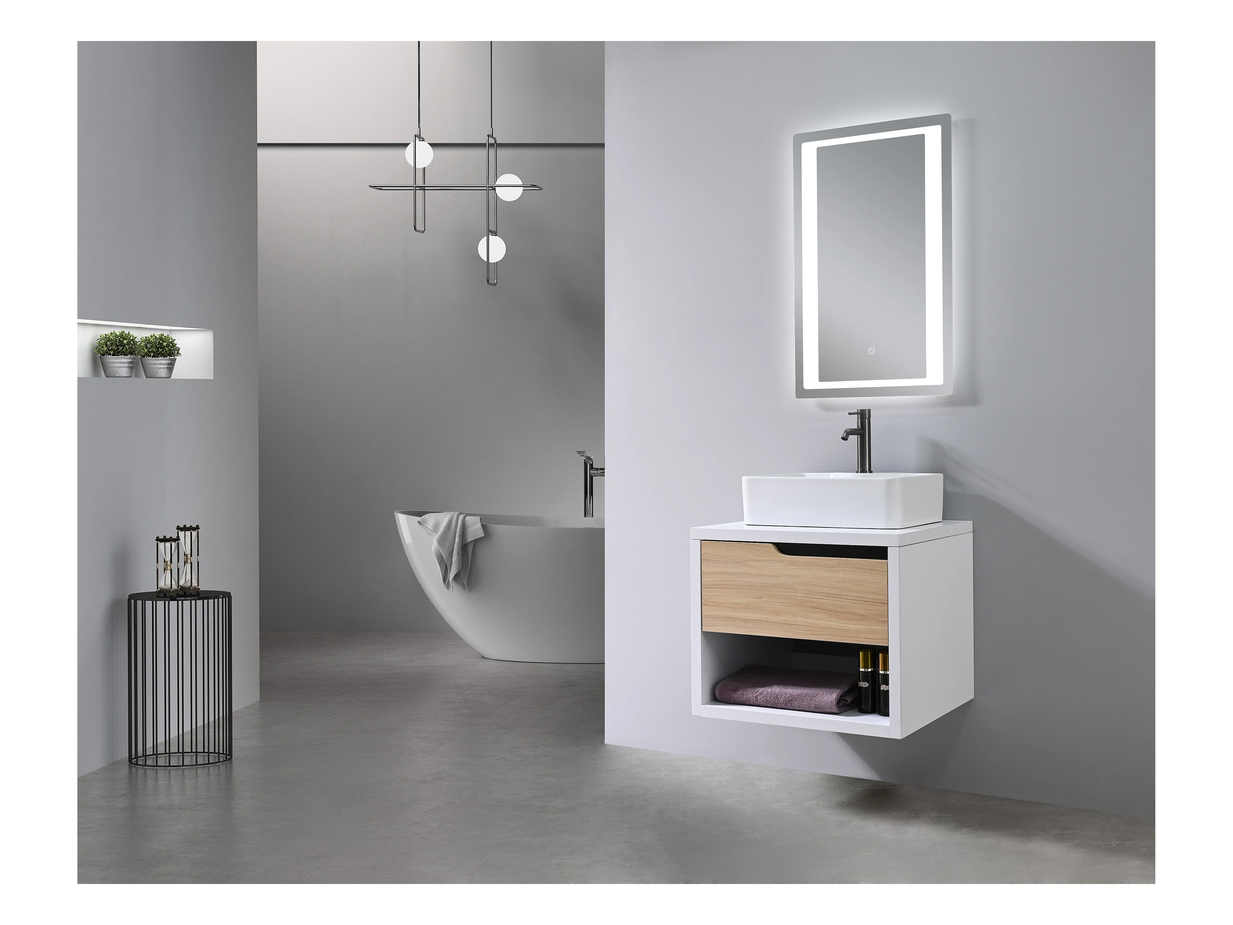 LuxuryBain- Meuble de salle de bain simple vasque 60cm bois et blanc avec miroir LED LB-8153-60