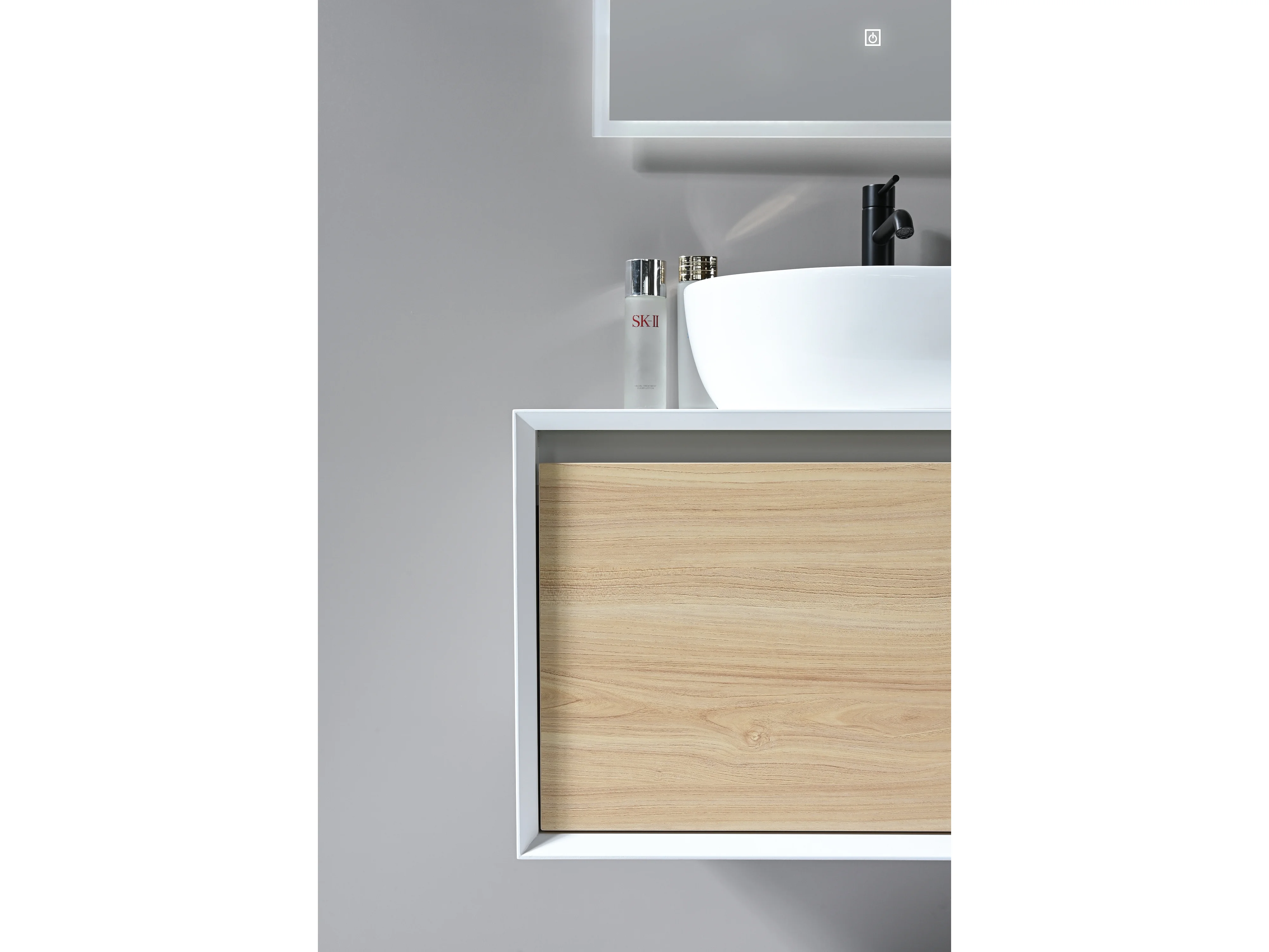 LuxuryBain- Meuble de salle de bain simple vasque 80cm blanc et bois avec miroir LED LB-5074