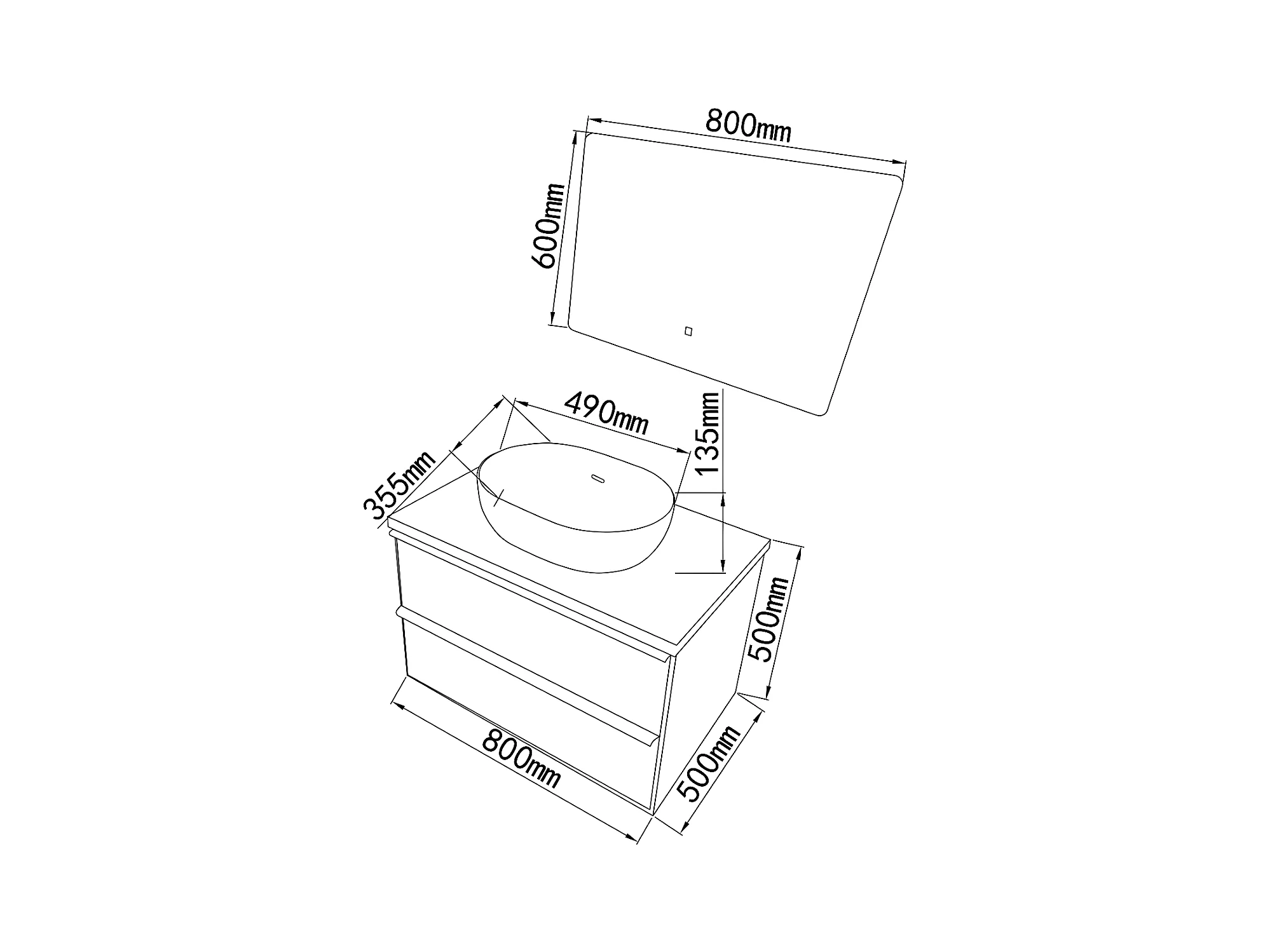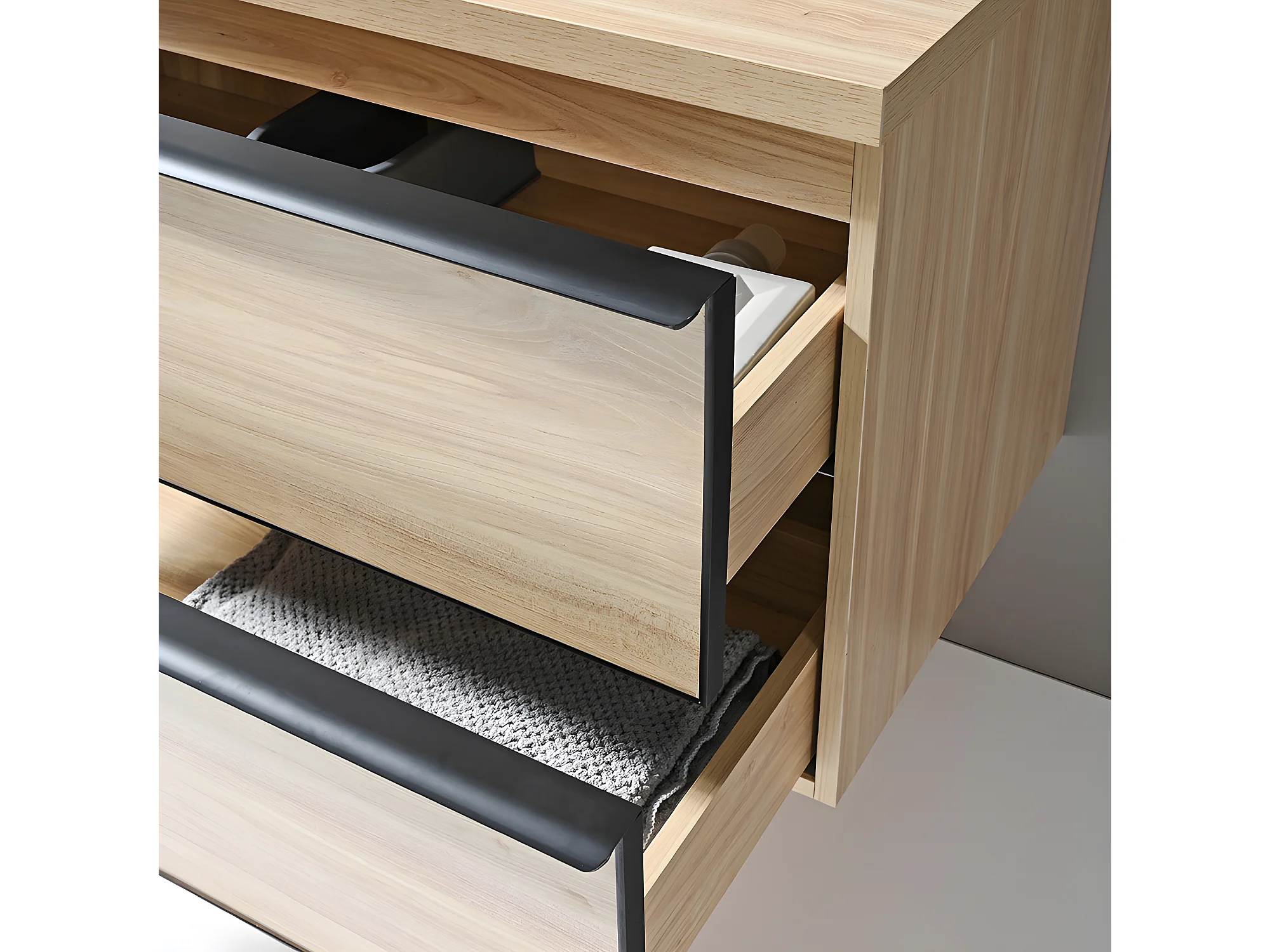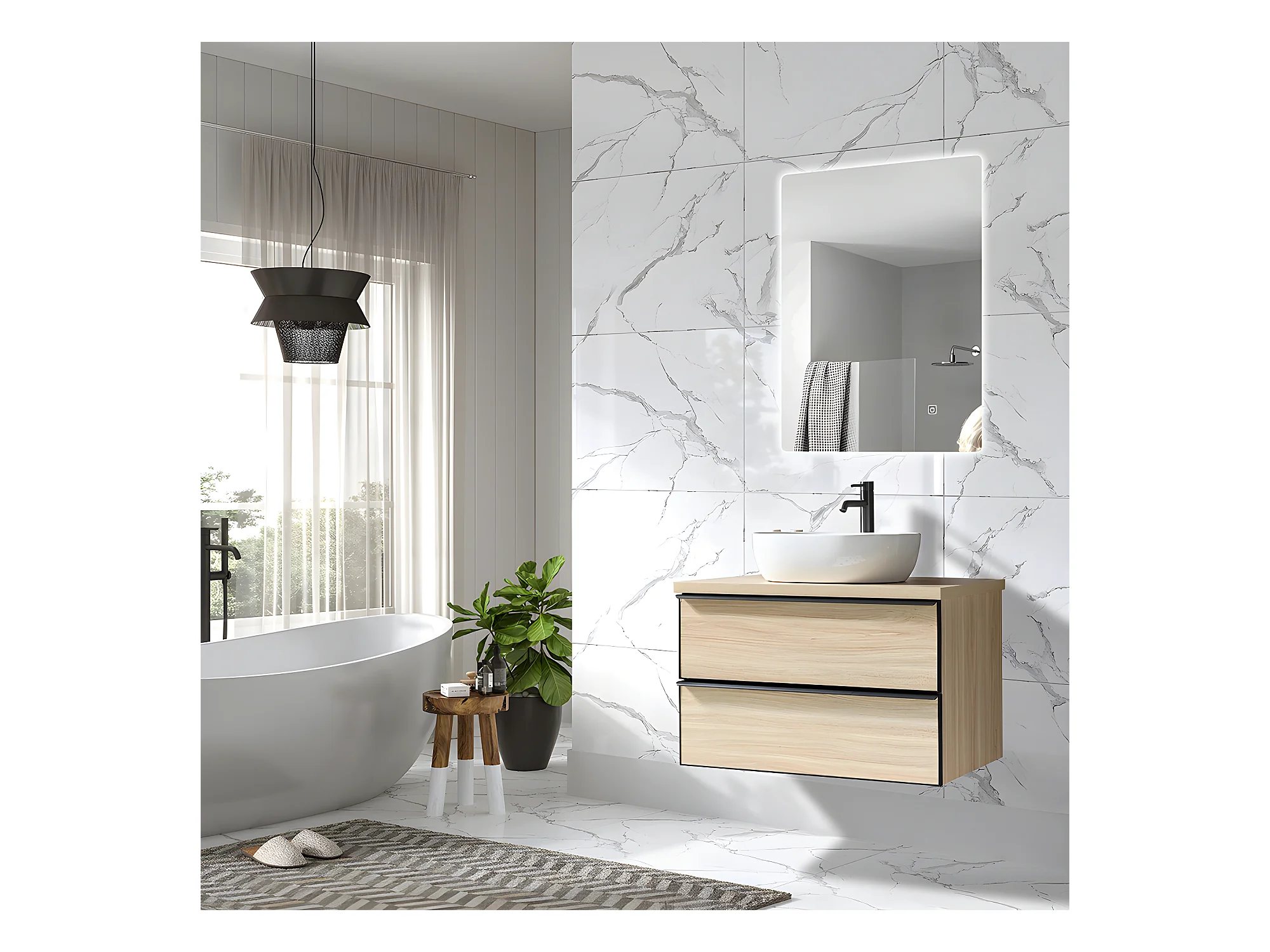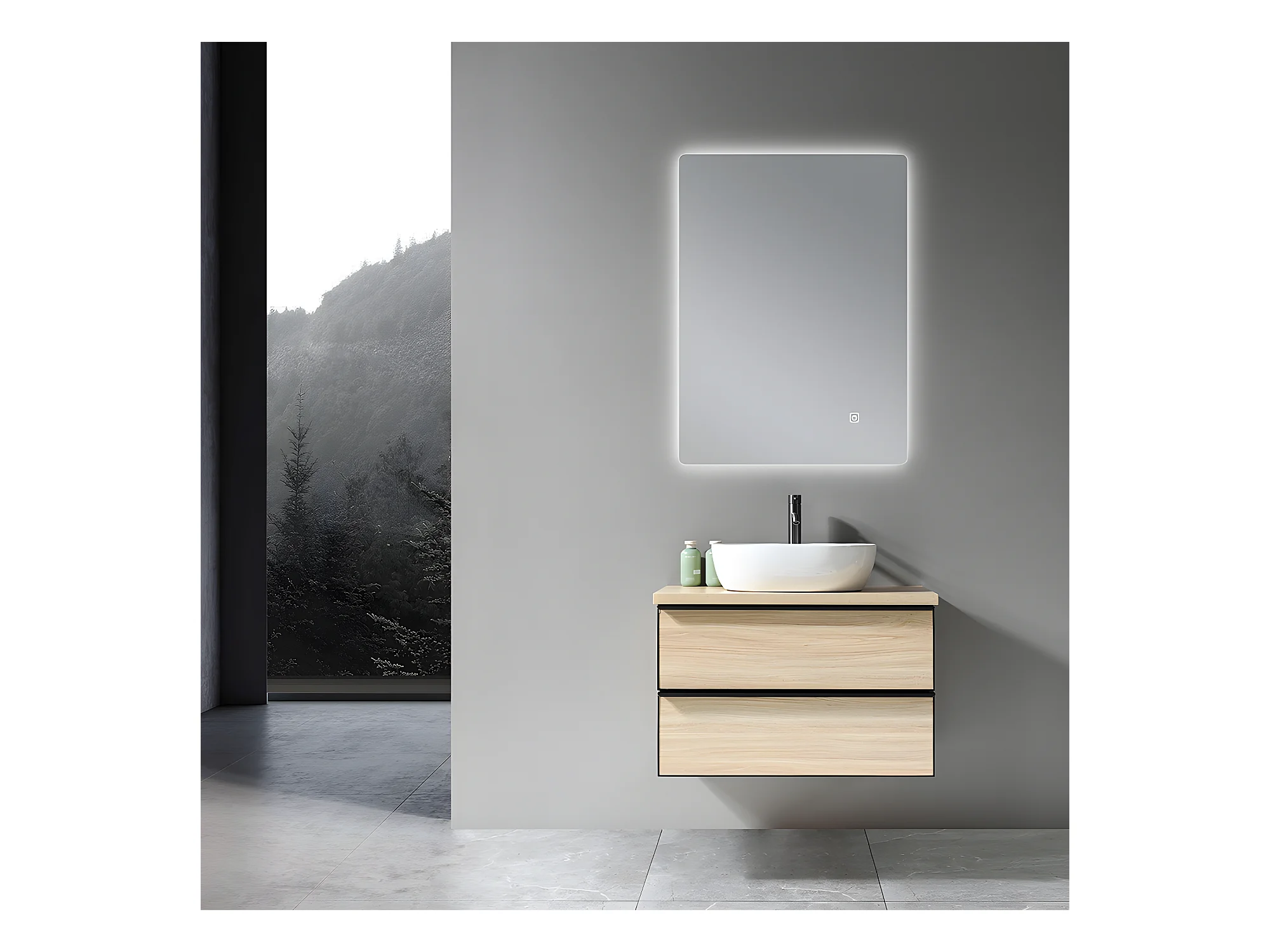 LuxuryBain - Meuble de salle de bain simple vasque 80cm chêne clair avec miroir led