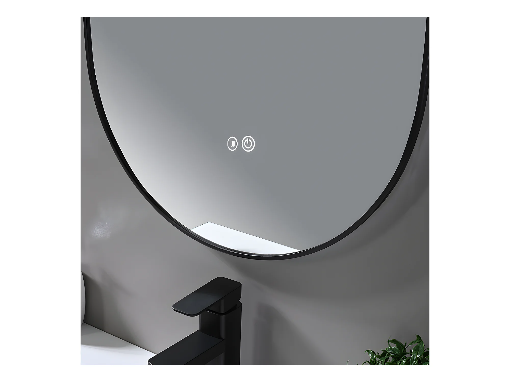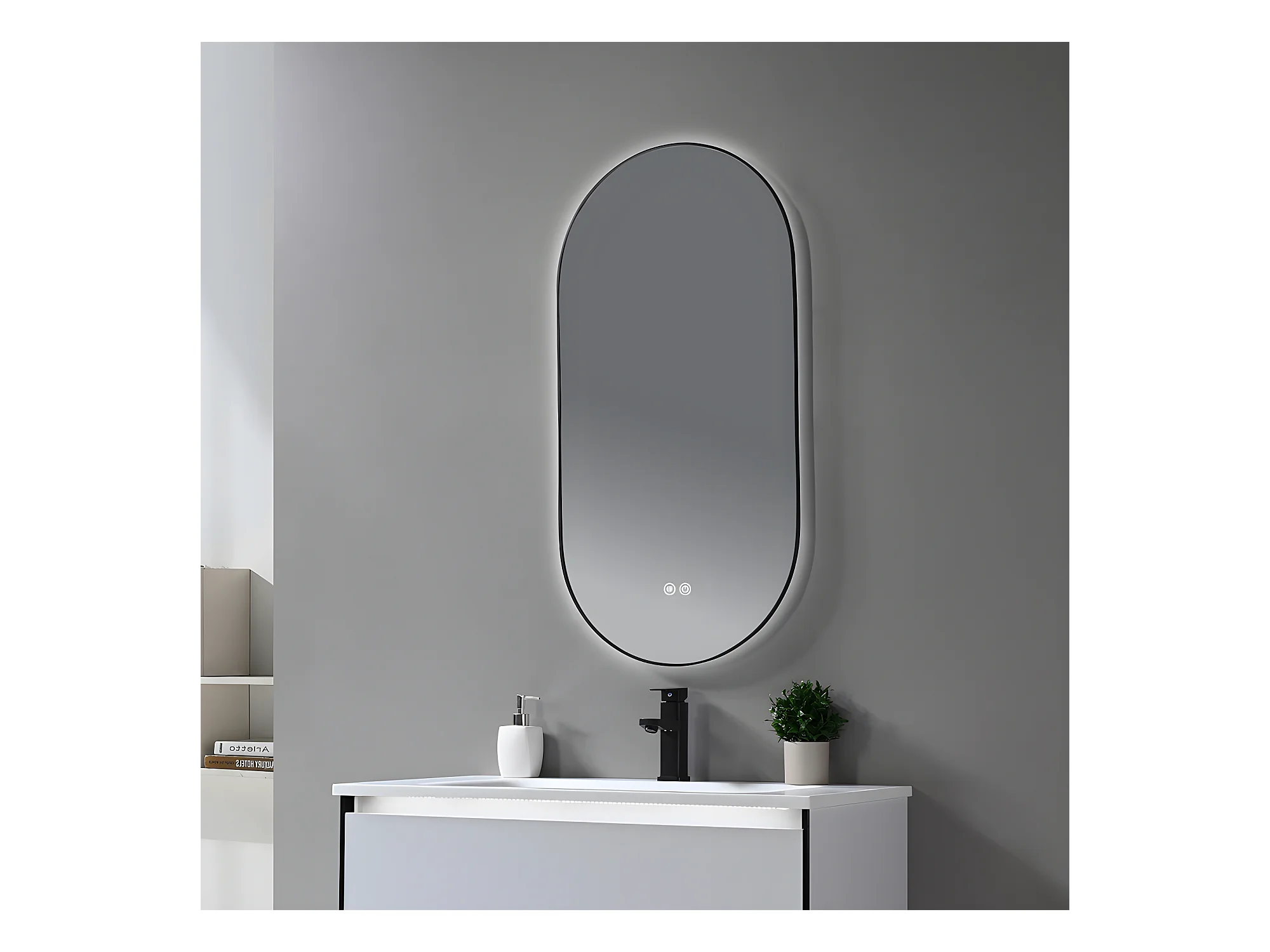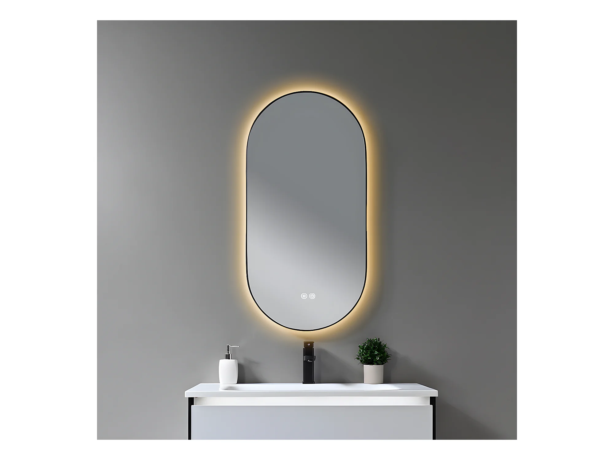 LuxuryBain- Miroir de salle de bain LED 45x90cm ovale anti buée avec cadre en aluminium noir