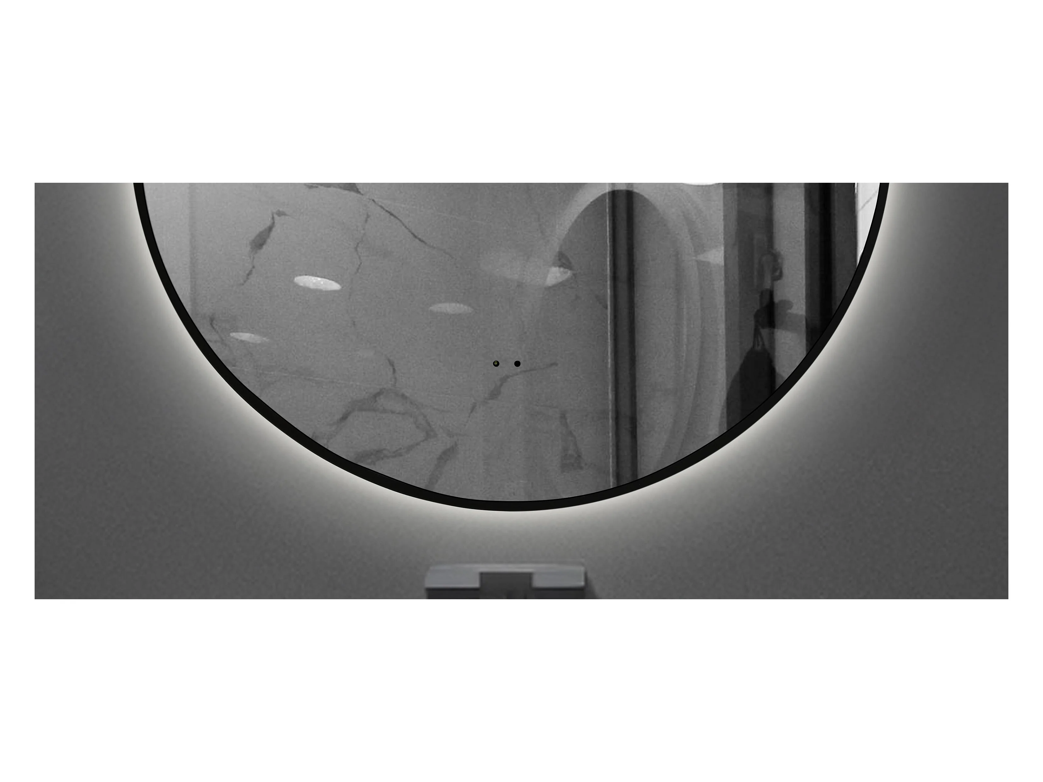 LuxuryBain- Miroir de salle de bain LED à luminosité variable 80cm rond avec cadre en aluminium noir et touche sensitive