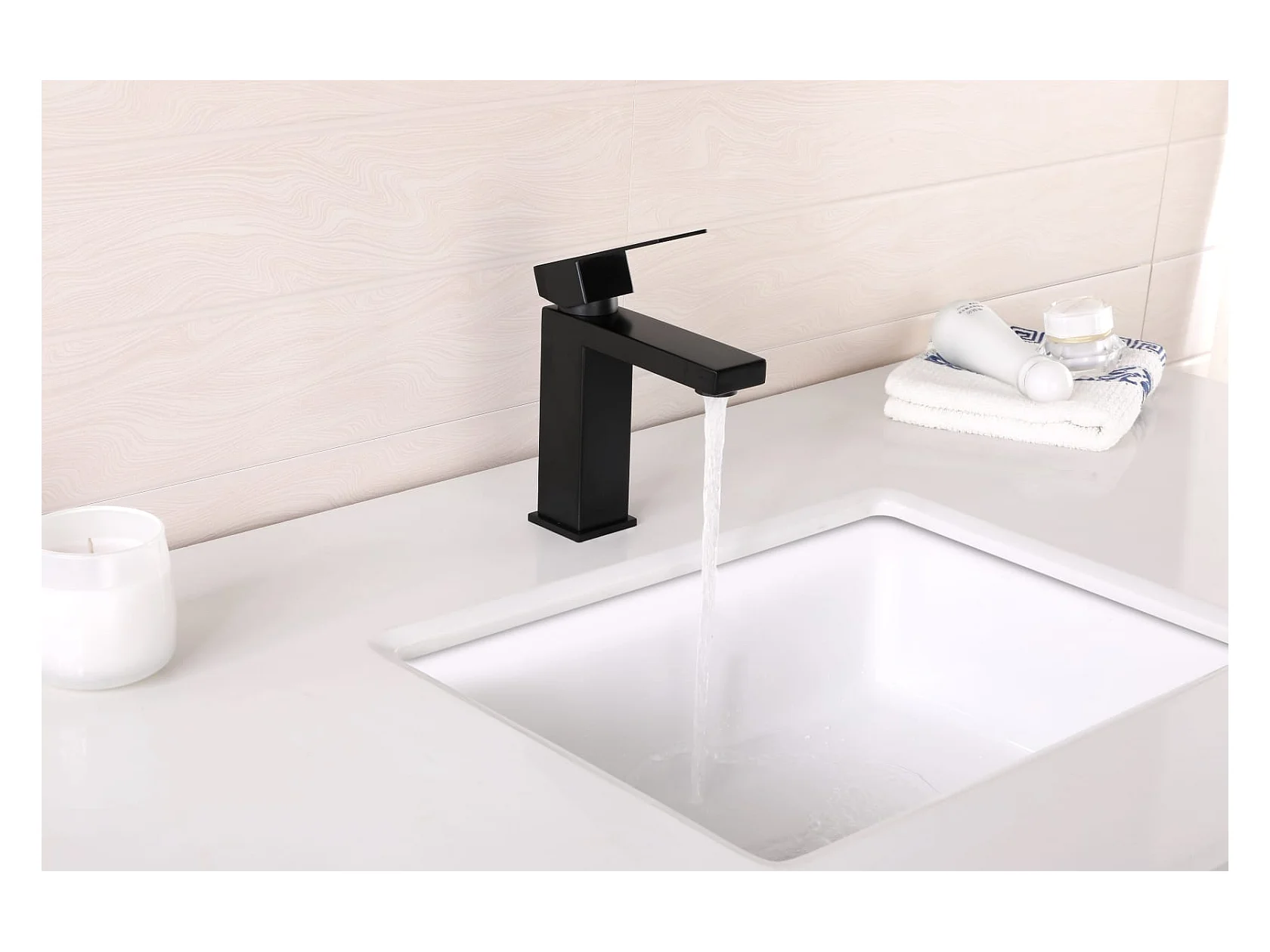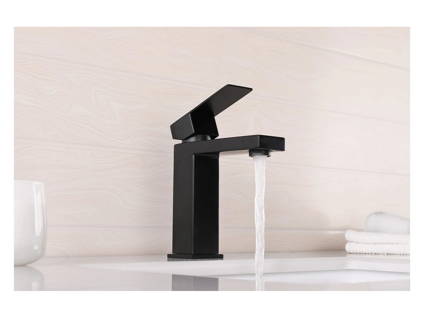 LuxuryBain- Robinet, mitigeur de lavabo pour salle de bain carré (Noir)