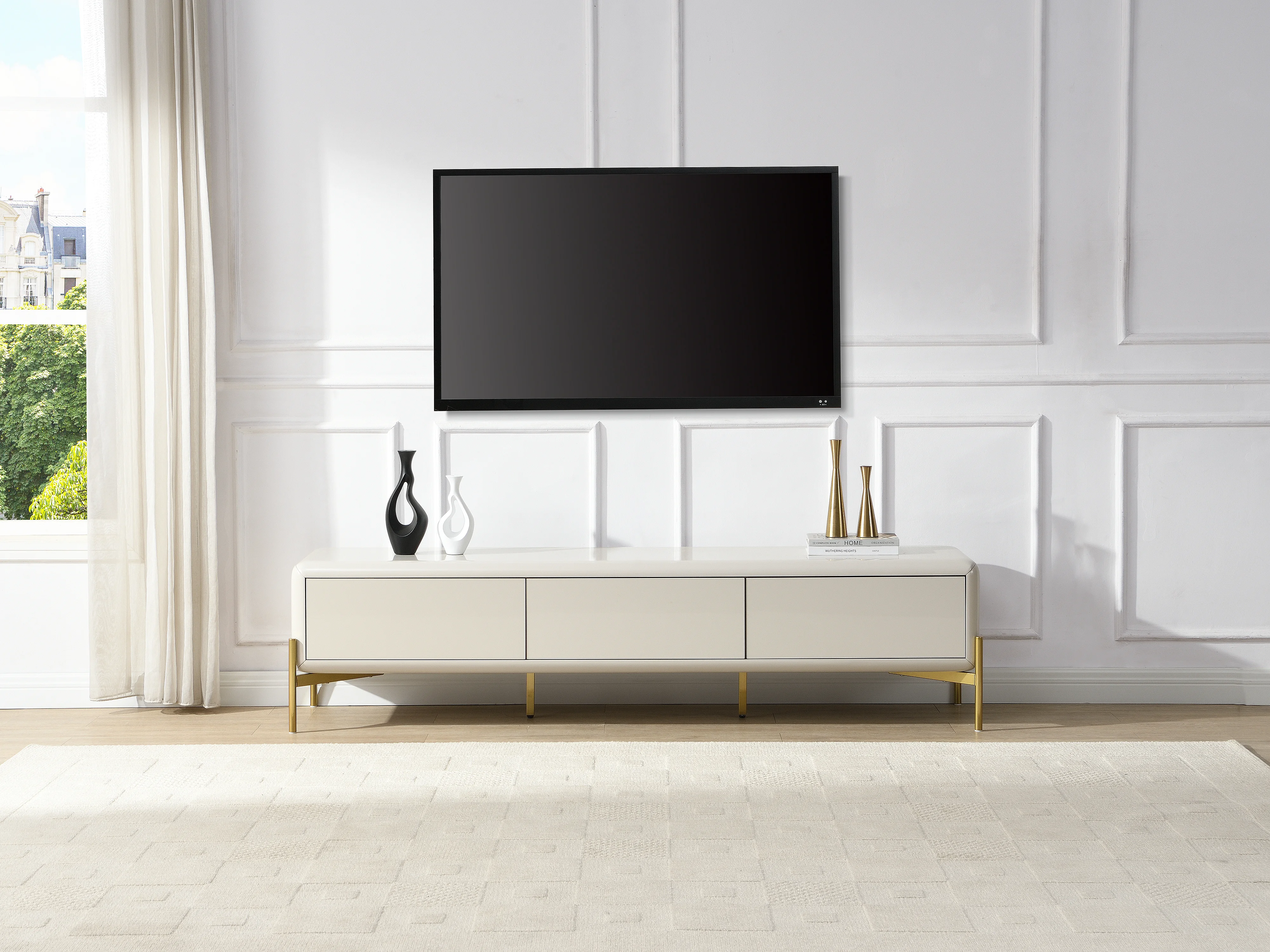 Meuble TV avec 3 tiroirs en MDF - Beige et doré - LYBAKA
