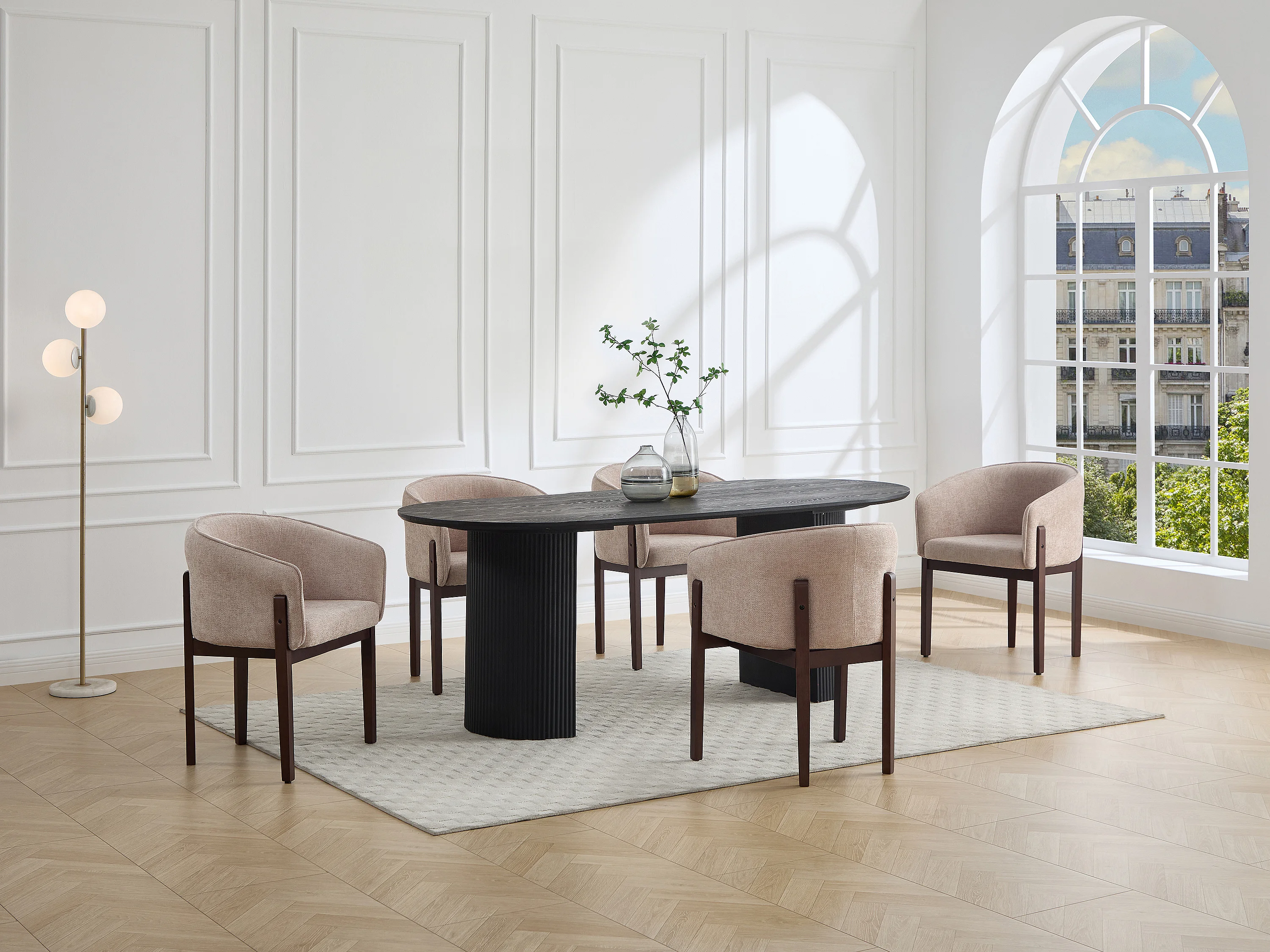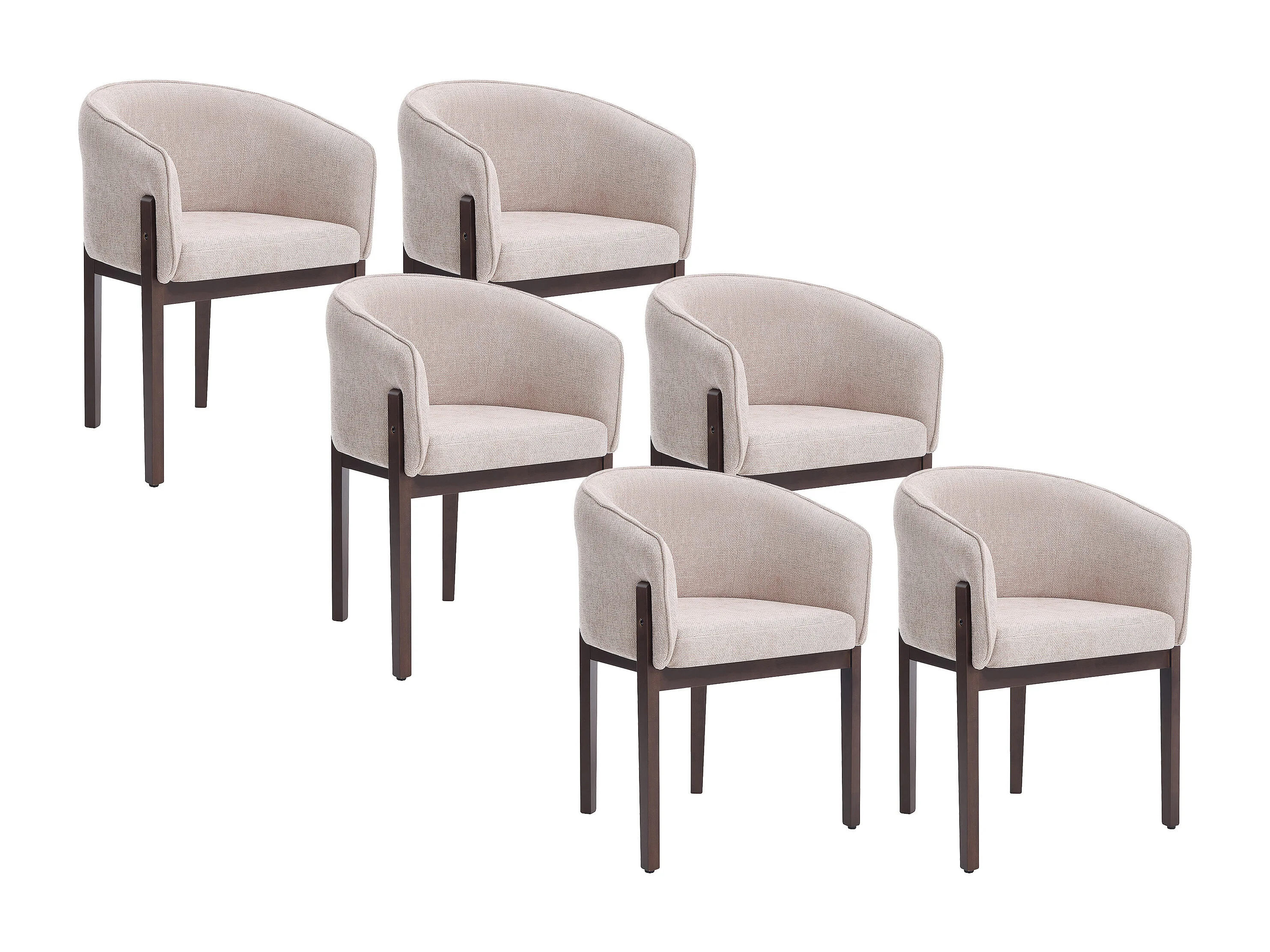 Lot de 6 chaises en tissu texturé et bois d'hévéa naturel foncé - Beige - LYLABA