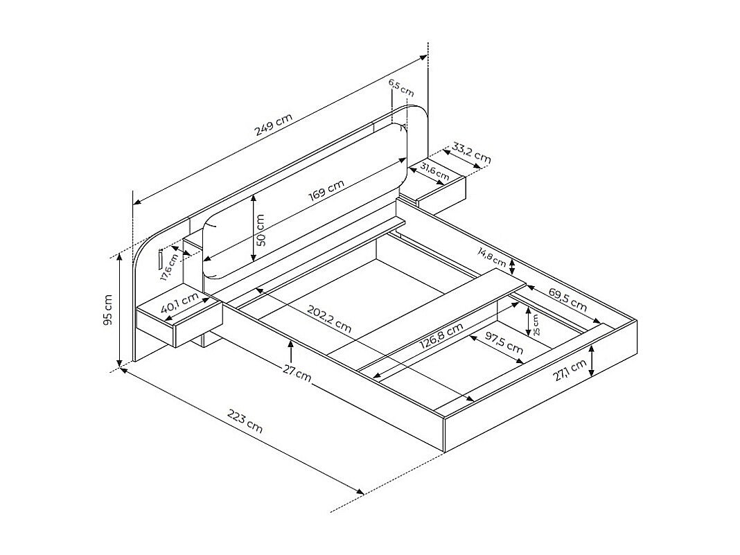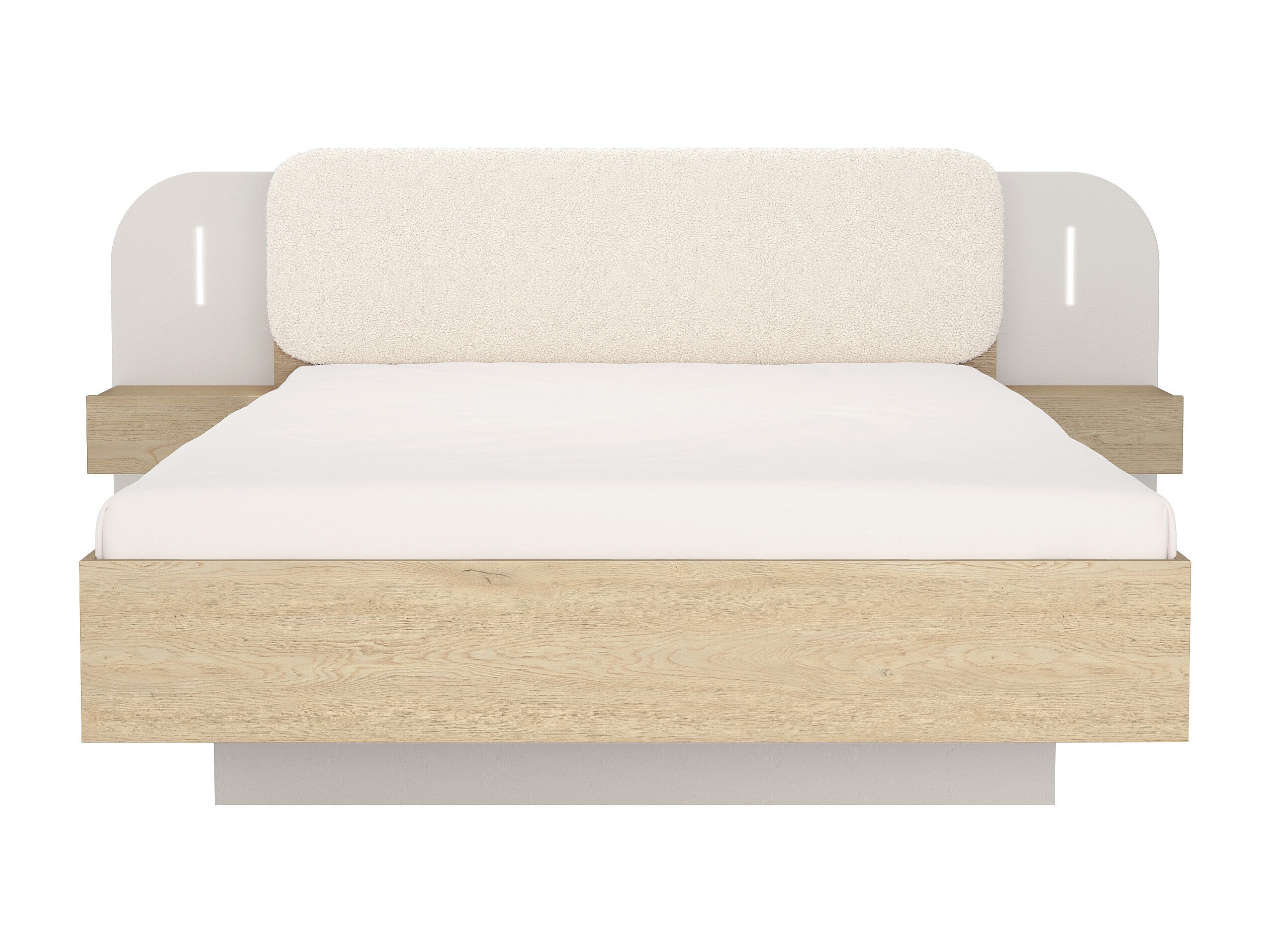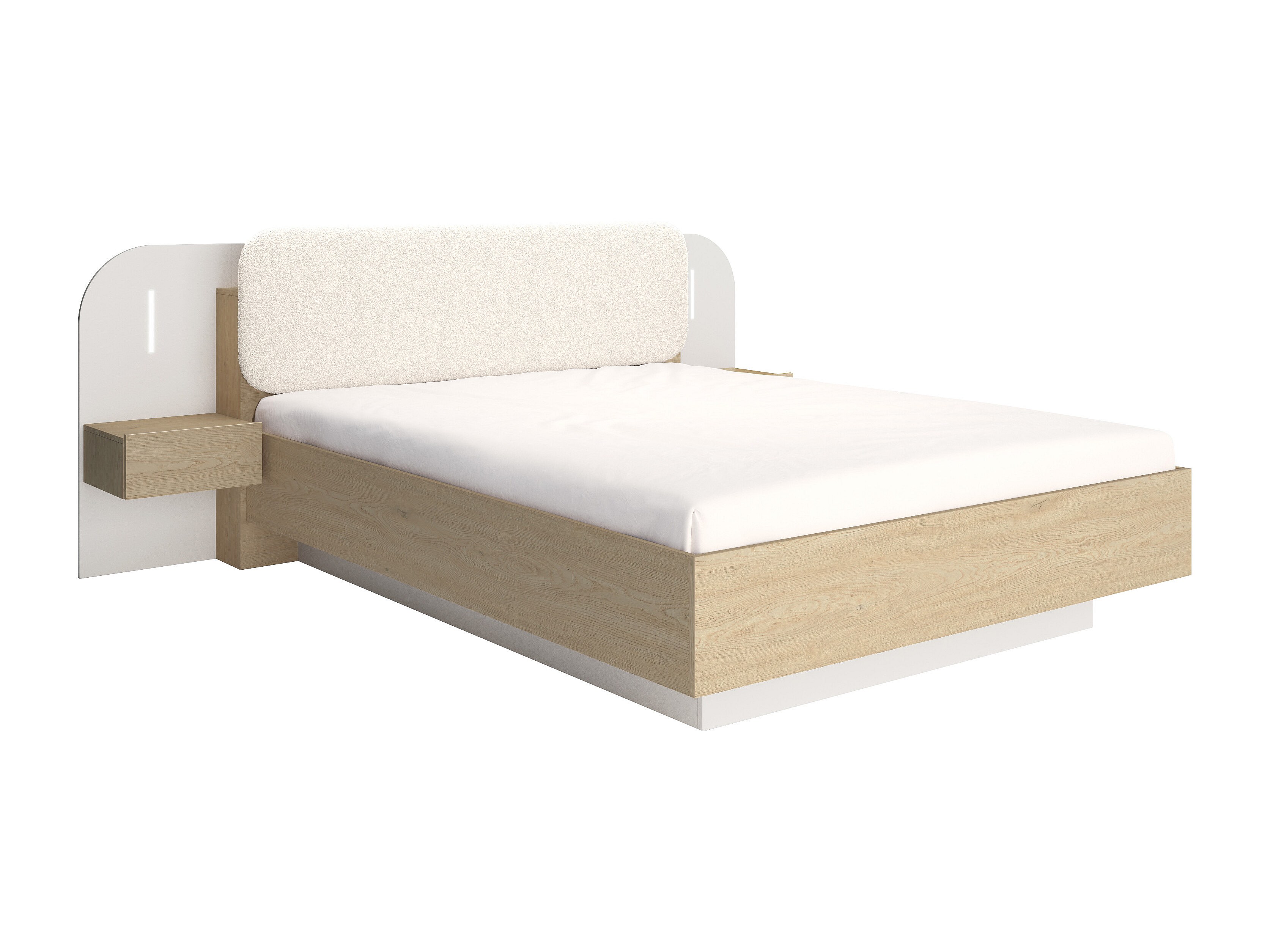 Lit avec chevets 160 x 200 cm - Avec LEDs - Coloris : Beige et naturel + Sommier + Matelas - LYORIMA