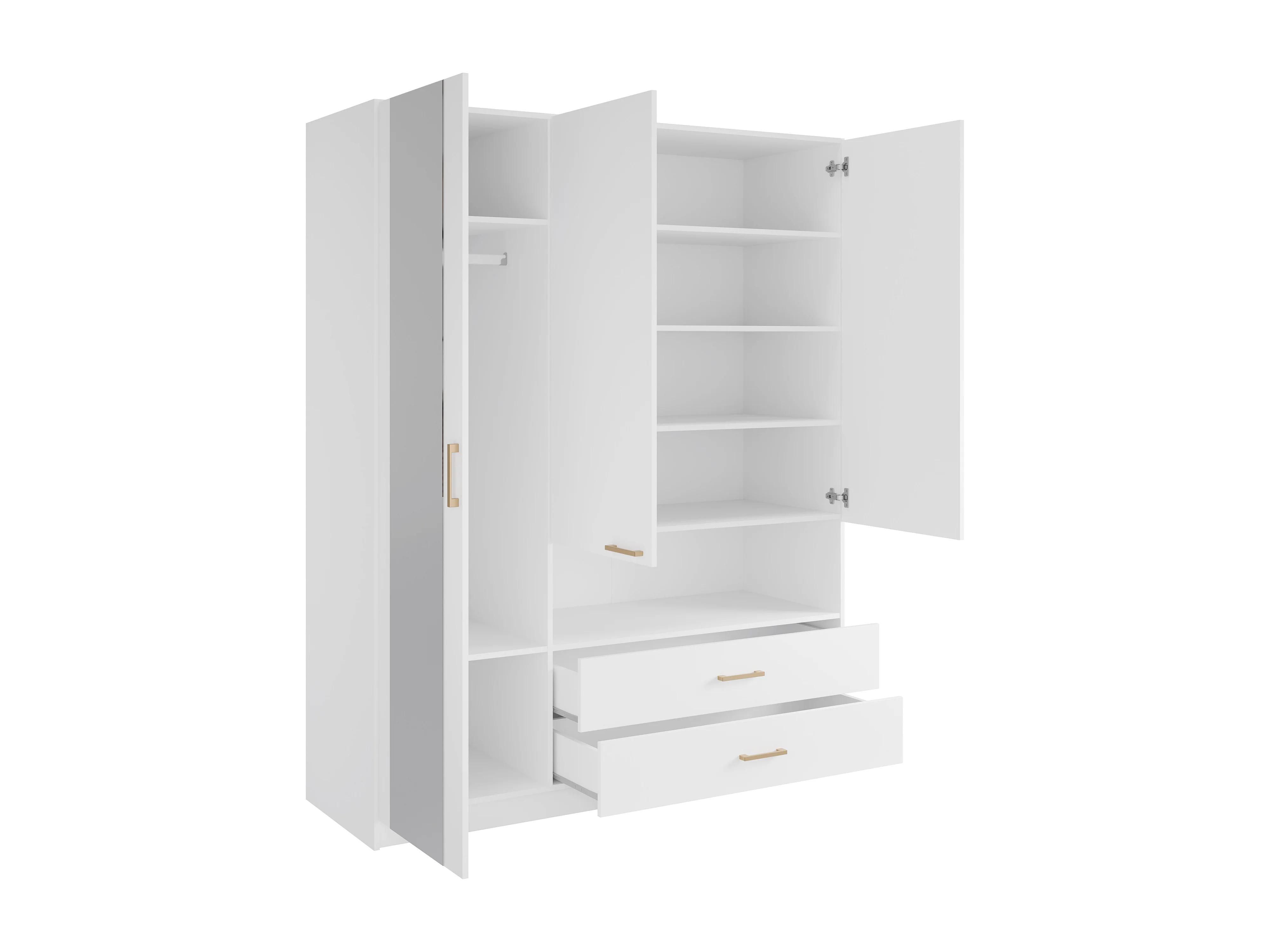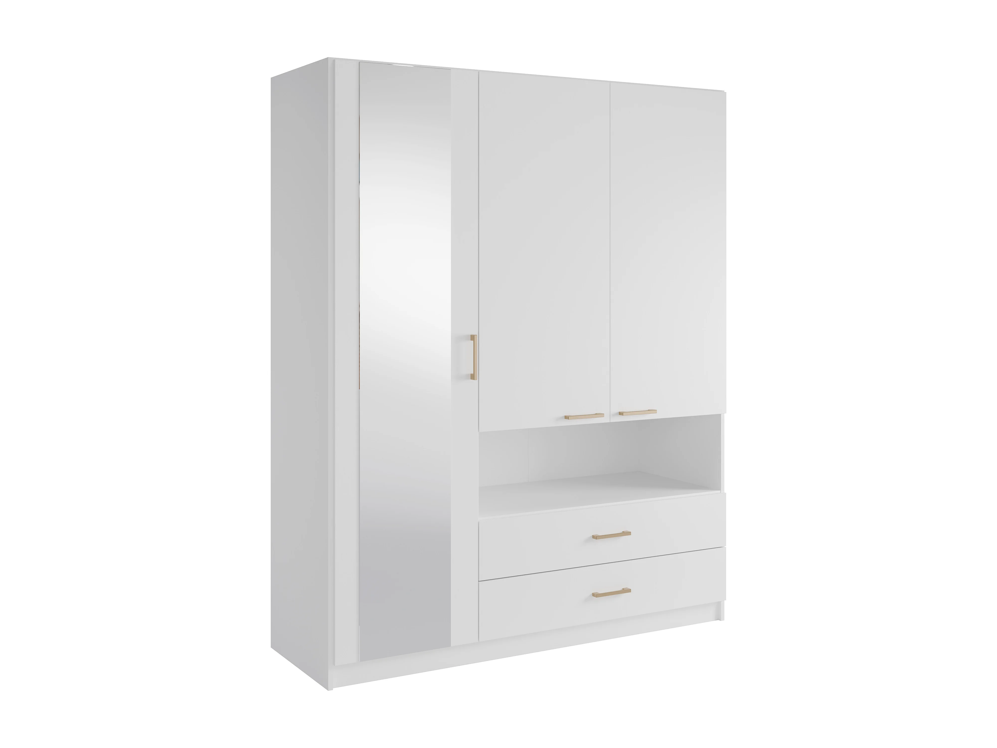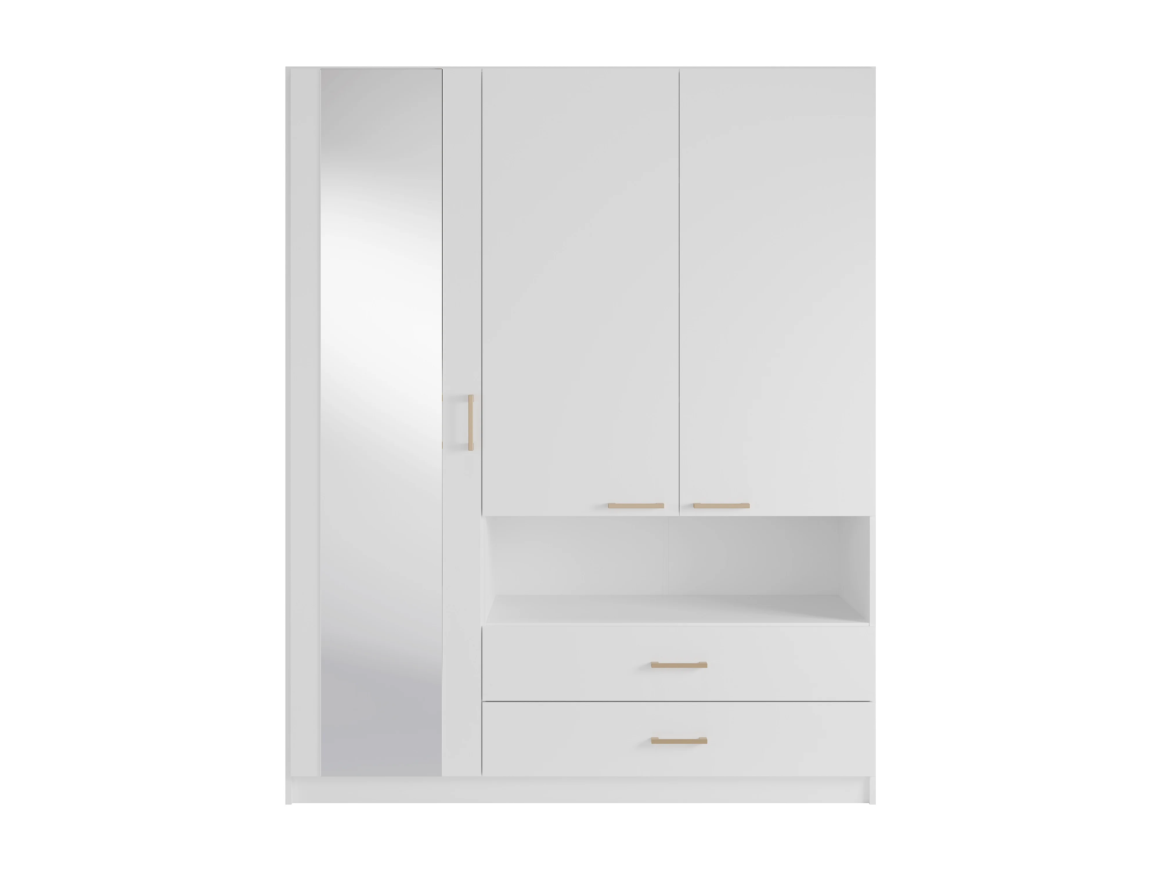 Armoire 3 portes, 2 tiroirs et 1 niche – Avec miroir – L160 cm – Blanc - LYRIANO