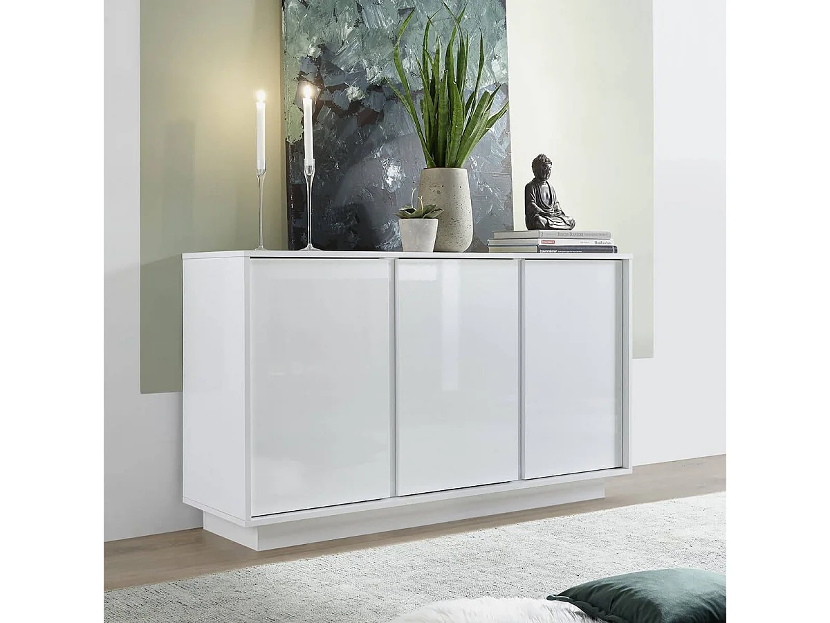 LYSIANE - Buffet 3 Portes Finition Blanc Laqué Brillant Weiss