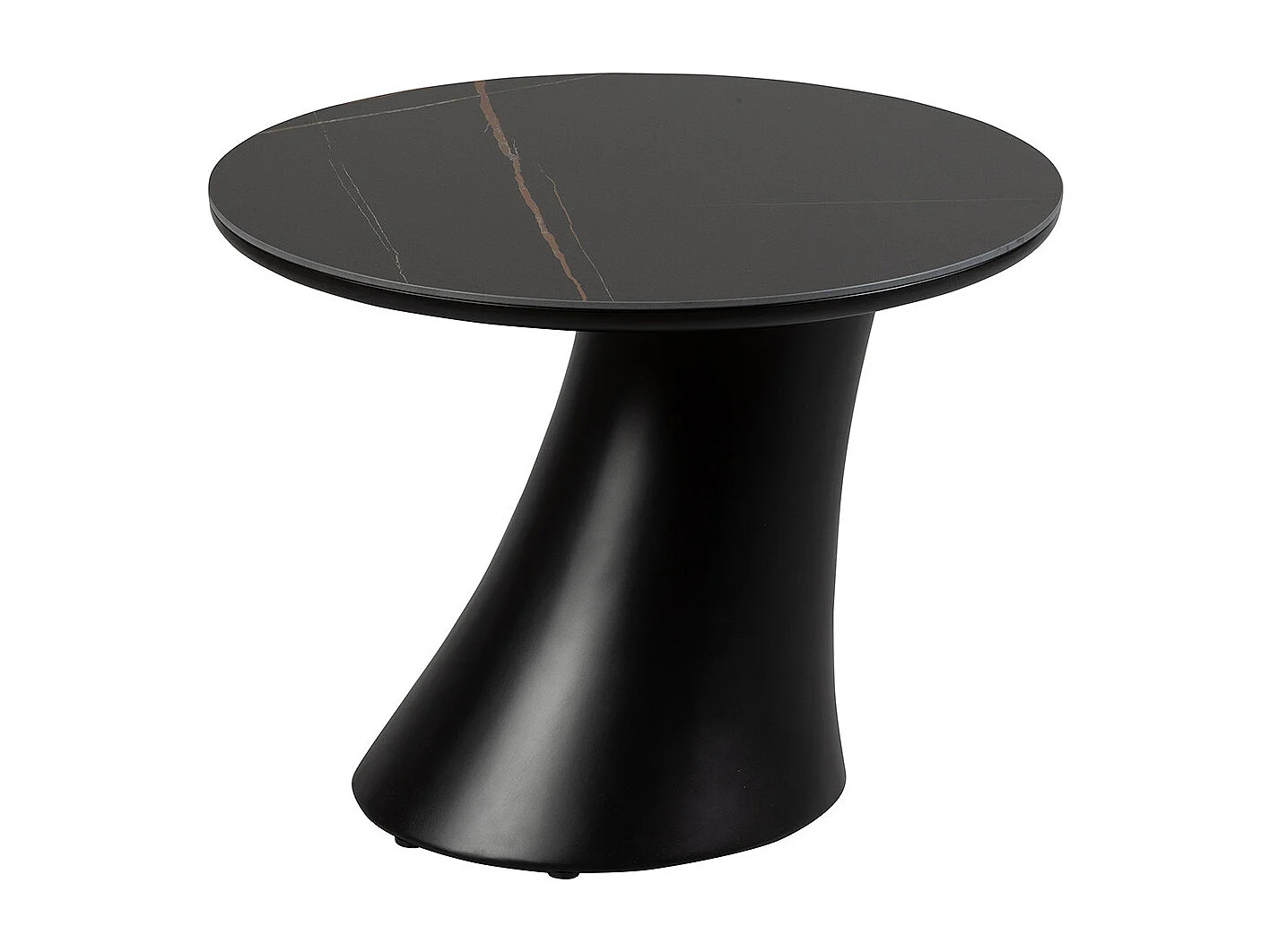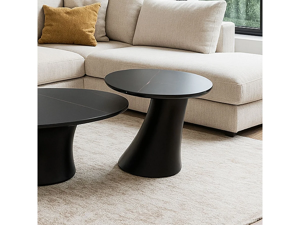MAALA - Bout de Canapé Noir Plateau Céramique Marbré Pied en ABS