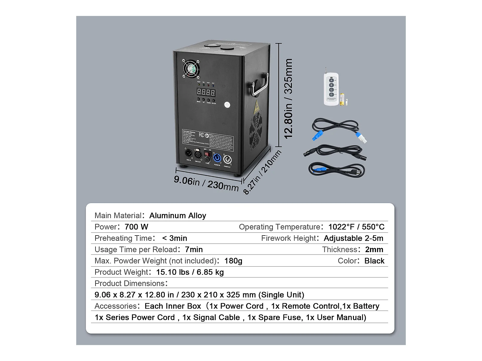 Machine à Étincelles Froides SucceBuy 700 W, 2 à 5 m pour DJ et Événements de Mariage