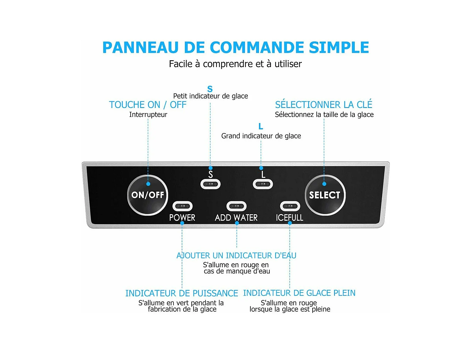Machine à glaçons de comptoir 12kg /24h portable 9 glaçons par 8 min avec réservoir 1,85l