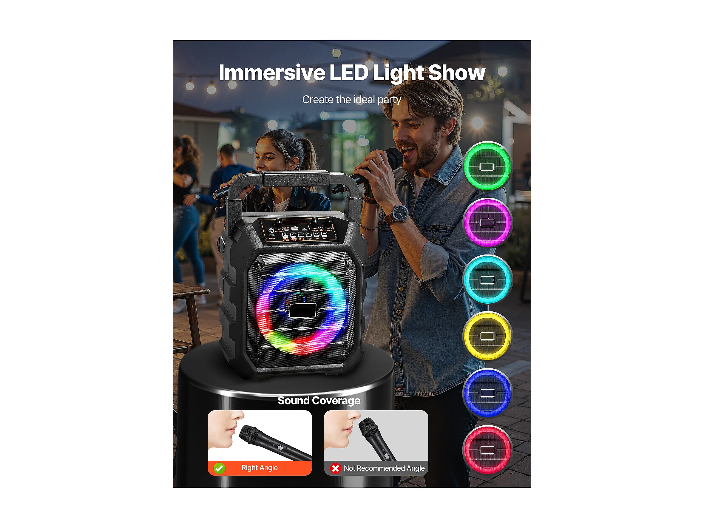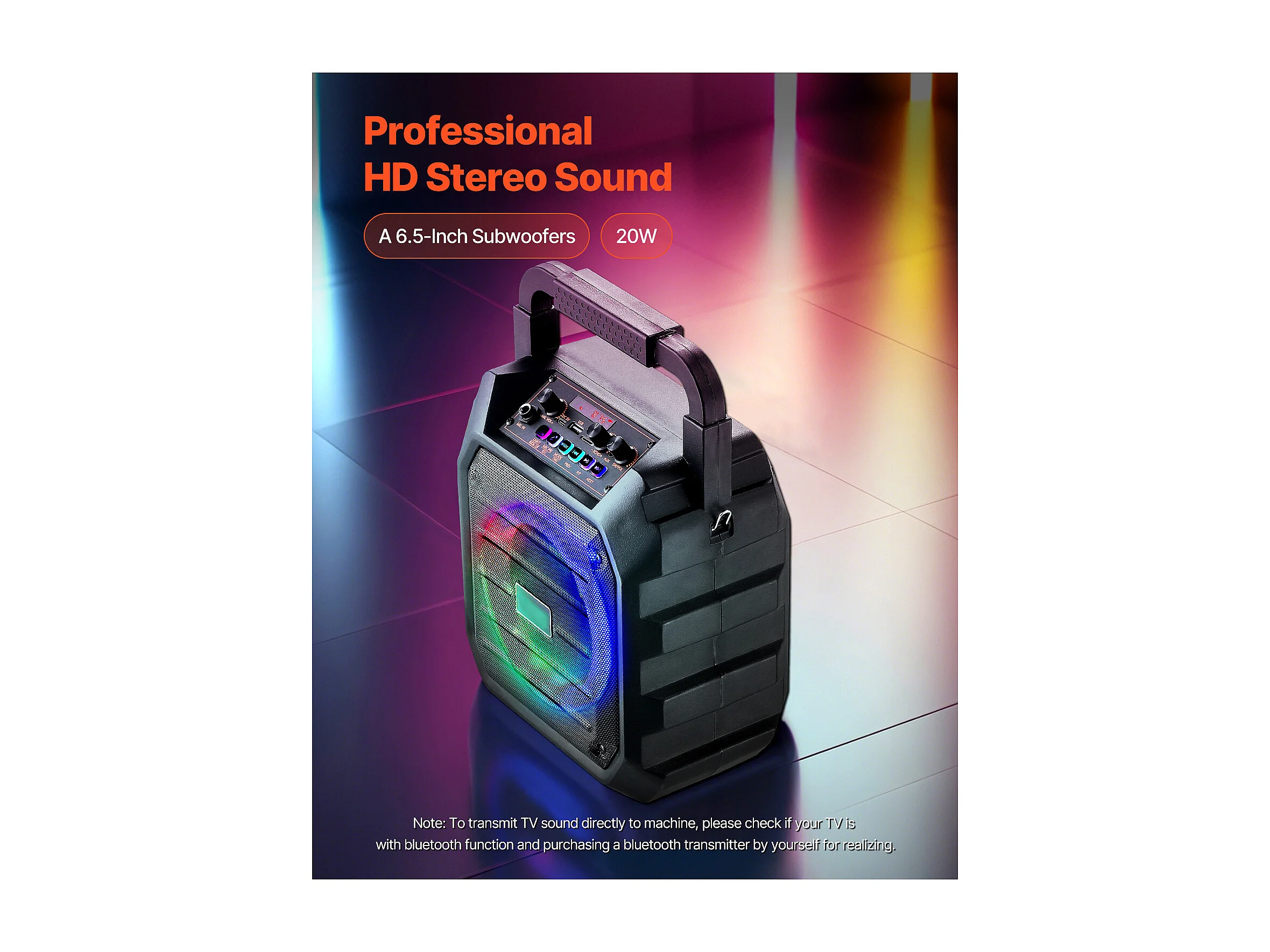 Machine de Karaoké SucceBuy pour Adultes, 20 W, Enceinte Bluetooth Portable de 6,5 Pouces avec 2 Microphones Sans Fil, Lumière LED, Fonction TWS, Poignée