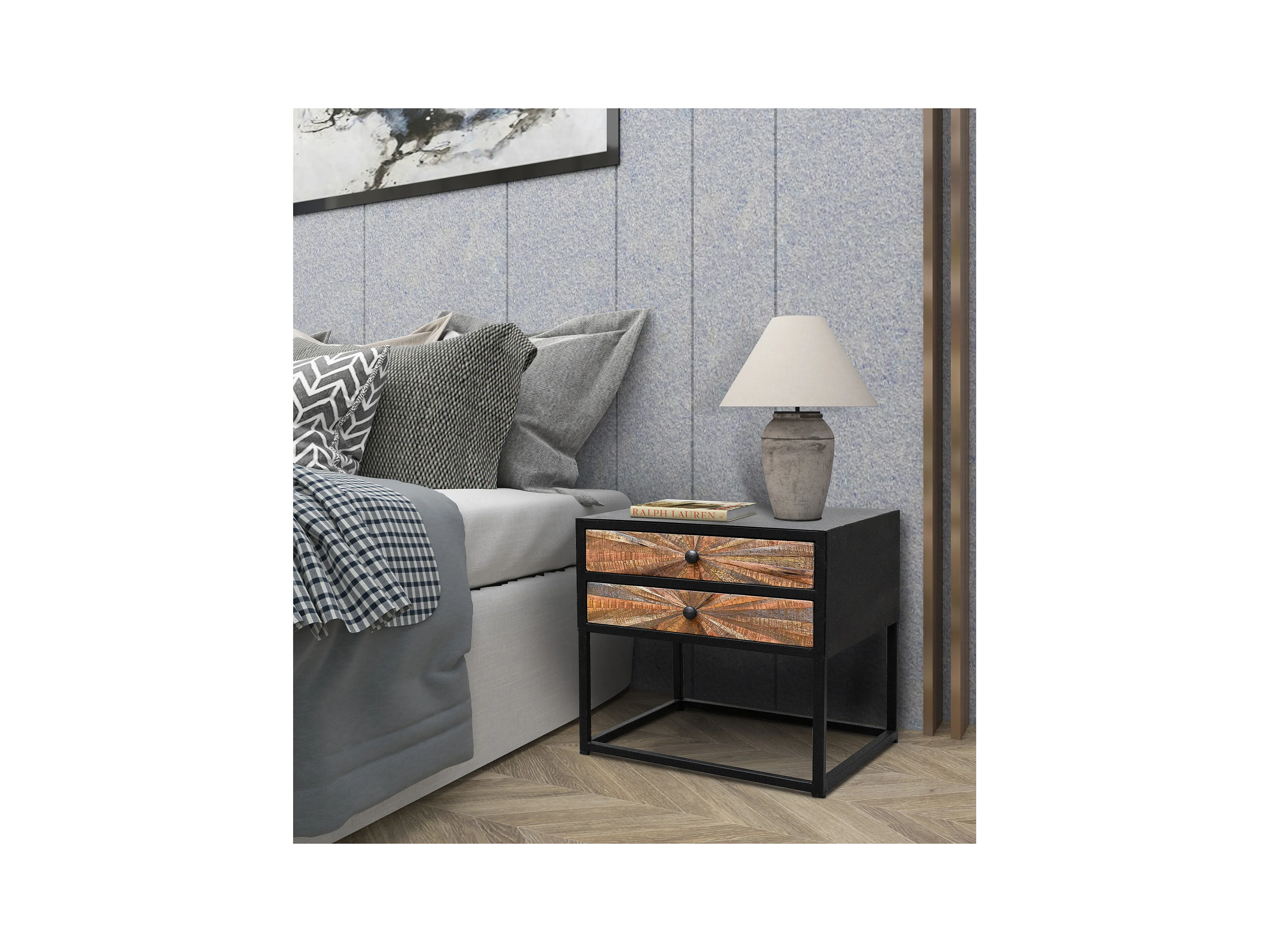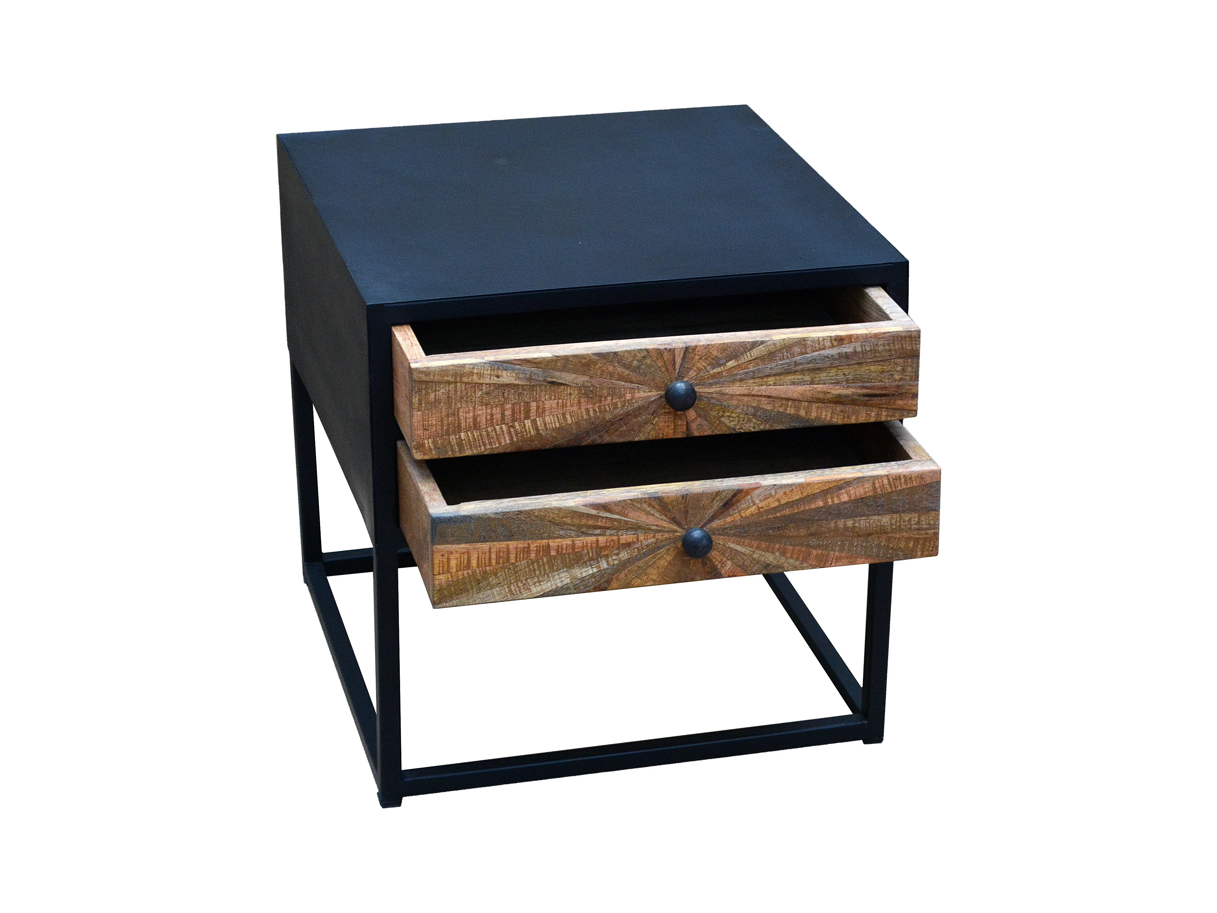 Madira | Table de chevet avec 2 tiroirs en bois de manguier noir