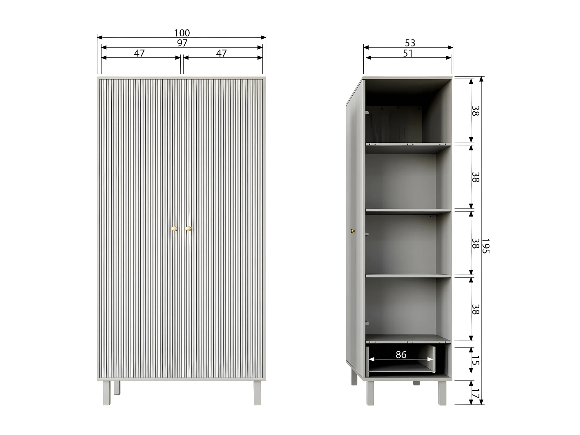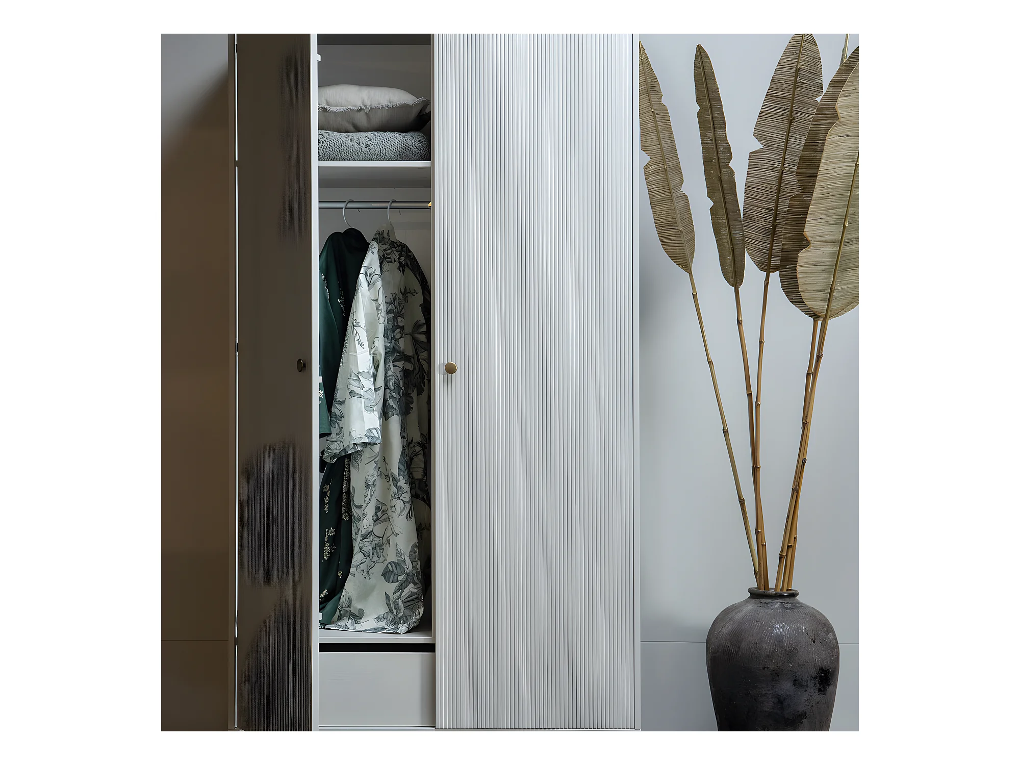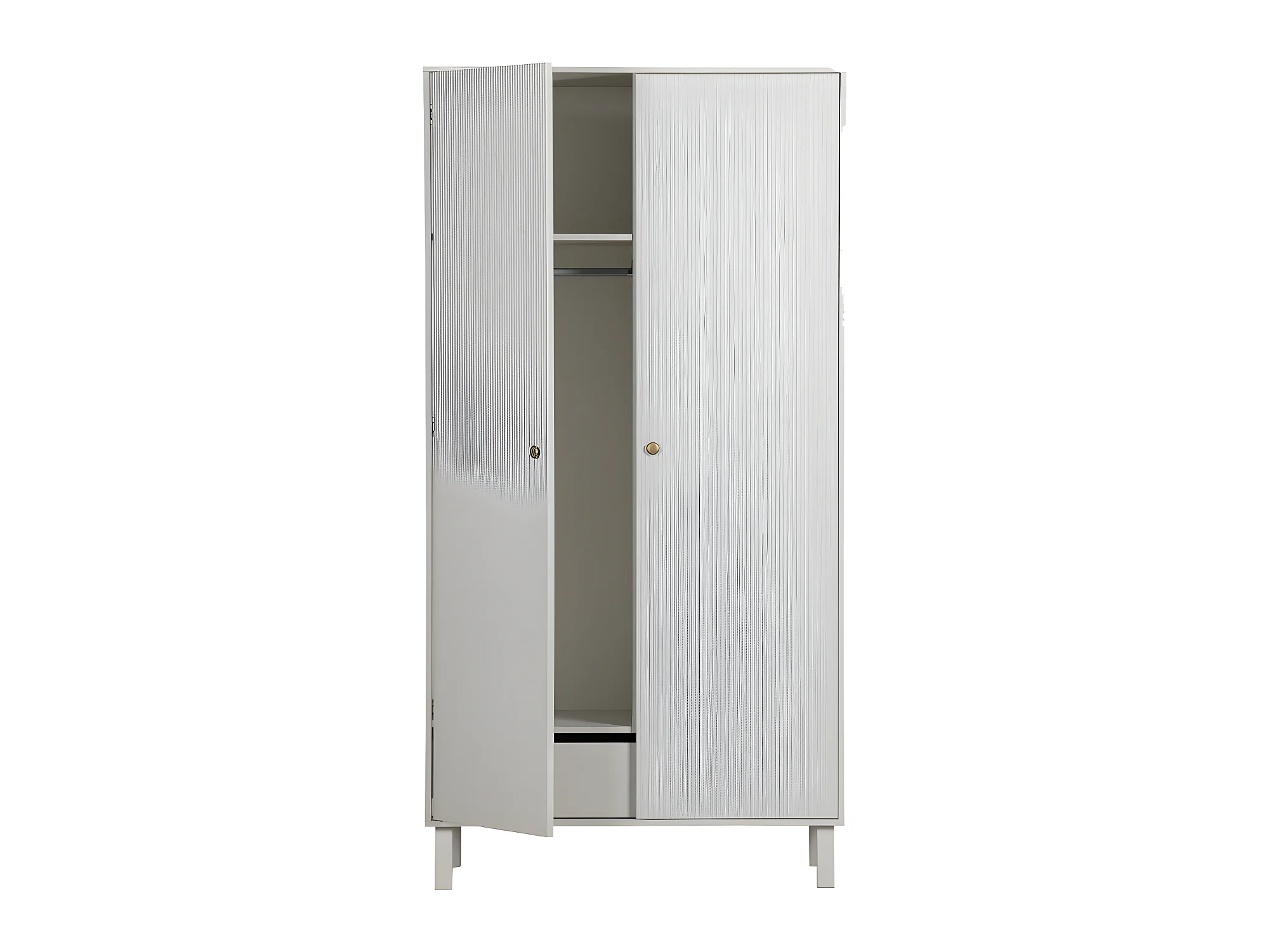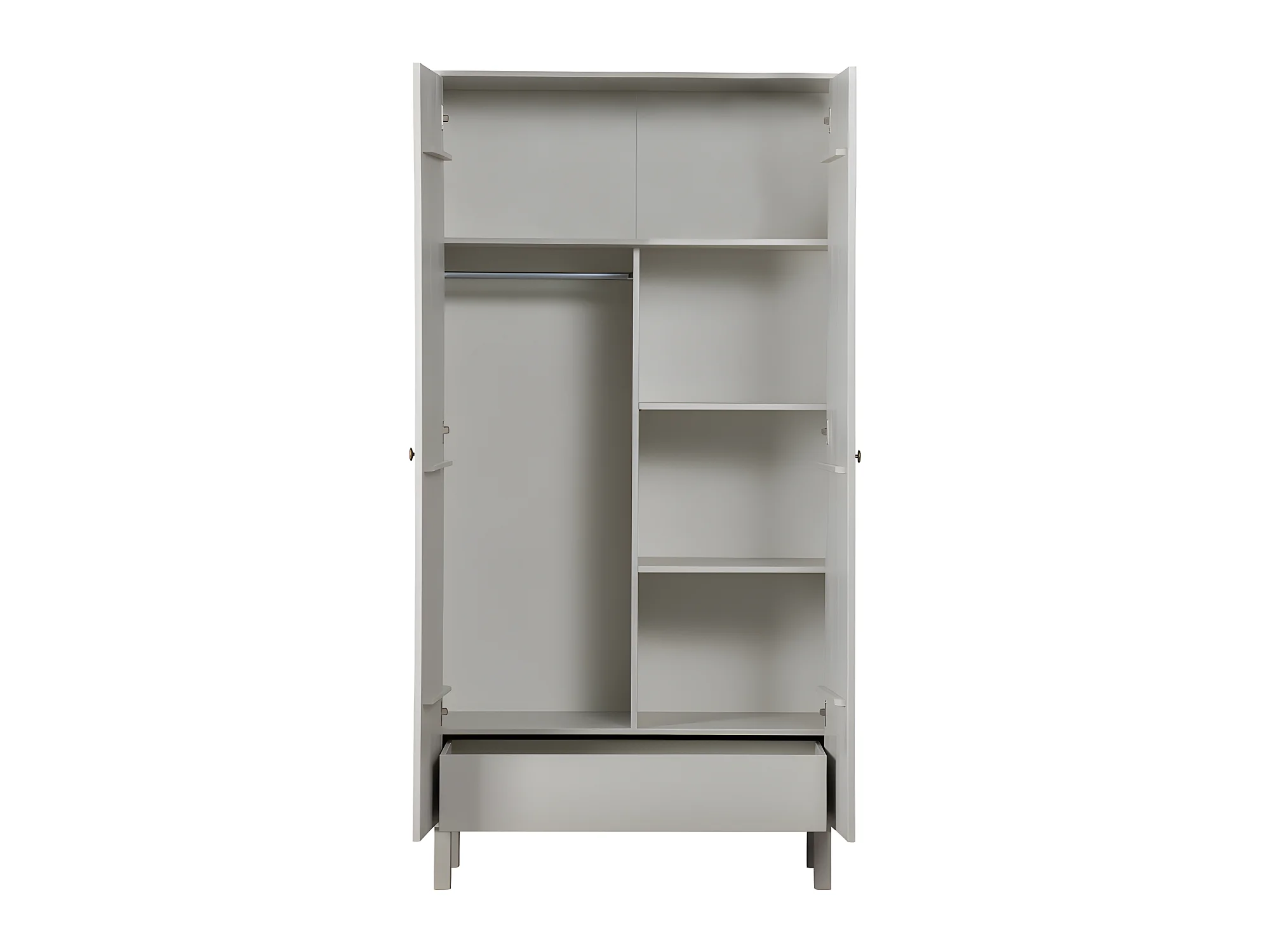 Madu - Armoire 2 portes 1 tiroir en bois H195cm - Gris clair