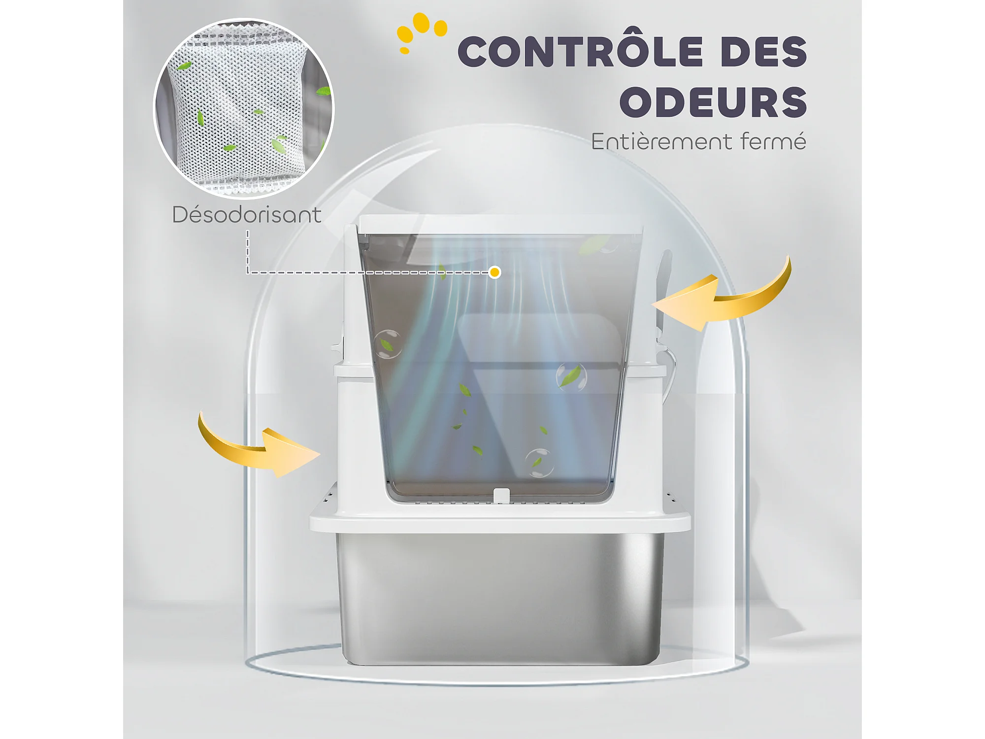 Maison de toilette bac à litière fermé acier inox - pelle, couvercle amovible, porte, anti-fuite - gris clair