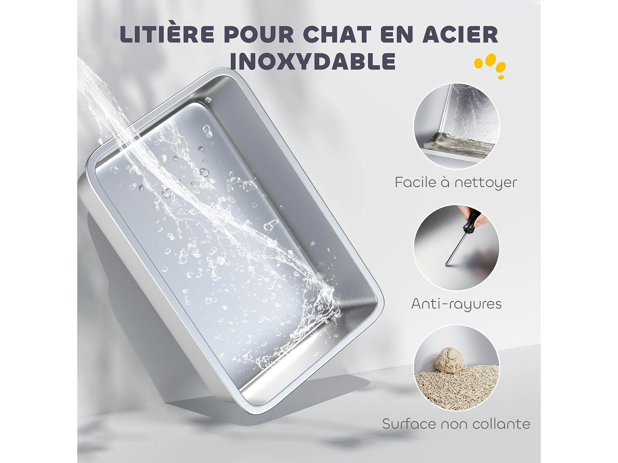 Toilette pour Chat, SucceBuy Bac à Litière pour Chat XL, 15.24 CM de Profondeur, Sans Odeur, en Acier Inoxydable avec Repose-pieds