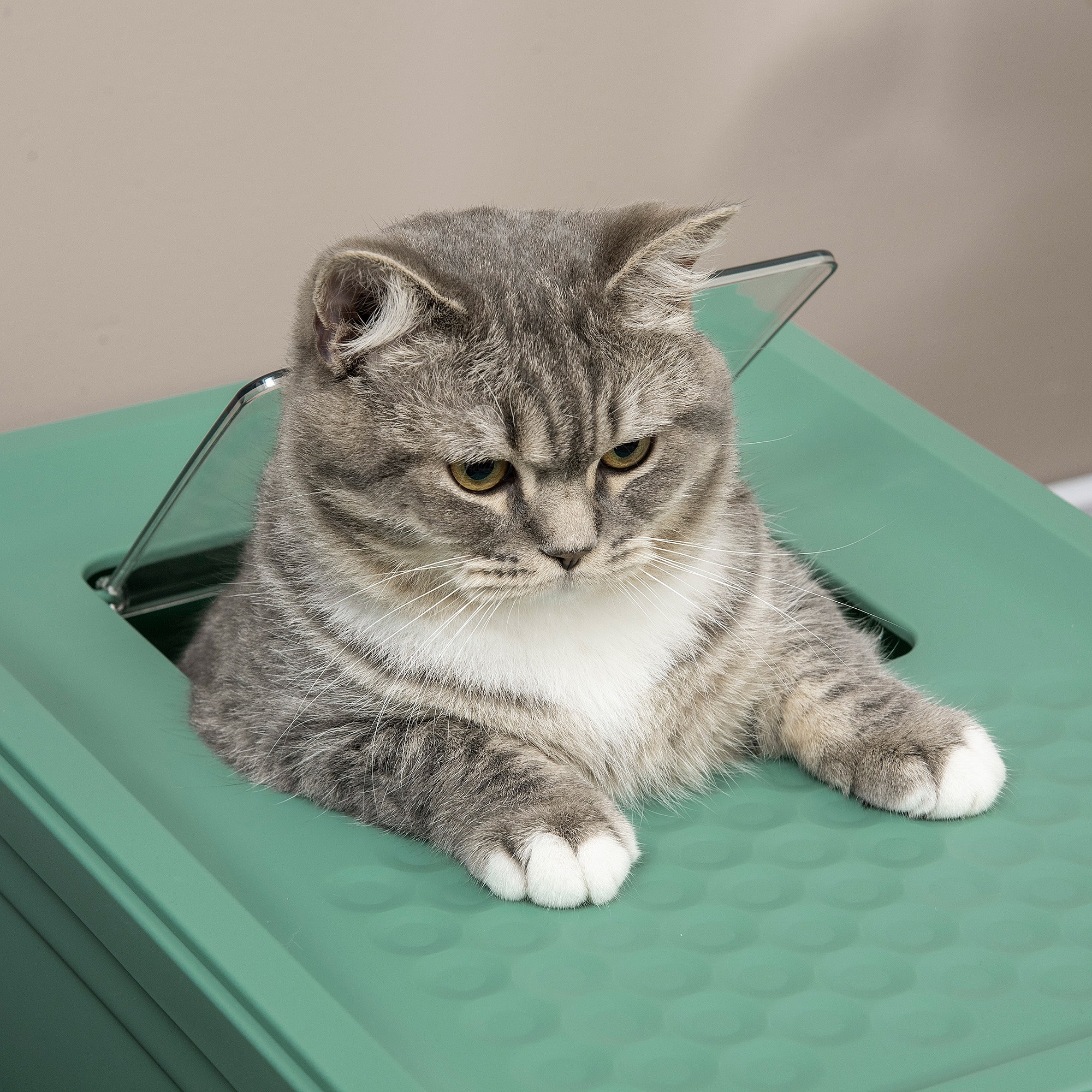 Litière pour Chat "Toilette" 57cm Vert & Anthracite
