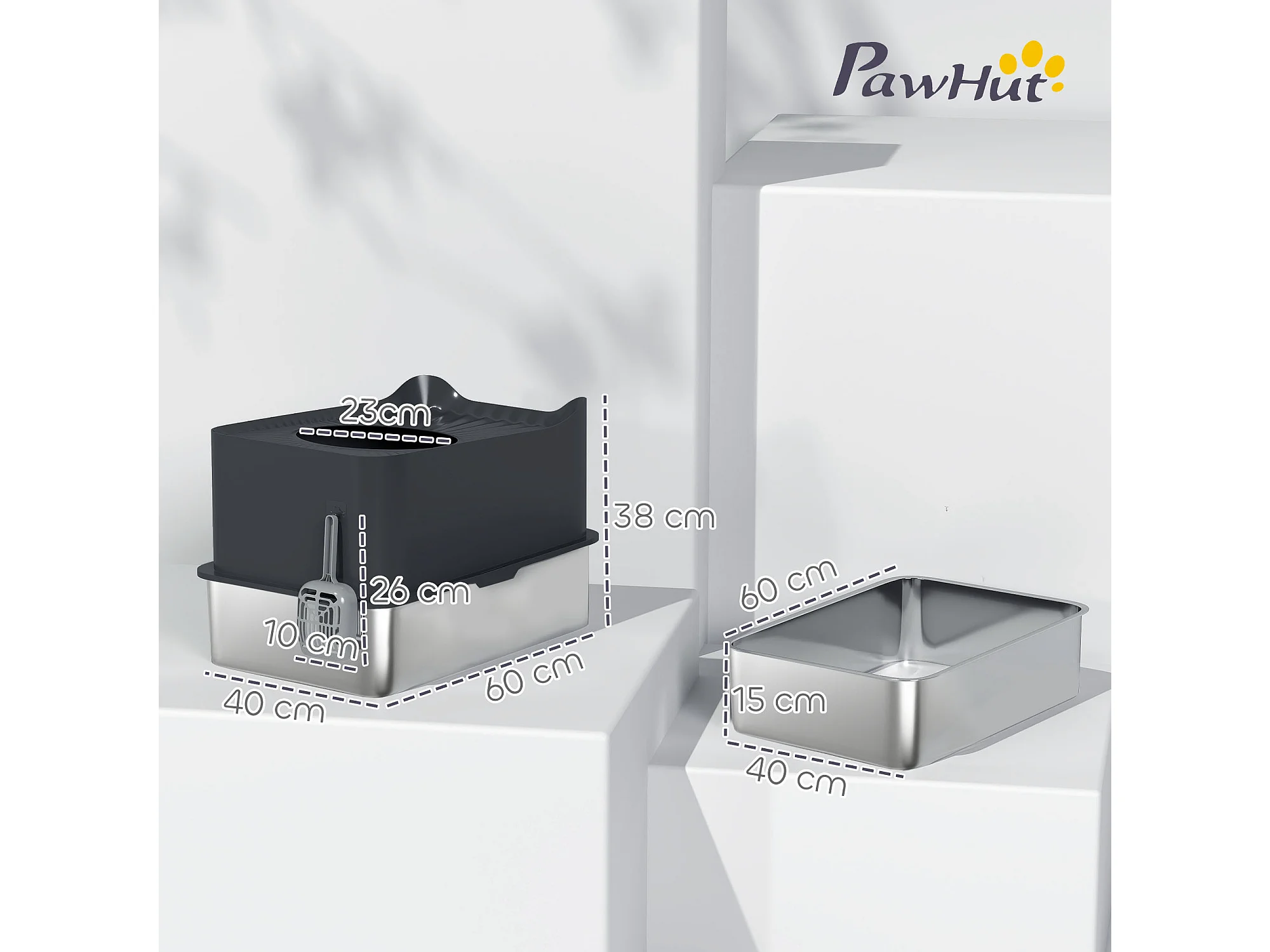 Maison de toilette XL 65L design - bac à litière grande taille 60 x 40 x 38 cm - acier inox ABS noir