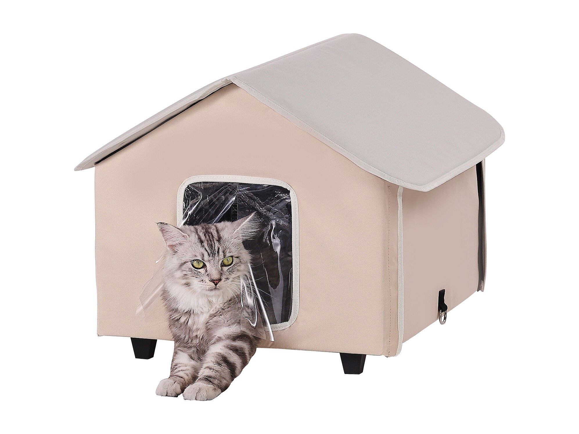 Maison Niche pour Chat, SucceBuy Niche Surélevée et Chauffante pour Chat avec Coussin Chauffant, Marron (Moyen)