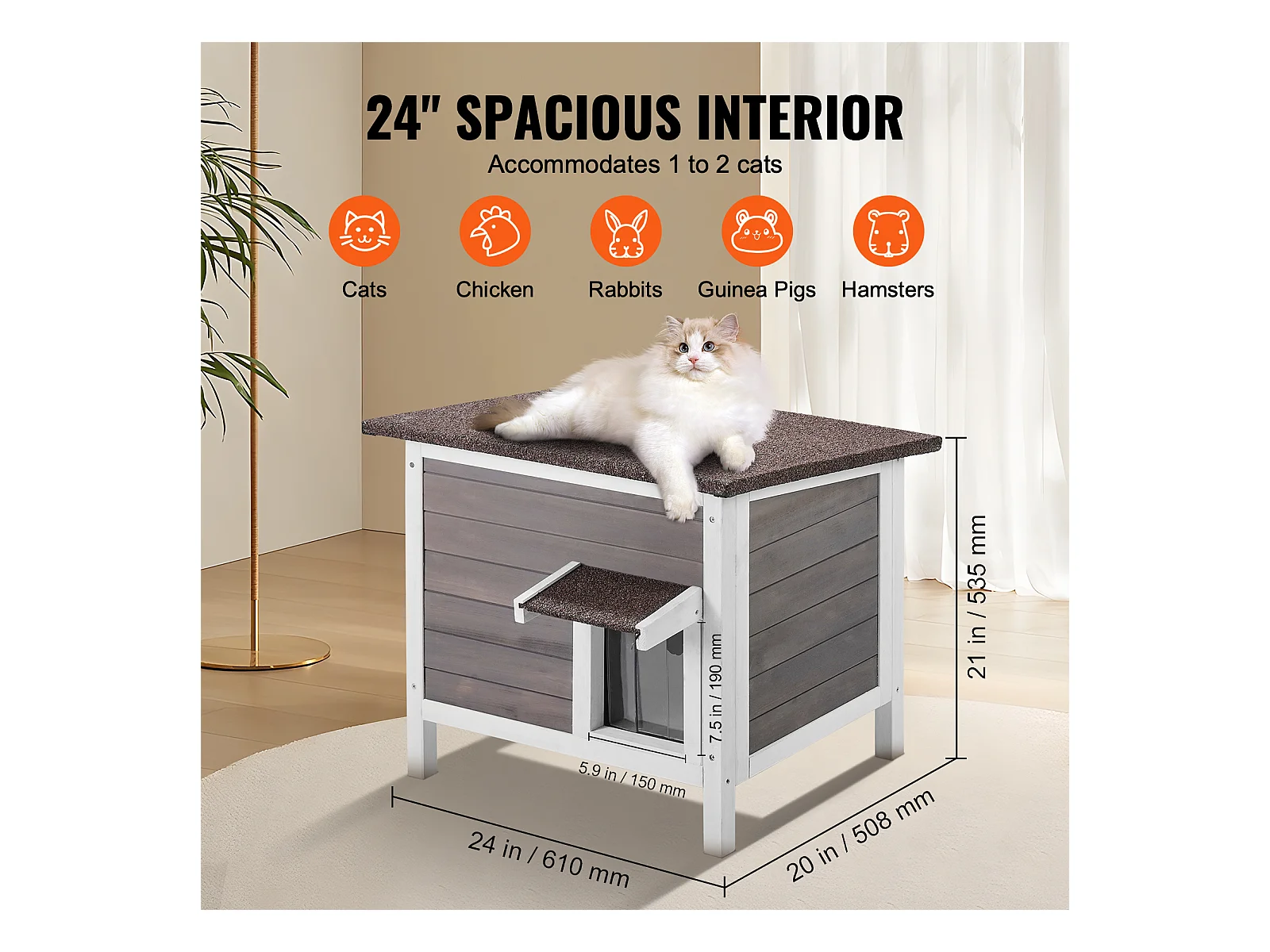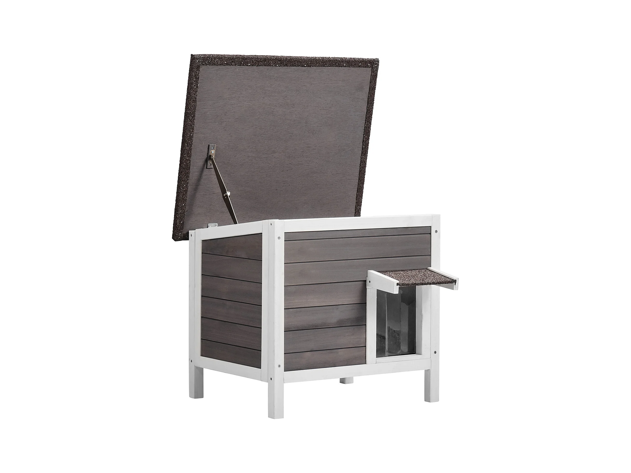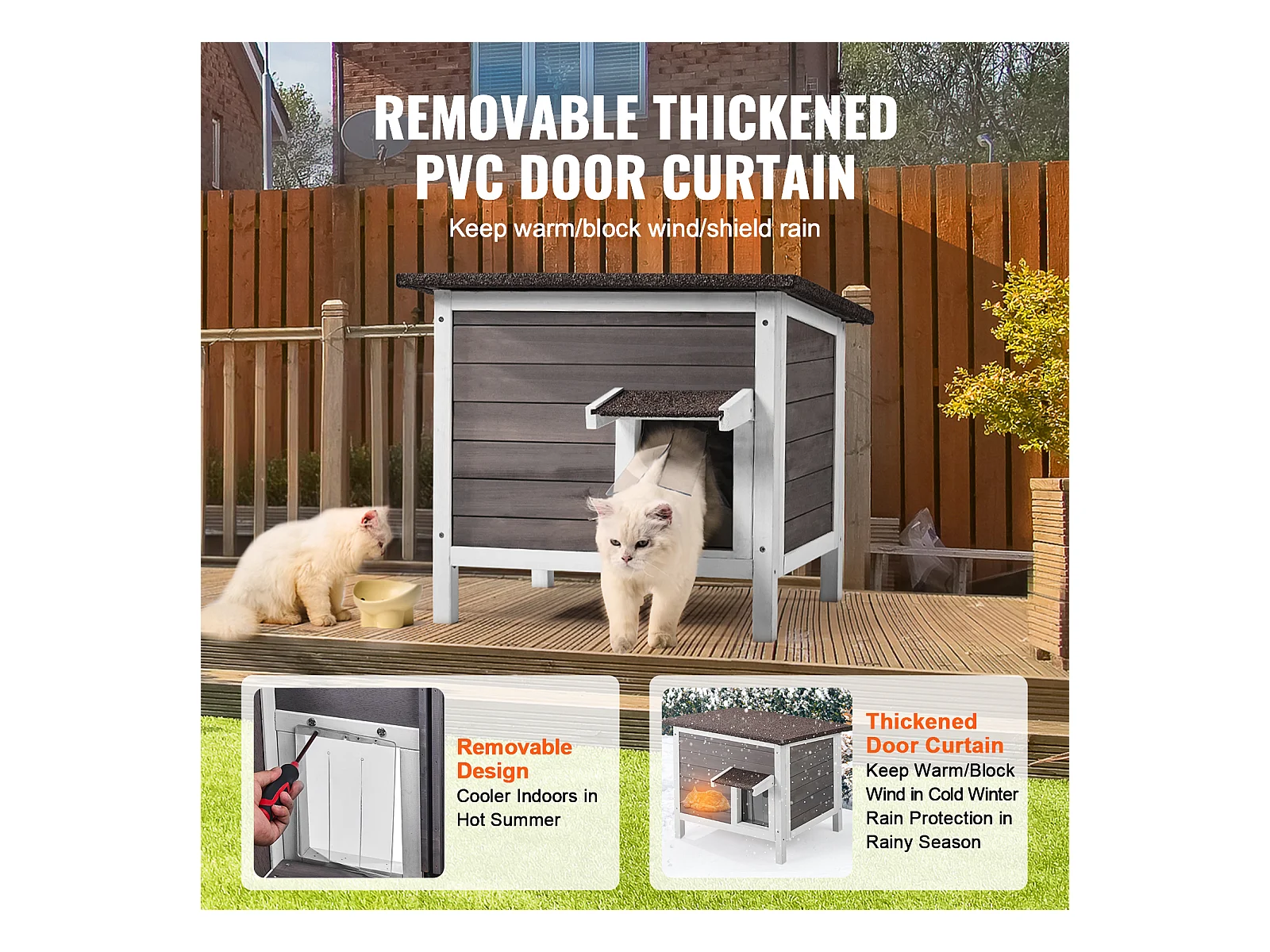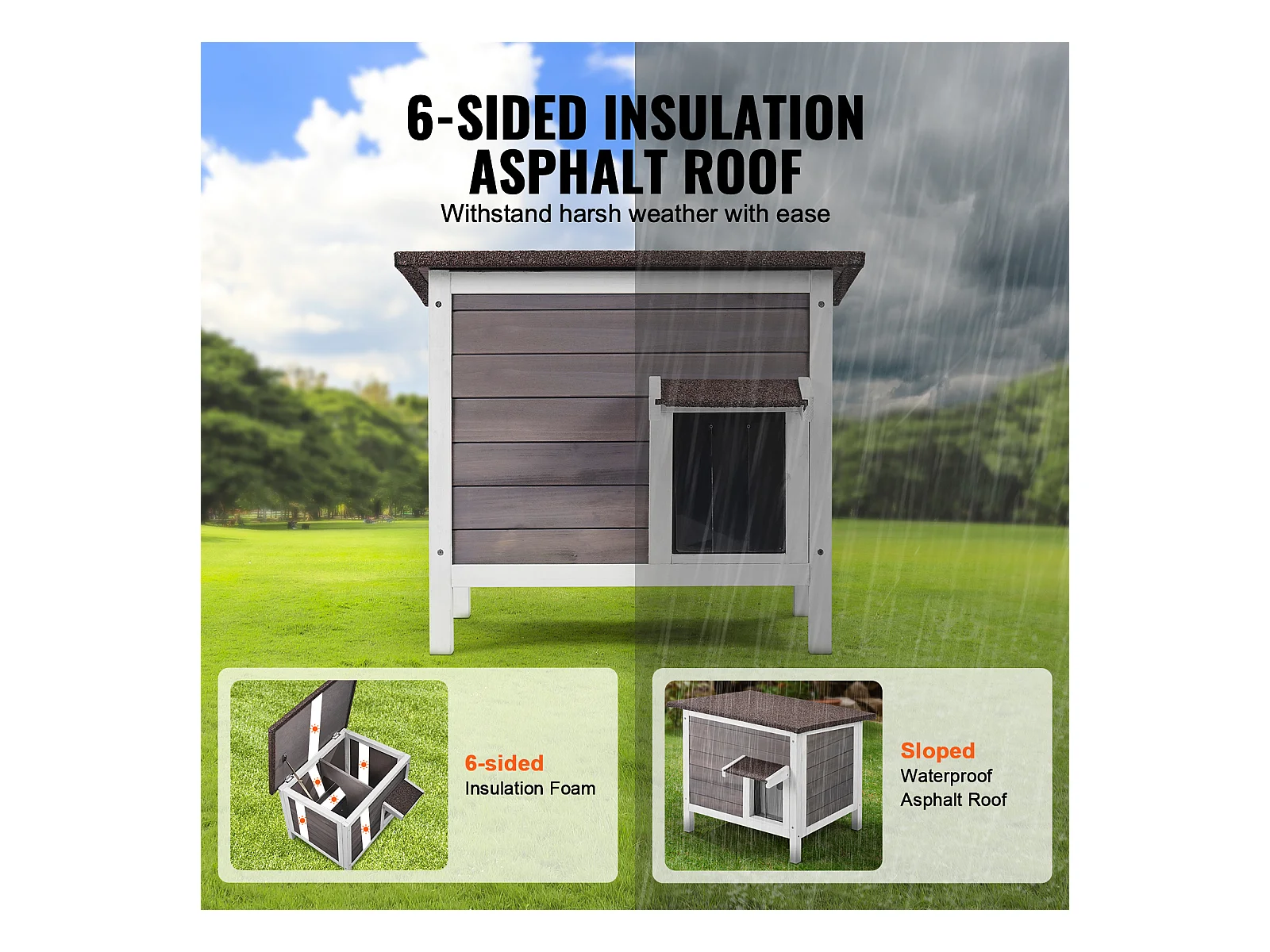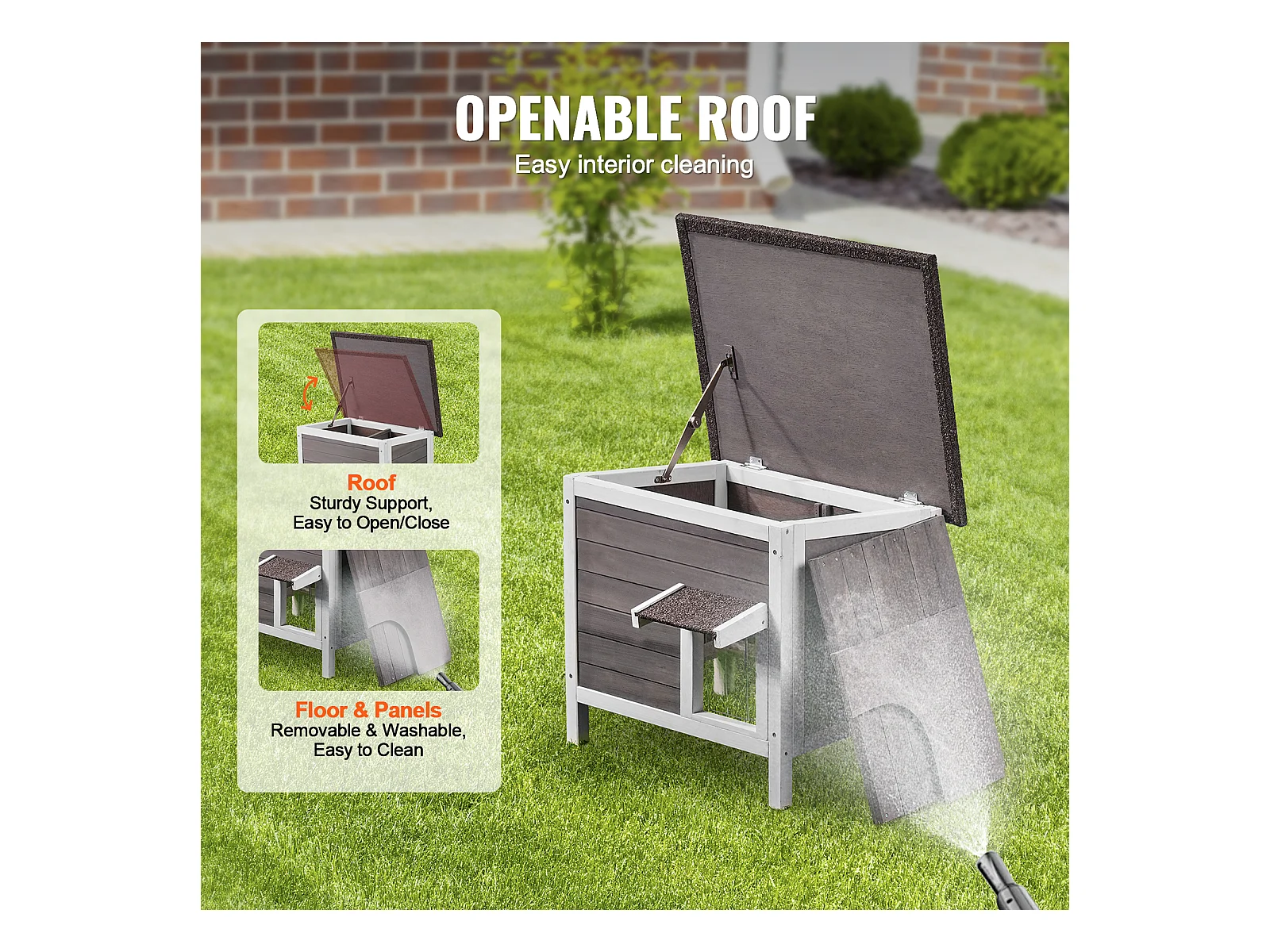 Maison pour Chat, SucceBuy Outdoor Cat Shelter - Un Abri en Bois pour Chats Sauvages, avec Toit et Portes Recouvertes de PVC