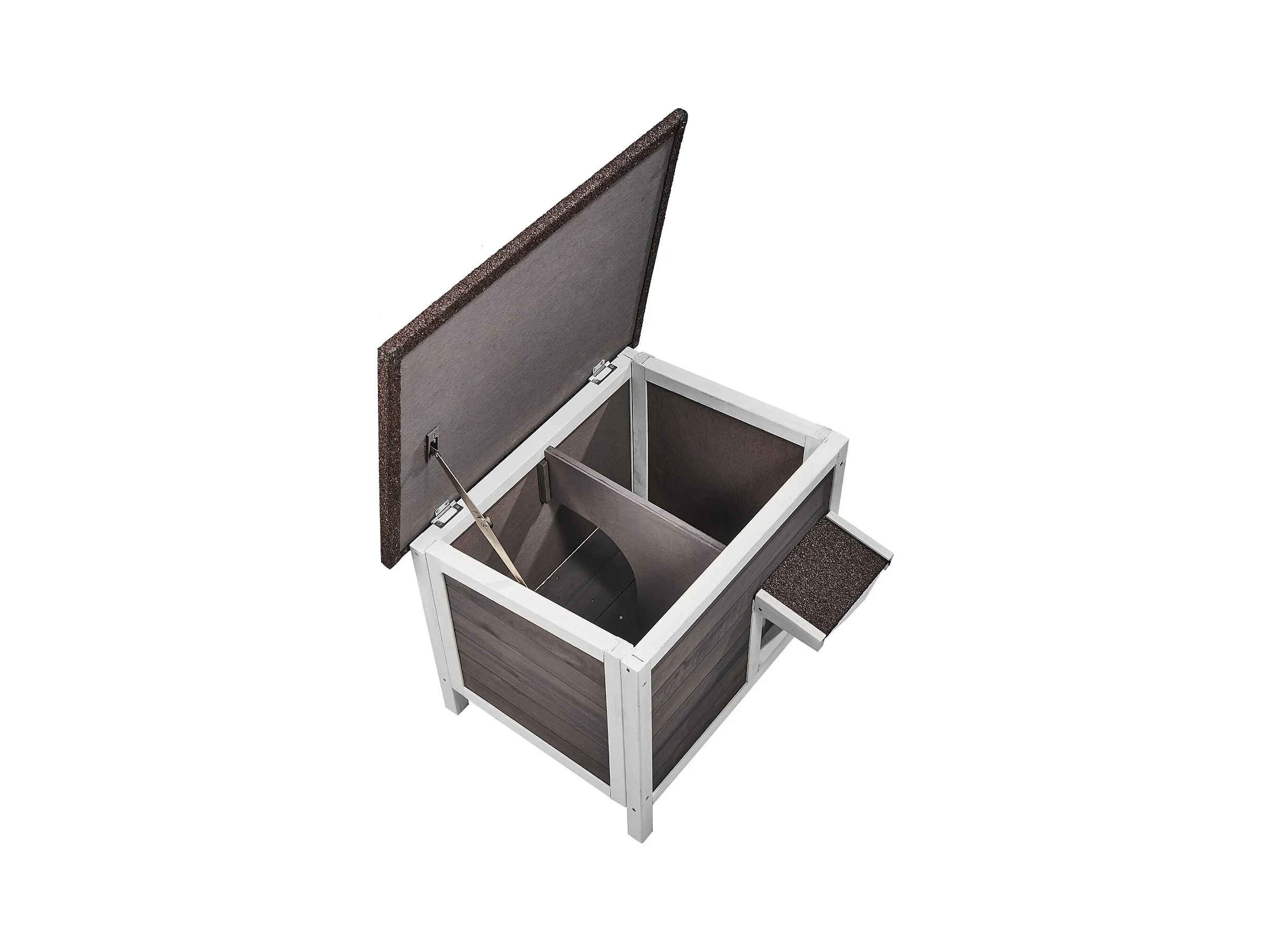 Maison de toilette chat porte battante et haute pelle PP gris blanc