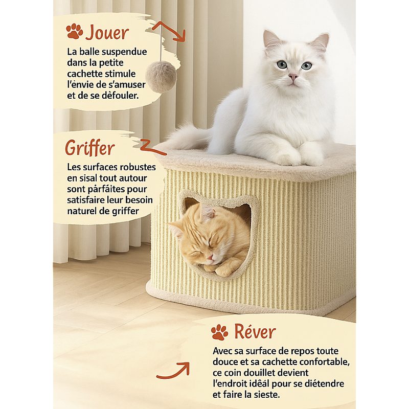 Maison pour chats avec griffoirs en sisal Beige 40x40x27cm