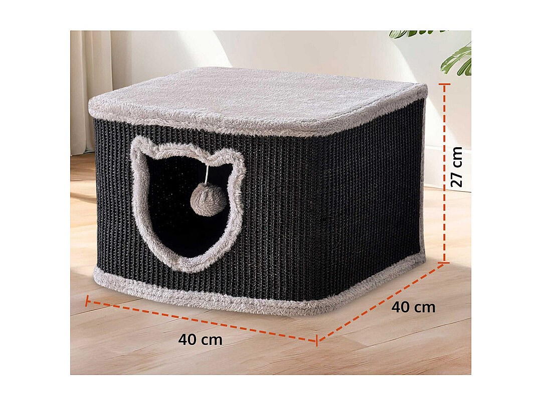 Maison pour chats avec griffoirs en sisal Noir 40x40x27cm