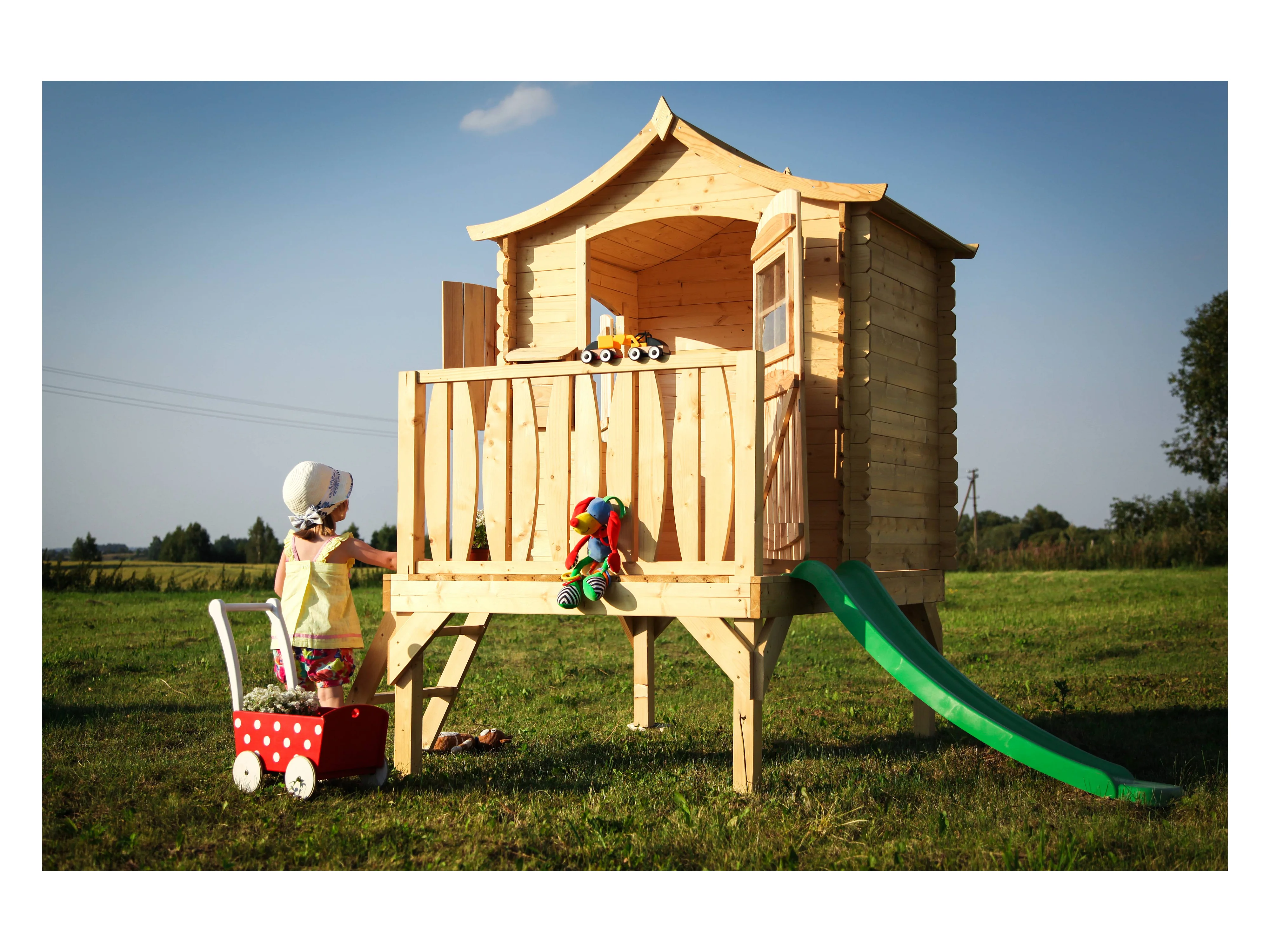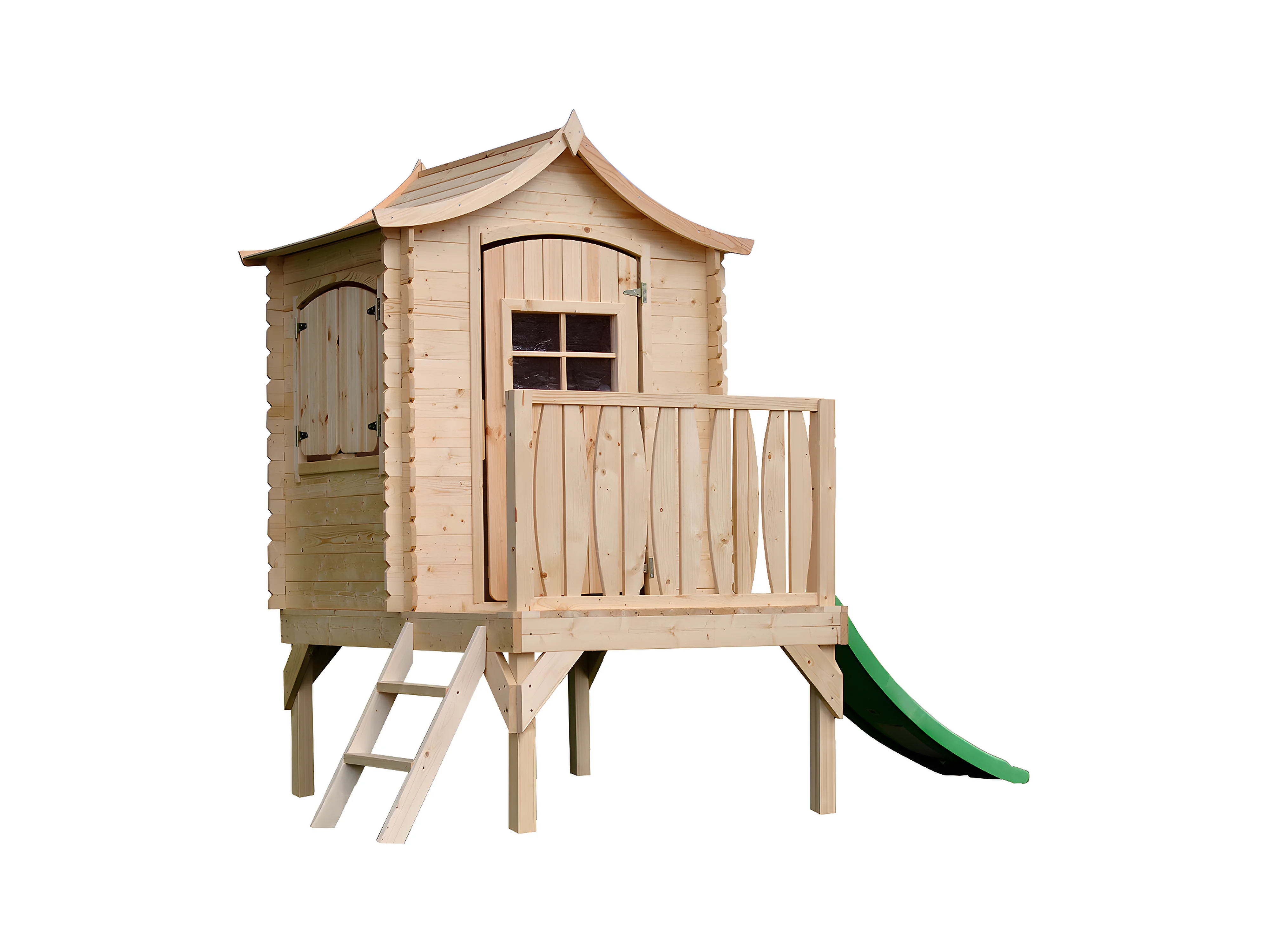 Maisonnette en bois avec toboggan - 112x146xH212cm/1.1m2 - Timbela M550A