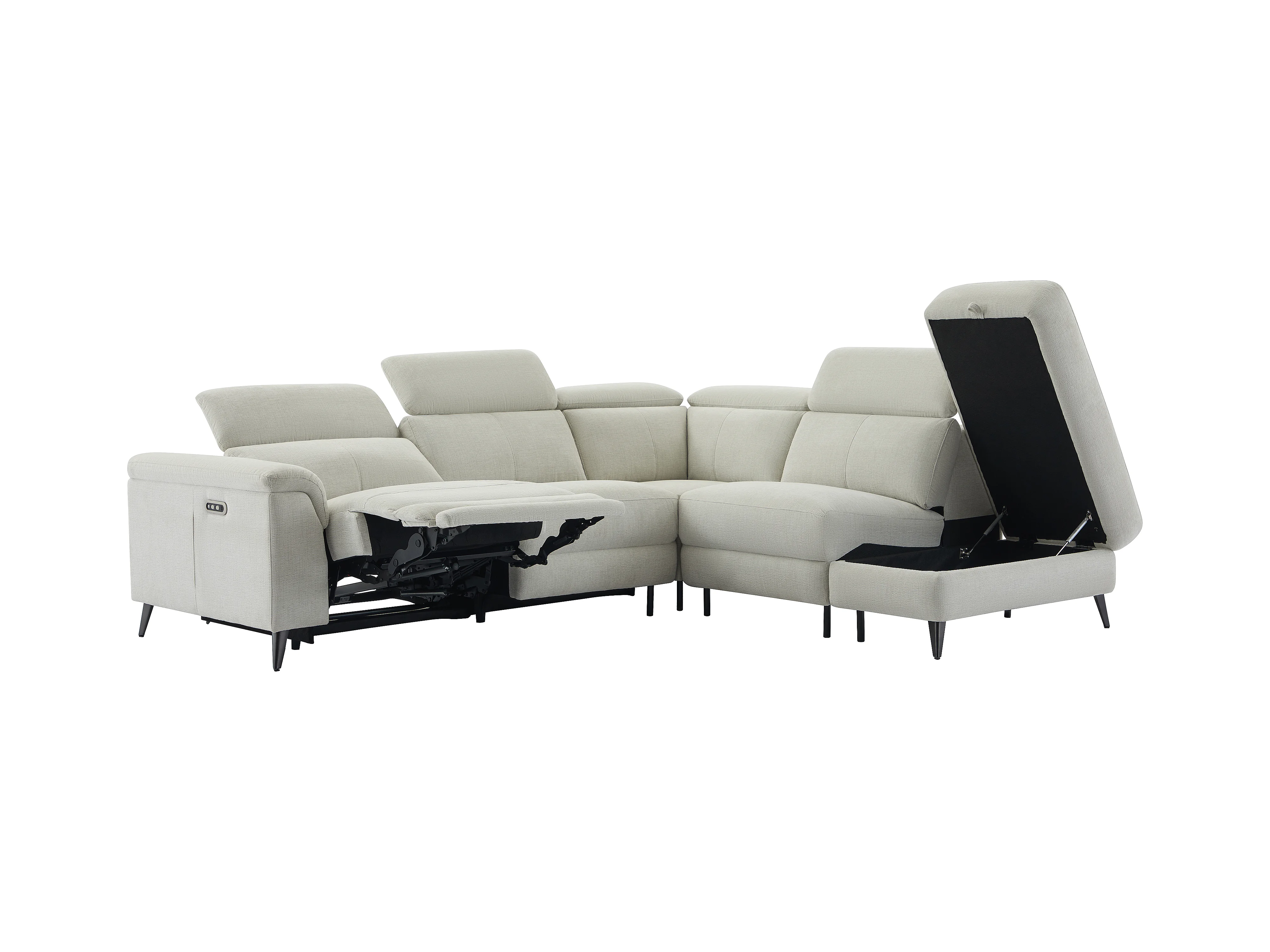 Canapé d'angle droit relax électrique en tissu beige MAKORO