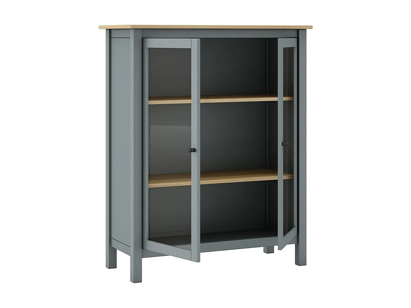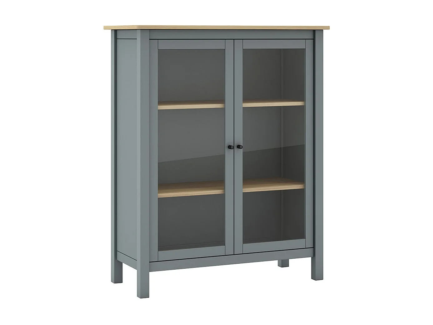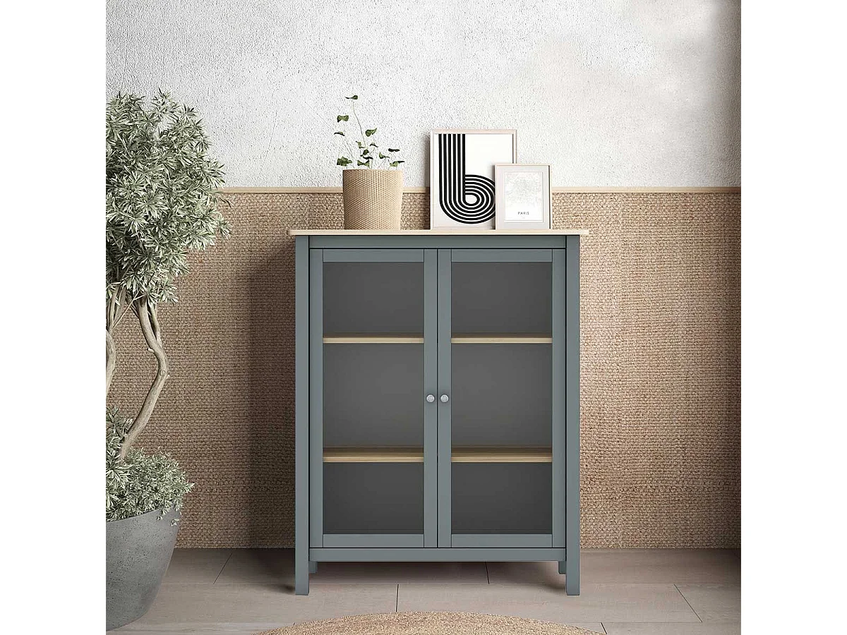 MAKS - Vitrine Basse 2 Portes en Pin Massif Vert Céladon