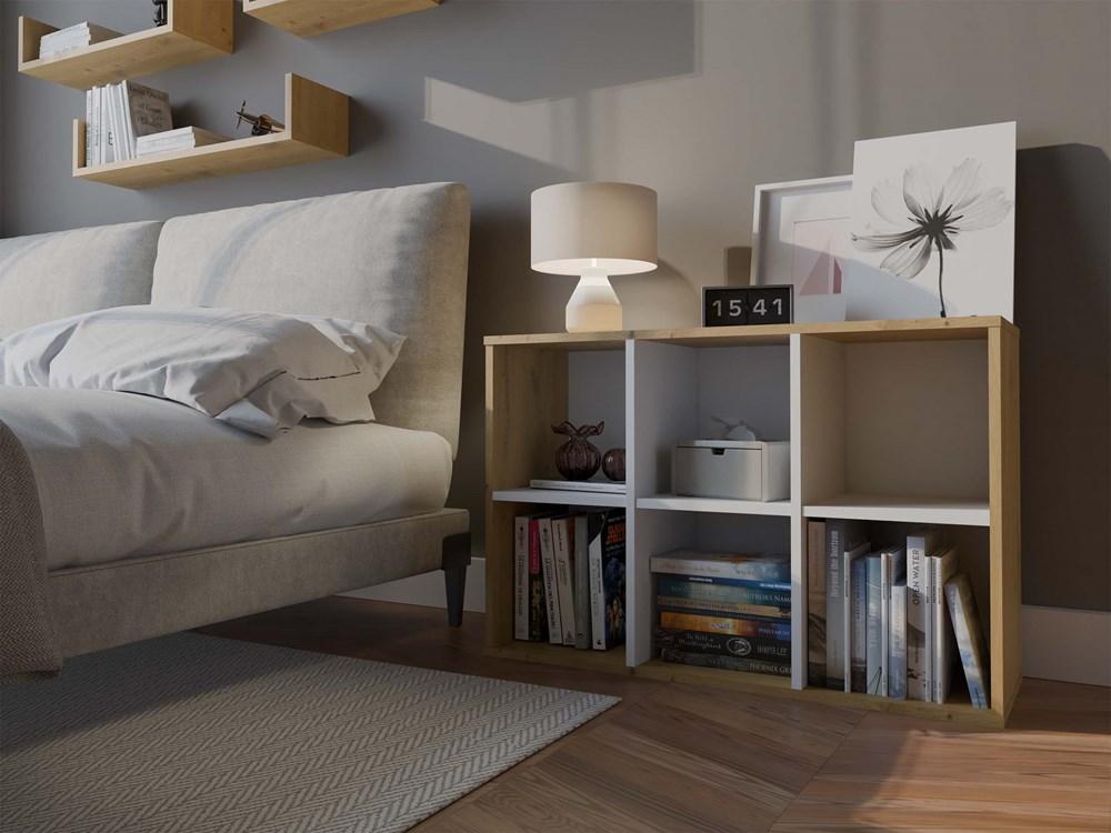 MALAX - Étagère à compartiments 2x3 chêne artisan blanc pour salon 90x60x30 cm