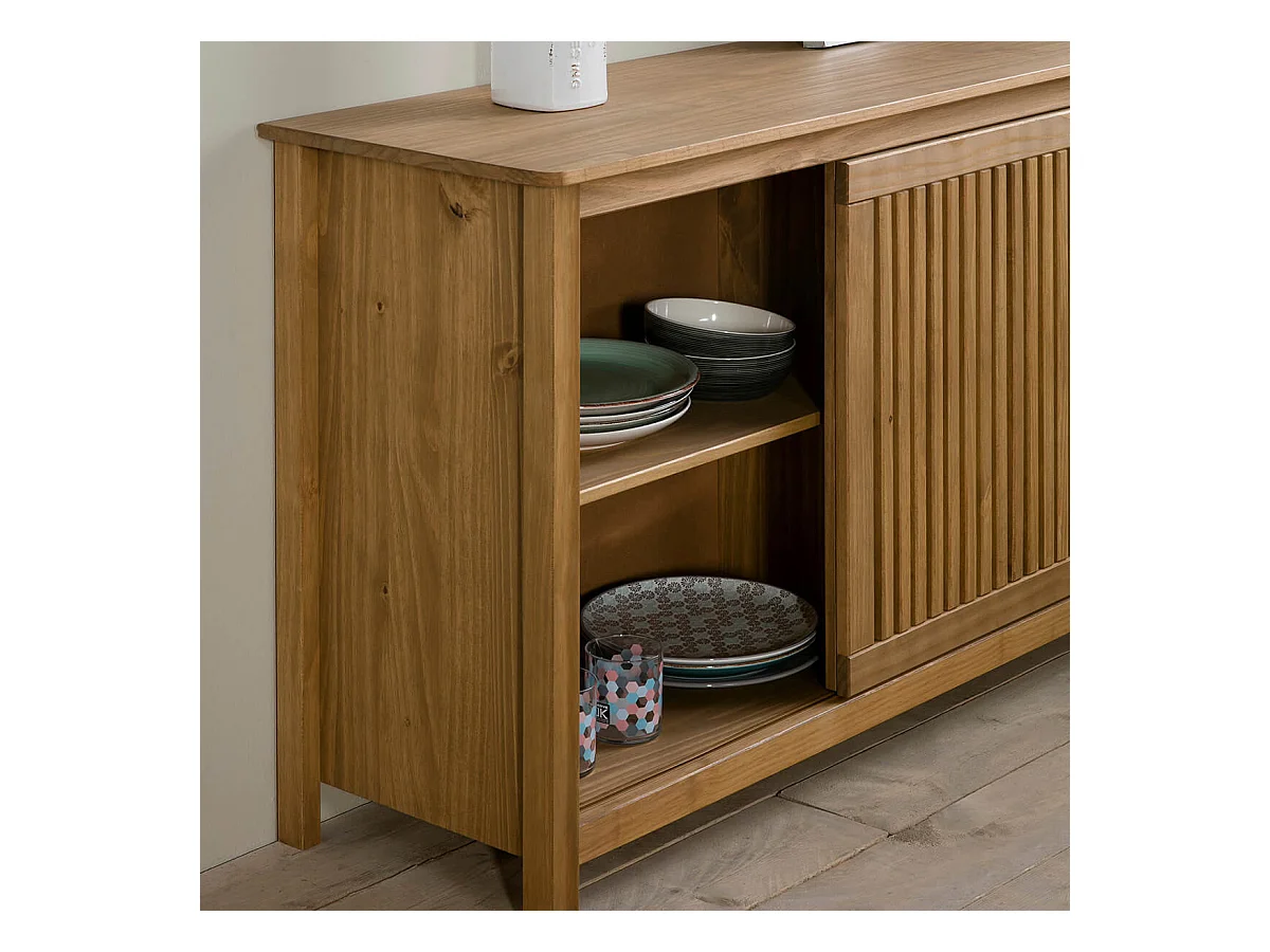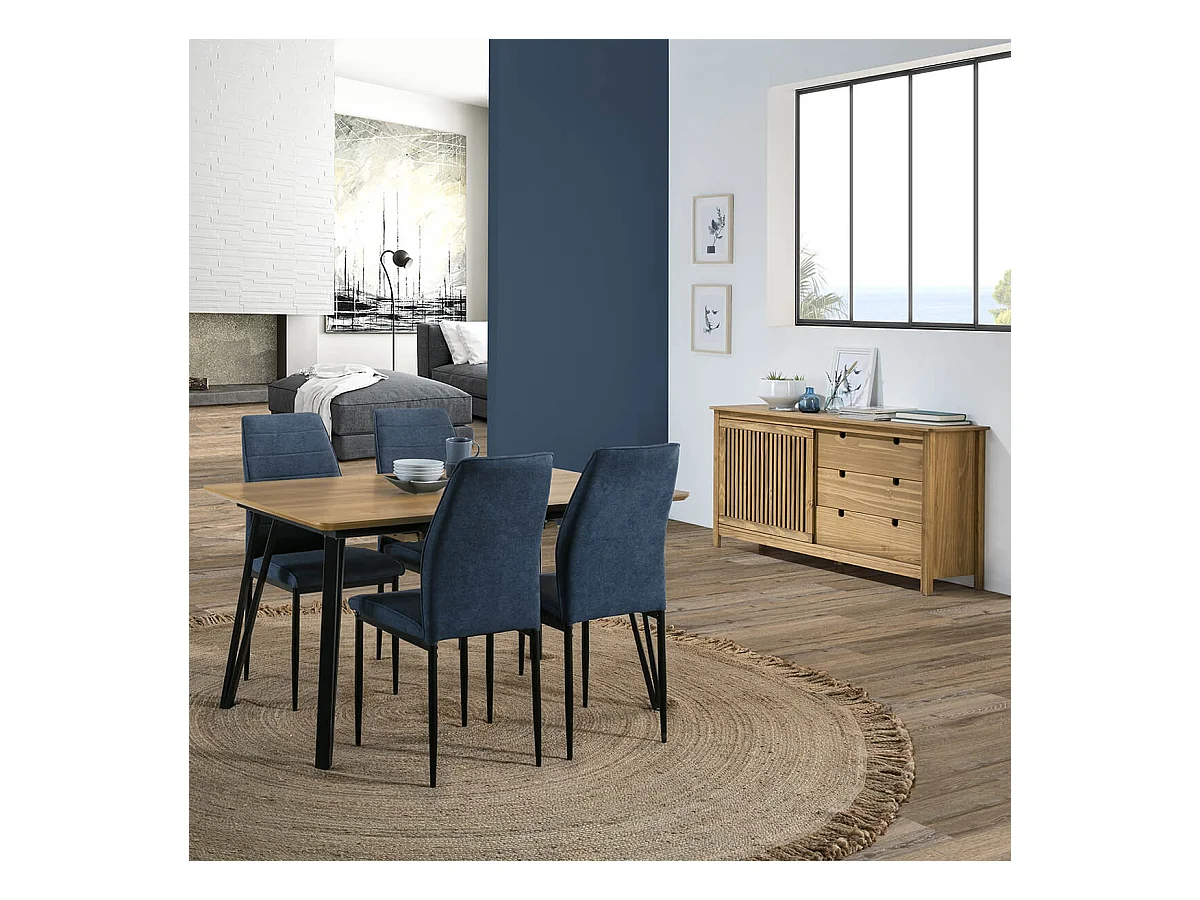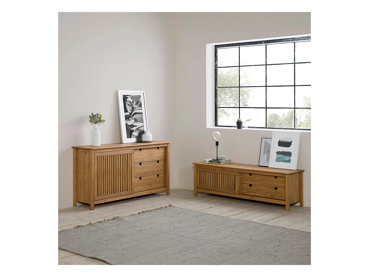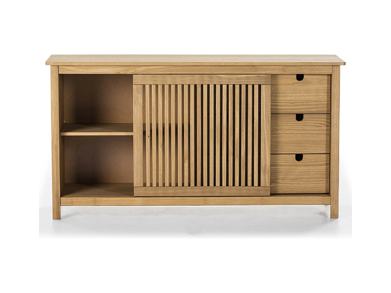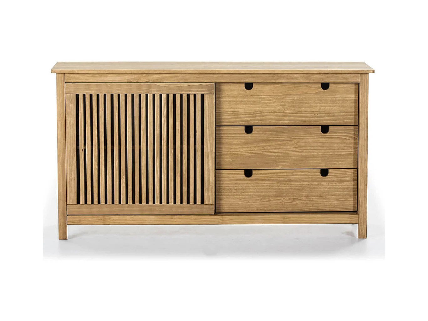 MALIA - Buffet Bas 3 Tiroirs 1 Porte Coul. Bois Ciré
