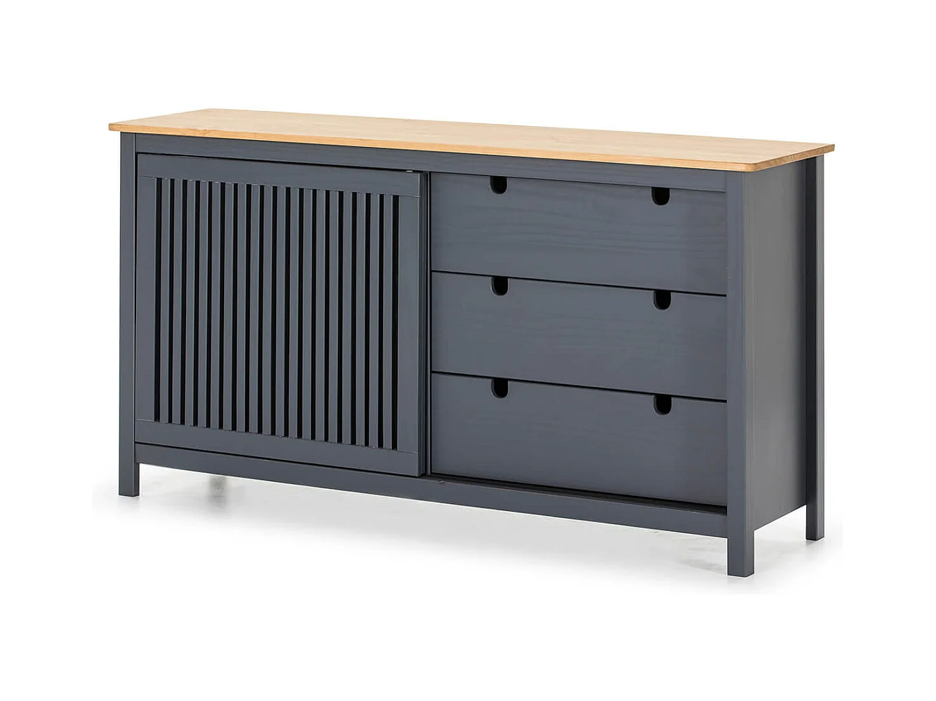 MALIA - Buffet Bas 3 Tiroirs 1 Porte Coul. Bois Ciré et Gris