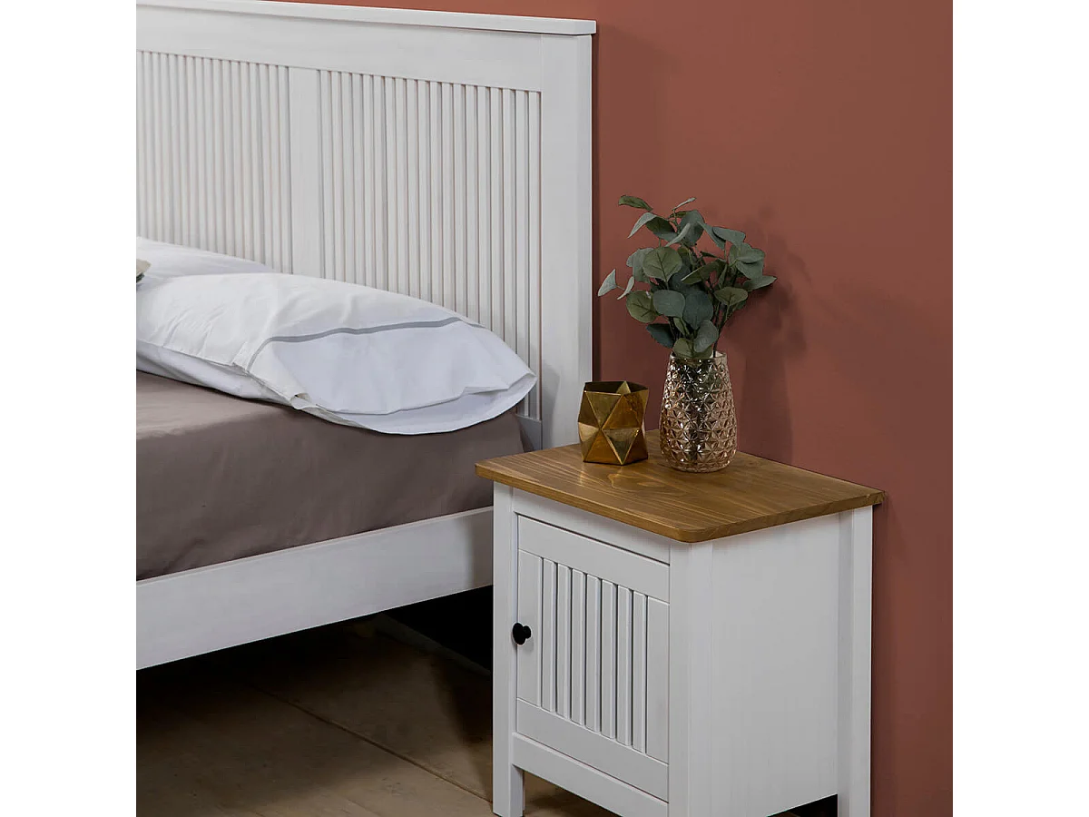 MALIA - Chevet 1 Porte Bois Ciré et Blanc